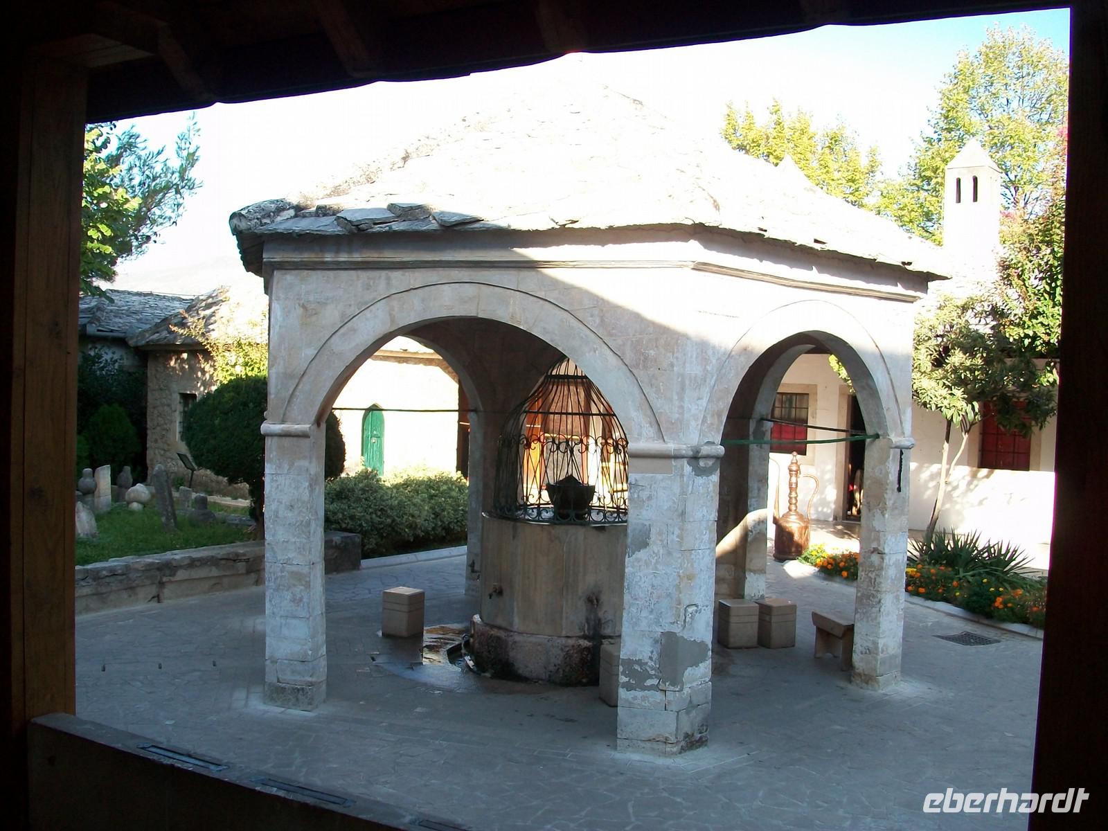 Einige Meter weiter und wir verschwinden im Hof einer Moschee. Mit unserer Stadtführerin tauchen wir nun ein in die Welt des Islam, sie erklärt uns hier die religiösen Gebräuche der bosnischen Muslime. Ich glaube dass eine solche direkte Begegnung mit einem anderen Glauben auch Vorurteile abbauen kann, ja muss!