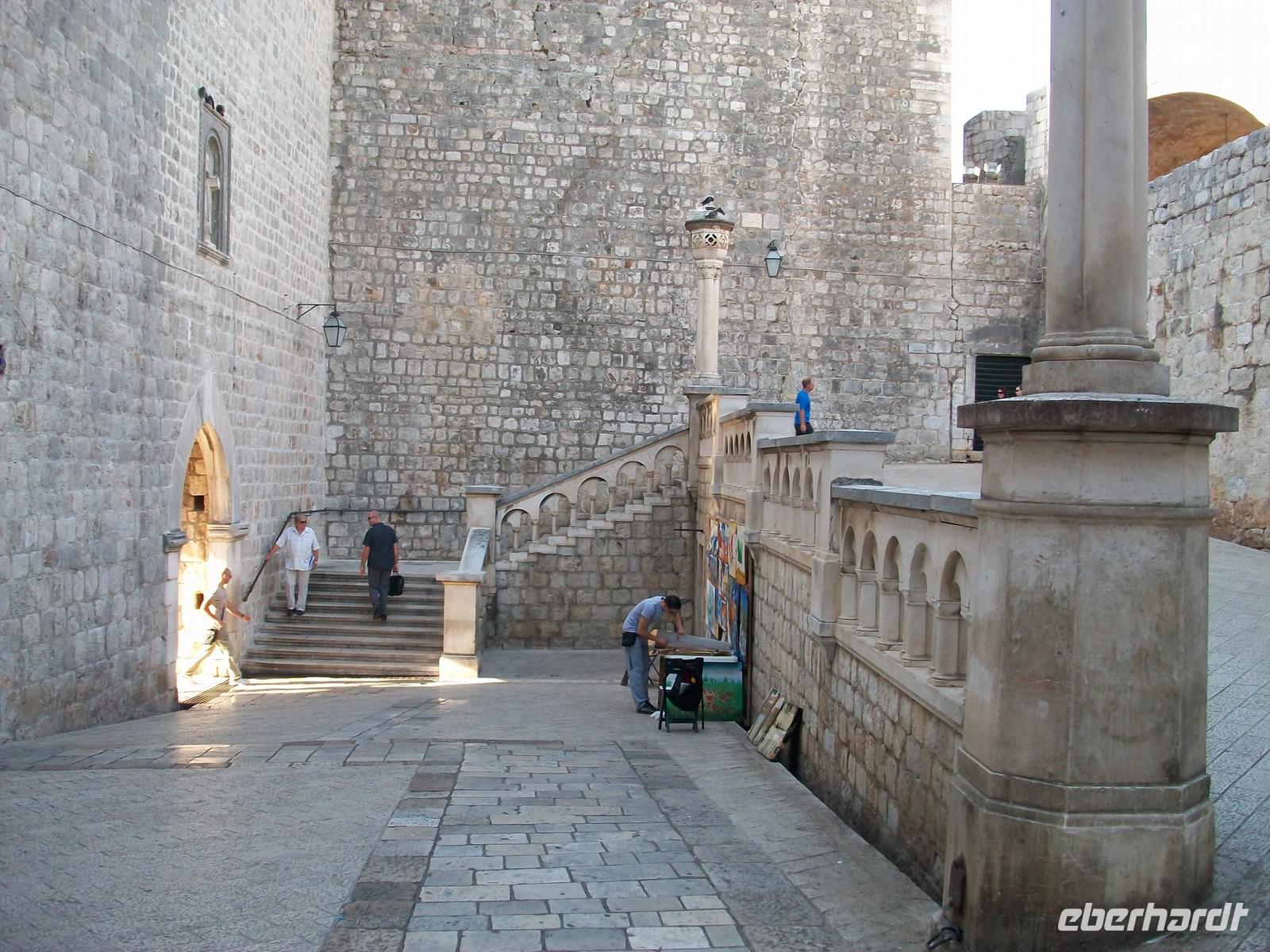 Später schweifen wir durch schmale Seitengassen, kommen am alten Hafen heraus und bestaunen den einfachen barocken Bau der Kathedrale. Machtzentrum der ehemaligen Republik Ragusa war der Rektorenpalast, hier endet die Führung und bevor sich Antea verabschiedet, beantwortet sie geduldig die Fragen unseres sehr interessierten Publikums.