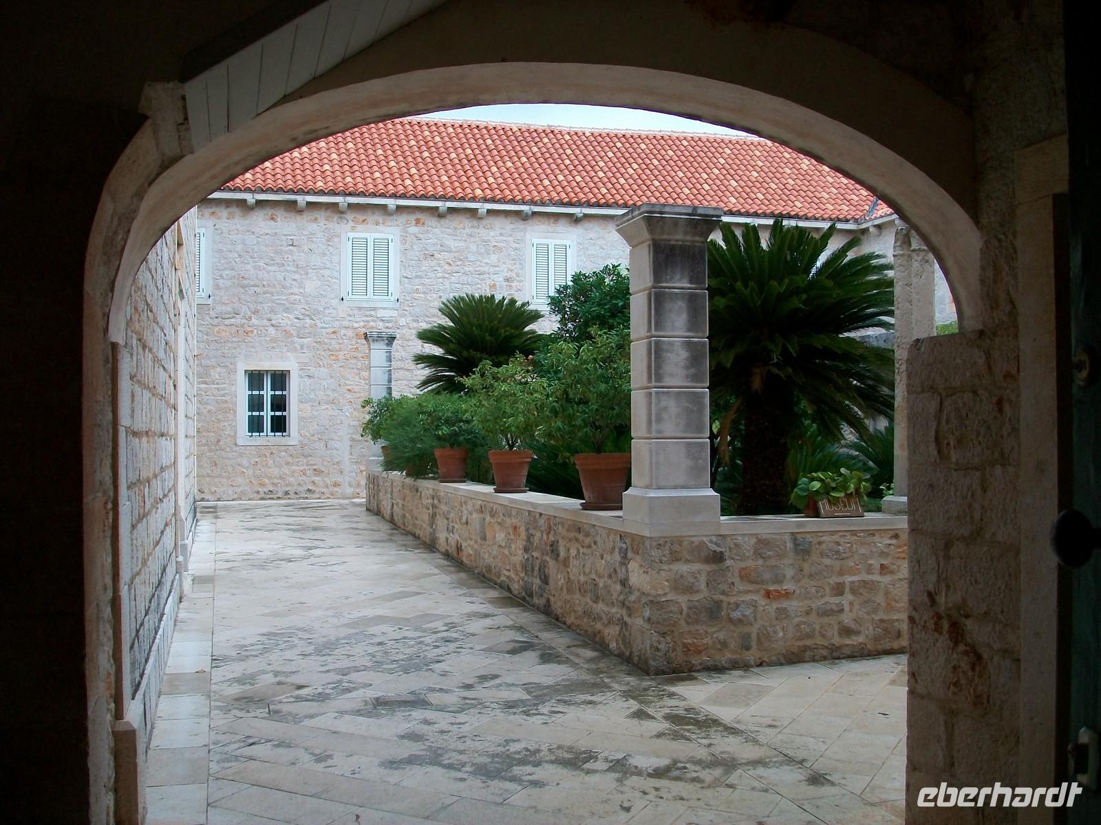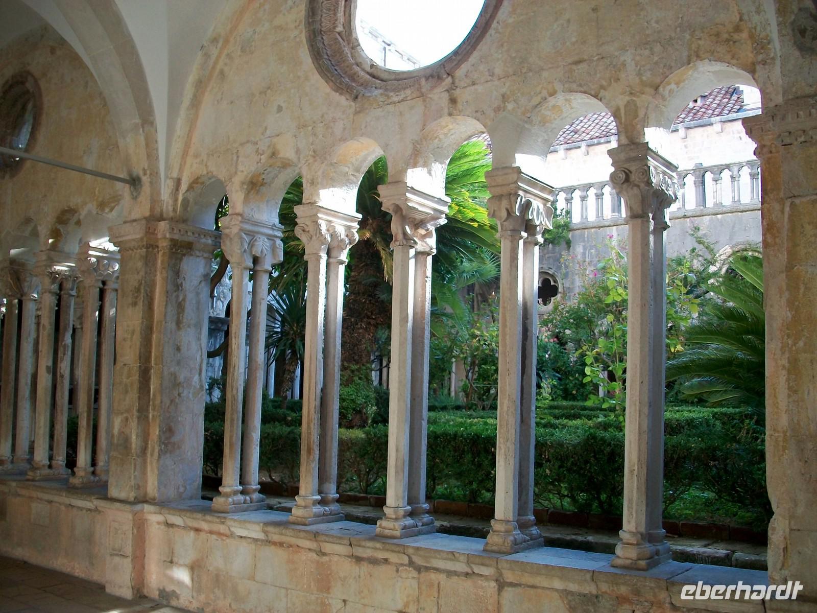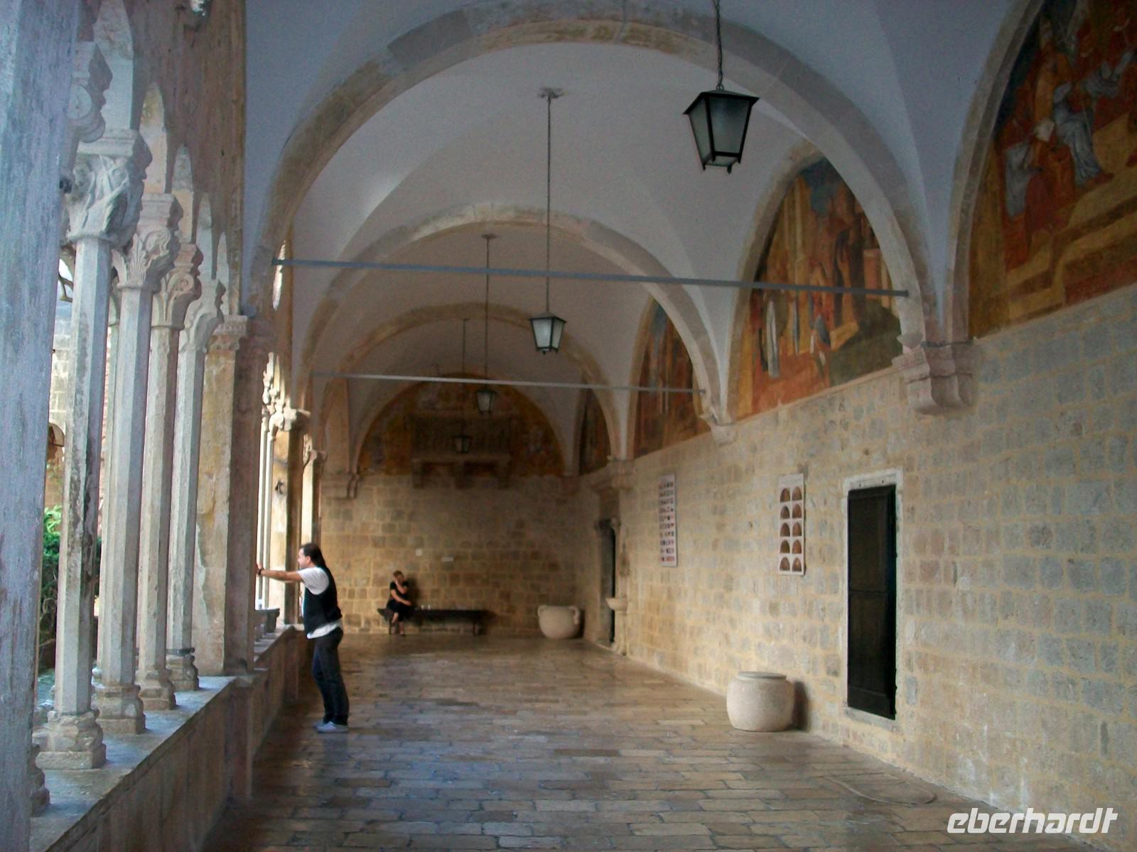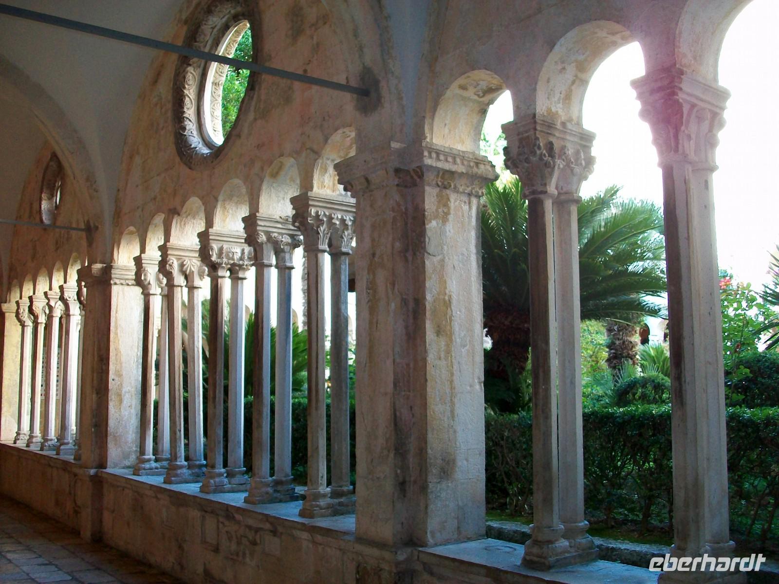 Bald ist auch unsere Stadtführerin Antea eingetroffen, sie wird uns in den nächsten 90 Minuten in gewohnt guter Qualität mit Humor und Sachkenntnis durch diese einmalige Stadt führen. Durch das Haupttor gelangen wir auf die Fußgängerzone „Stradun" und von hier direkt in das Franziskanerkloster mit der Alten Apotheke. Hier ist zu dieser frühen Zeit noch alles ruhig, wir bewundern den schönen romanischen Kreuzgang und besuchen dann die historische Apotheke. Antea weiß viel aus vergangen Zeiten zu berichten, auch beim weiteren Rundgang durch die Stadt lässt sie Bilder aus uralten Zeiten vor unseren Augen erstehen; die modernen Menschen staunen über diese Epochen und die Mauern die aus diesen Zeiten stammen, geben unserer Phantasie eine reale Kulisse.