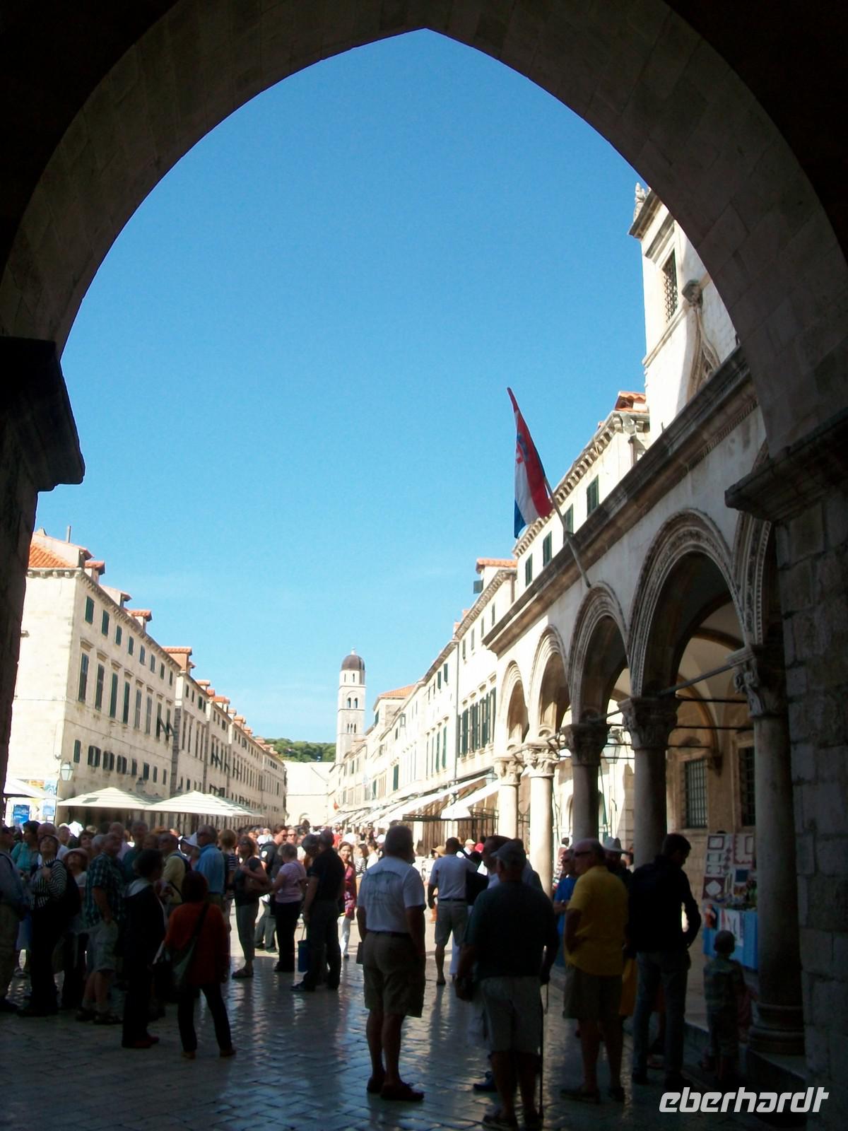 27.9.2012. Ein besonderes Erlebnis steht heute bevor. Wir starten 8.30 Uhr mit dem Bus der uns hinunter zum Pileplatz bringen wird, dem Haupteingang zur Altstadt von Dubrovnik. Auch heute gibt es noch einen sehr heißen Sommertag, jetzt am frühen Vormittag ist es aber noch angenehm frisch.