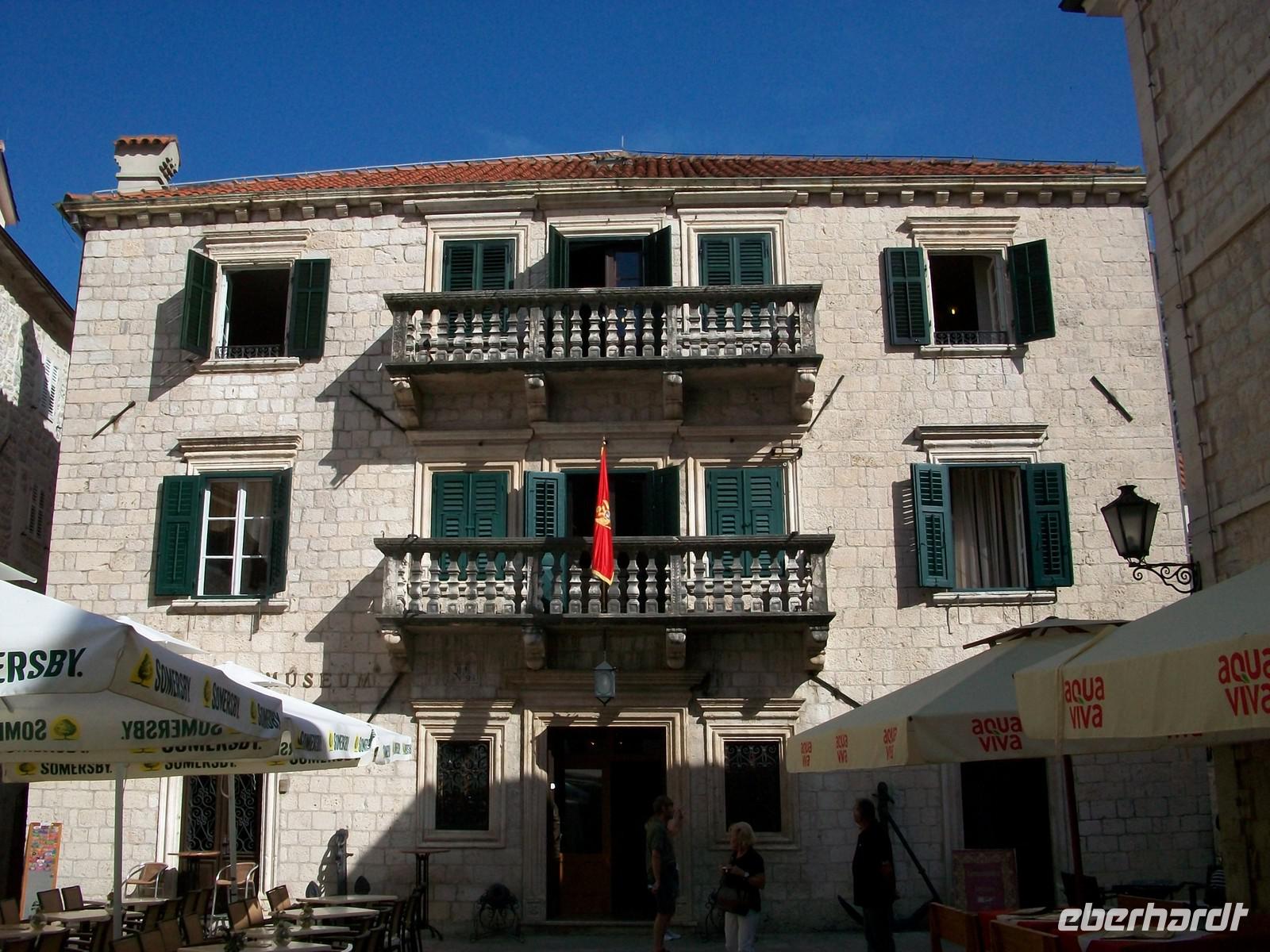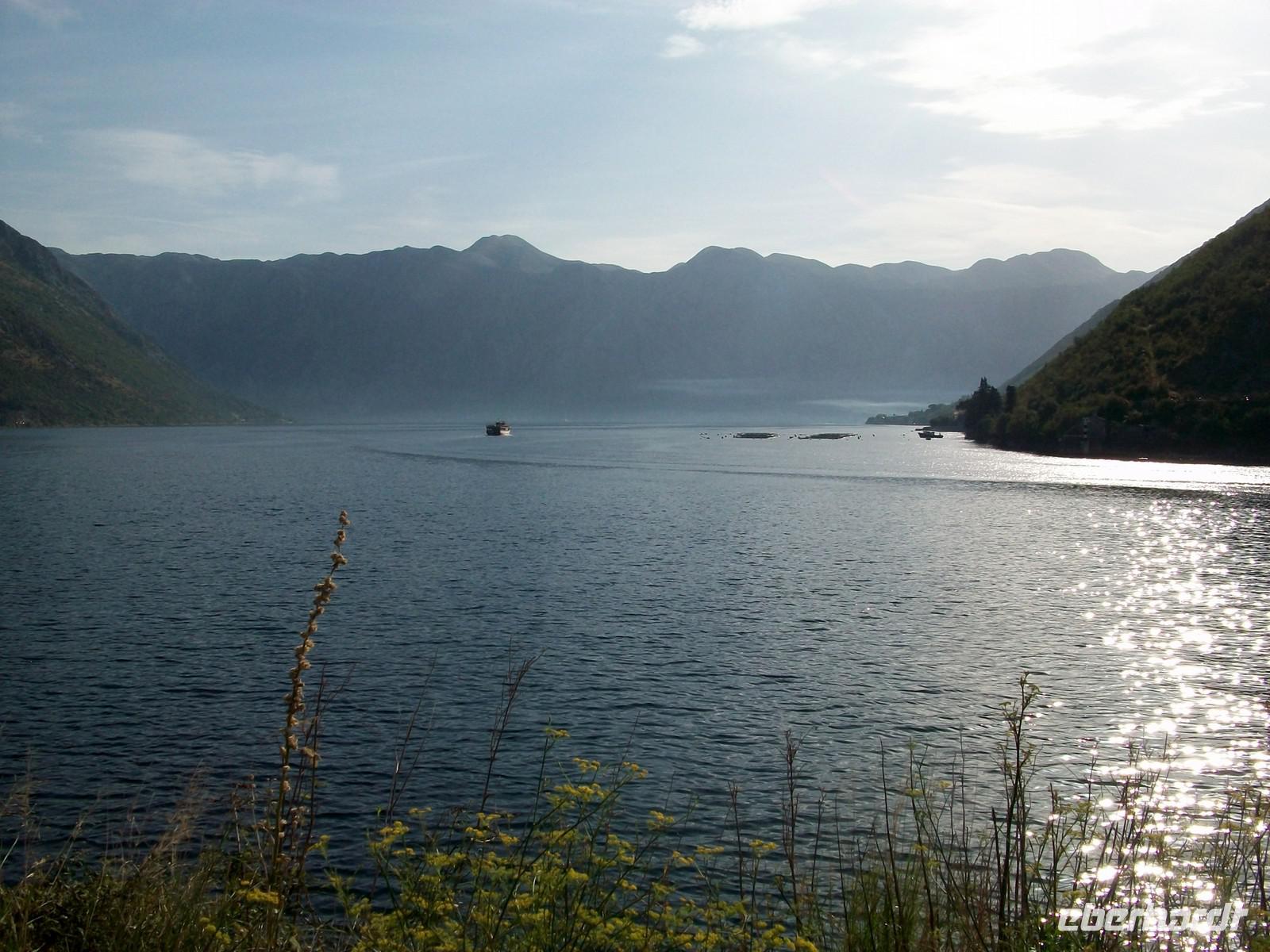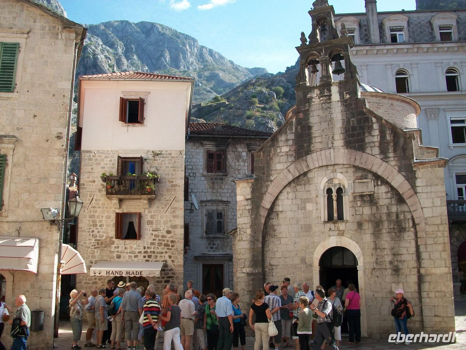 Wir starten heute recht früh um das umfangreiche Programm gut bewältigen zu können. Die Fahrt führt uns zuerst entlang der Küste und zum südlichsten Zipfel Kroatiens. Nach der Grenze öffnet sich bald der Blick auf die große Wasserfläche der Kotorbucht. Vorbei an den Ortschaften Igalo und Herceg Novi führt uns die Uferstraße um die Bucht herum. Auch hier ist eine üppige mediterrane Vegetation zu sehen die ihre grüne Pracht vor unseren Augen ausbreitet. Bald kommen auch die zwei berühmten Inseln in Blickweite, gleich hinter der engsten Stelle der Bucht. Besonders stark ist hier der Eindruck; der Besucher wähnt sich in einem norwegischen Fjord. Steil steigen die Berge empor und die Sonne meint es auch am heutigen Tag sehr gut. Nach dem wir der weit geschwungenen Bucht gefolgt sind, langen wir gegen zehn in Kotor an. In dieser geschichtsträchtigen Stadt werden wir schon vom einheimischen Reiseleiter Milijan erwartet. Durch das Stadttor betreten wir den alten Ort und bummeln nun durch die Gassen dieser Stadt. Sehr originell sind die Erklärungen und als Höhepunkt des Rundgangs statten wir dem Schifffahrtsmuseum noch einen Besuch ab.