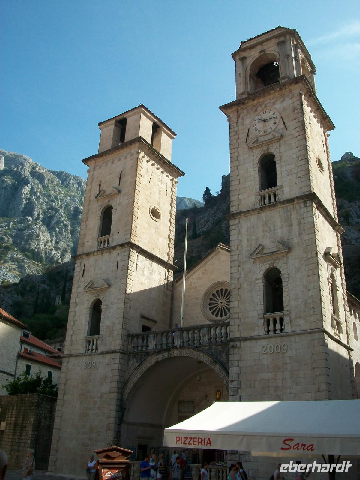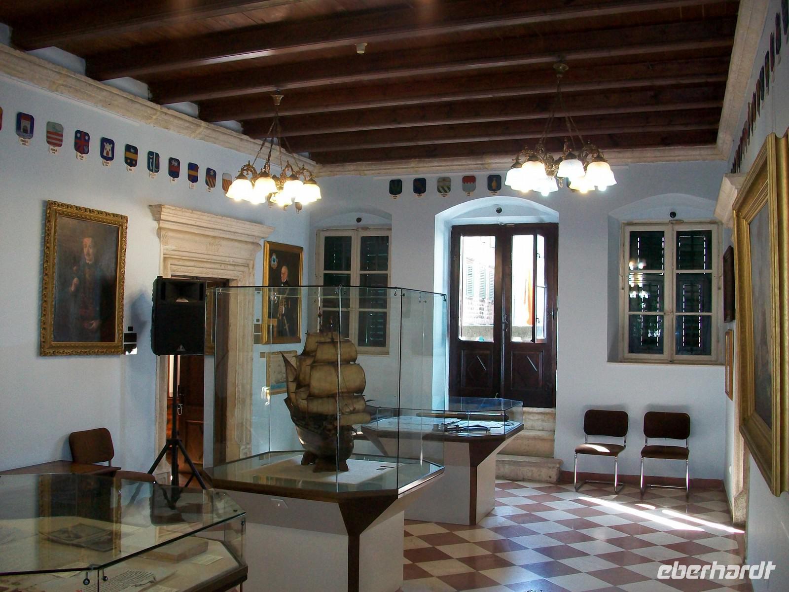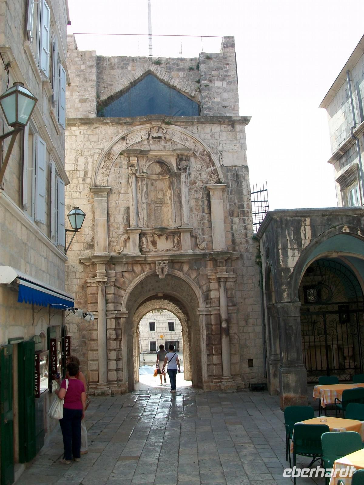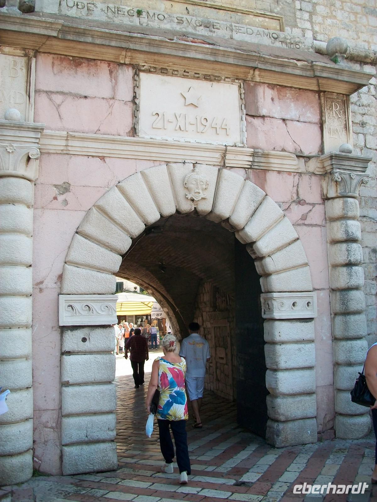 Wir starten heute recht früh um das umfangreiche Programm gut bewältigen zu können. Die Fahrt führt uns zuerst entlang der Küste und zum südlichsten Zipfel Kroatiens. Nach der Grenze öffnet sich bald der Blick auf die große Wasserfläche der Kotorbucht. Vorbei an den Ortschaften Igalo und Herceg Novi führt uns die Uferstraße um die Bucht herum. Auch hier ist eine üppige mediterrane Vegetation zu sehen die ihre grüne Pracht vor unseren Augen ausbreitet. Bald kommen auch die zwei berühmten Inseln in Blickweite, gleich hinter der engsten Stelle der Bucht. Besonders stark ist hier der Eindruck; der Besucher wähnt sich in einem norwegischen Fjord. Steil steigen die Berge empor und die Sonne meint es auch am heutigen Tag sehr gut. Nach dem wir der weit geschwungenen Bucht gefolgt sind, langen wir gegen zehn in Kotor an. In dieser geschichtsträchtigen Stadt werden wir schon vom einheimischen Reiseleiter Milijan erwartet. Durch das Stadttor betreten wir den alten Ort und bummeln nun durch die Gassen dieser Stadt. Sehr originell sind die Erklärungen und als Höhepunkt des Rundgangs statten wir dem Schifffahrtsmuseum noch einen Besuch ab.