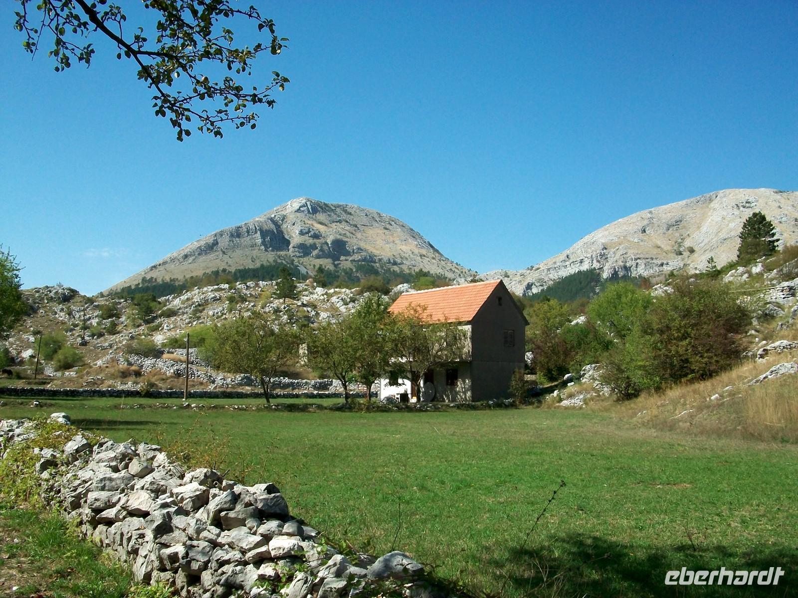 24.9.2012. Der junge Tag sieht uns schon auf der Fahrt durch die Lika. Es ist eine typische Karstlandschaft, Wälder lösen sich mit freien Flächen ab und die Straße führt uns durch ein dünnbesiedeltes Gebiet. Hin und wieder ist auch ein Schäfer mit seiner Herden zu sehen und macht damit die etwas herbe Romantik komplett. Das Wetter verspricht wieder schön zu werden, Sonnenschein wechselt sich mit lockeren Wolkenfeldern ab, dazu ist es angenehm warm. Am Hochplateau der Quelle des Flusses Zrmanja legen wir einen Fotostopp ein und können dabei weit ins unberührte Land hineinschauen, bis hinüber zu den bosnischen Bergen.