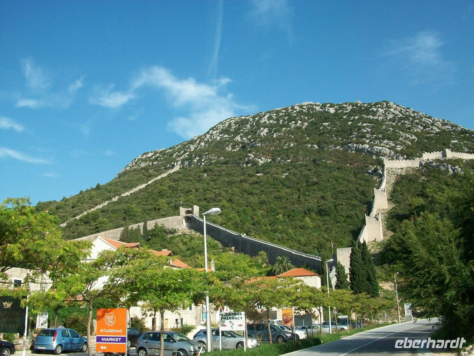 Bald haben wir die Halbinsel Pelješac erreicht; dort wo sie ihre Zunge dem Land entgegenstreckt, führt eine Straße hinüber. Der erste Ort auf der Halbinsel heißt Ston, er ist bekannt für die Salinen die der einstigen Republik Ragusa wichtige Einnahmen sicherte. Ein Teil der mächtigen Schutzmauern blieb noch erhalten, die Becken in denen das Salz gewonnen wurde sind auch noch vorhanden. Wir nehmen uns etwas Zeit und ein Abstecher im alten Ort Ston ist auch sehr interessant.