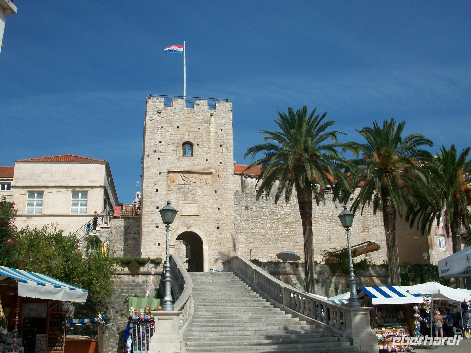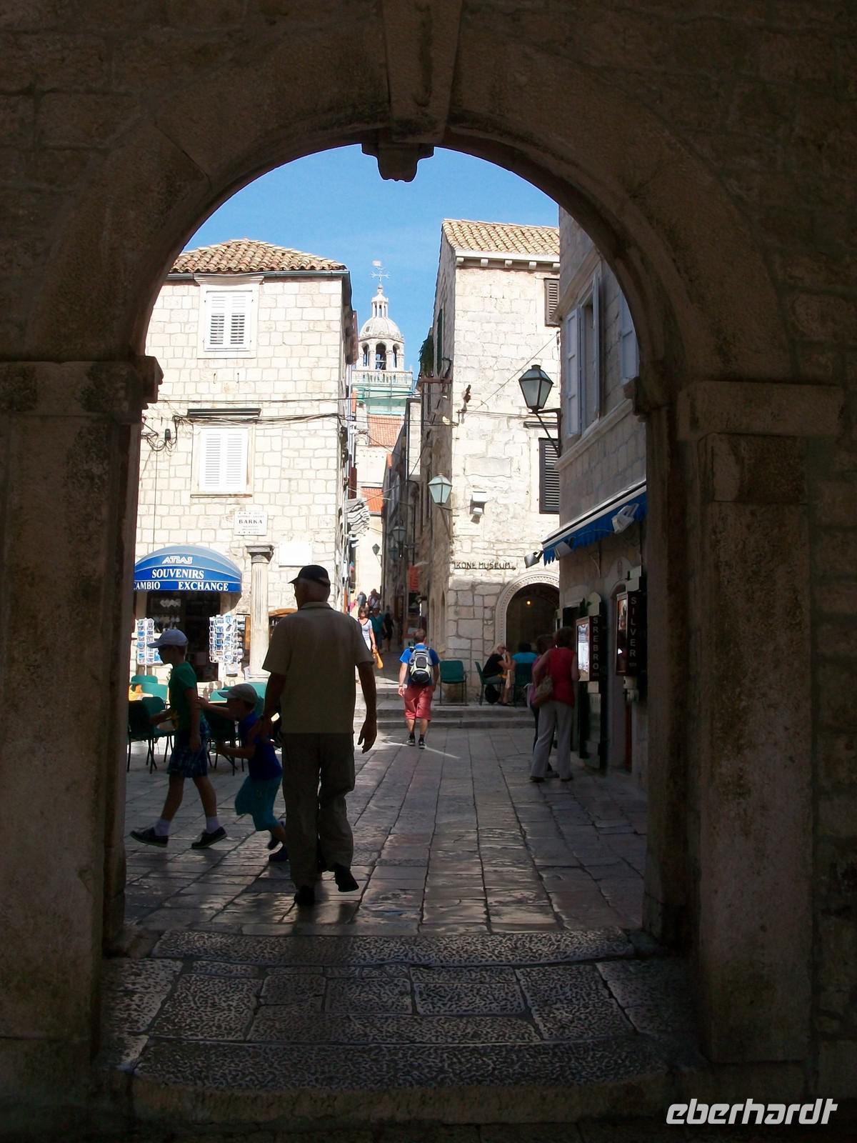 Am Eingang zur Altstadt werden wir von Lujo unserem Stadtführer schon erwartet. Er wird unserer Reisegruppe nun in den nächsten 90 Minuten eine der sehenswertesten mittelalterlichen Orte an der Adria zeigen. Durch schmale Gassen mit blankpoliertem Kalkstein unter unseren Füßen, gelangen wir zum Hauptplatz. Hier spielte sich früher das Leben ab, heute ist alles fest in der Hand der Touristen aus allen Ländern dieser Welt. Auch an diesem Ort tauchen wir wieder ein in das Leben vergangener Jahrhunderte, und erfahren etwas über eine Welt die uns seltsam fremd anmutet. Sehr sehenswert ist die Kathedrale mit dem Tintoretto- Bild und einer schönen Innenausstattung. Wie im Flug vergeht die Zeit, im Anschluss nimmt uns Lujo noch mit auf eine Inselrundfahrt. Wir staunen über das üppige Grün der Insel und erfahren von unserem Führer viel über die Flora und Fauna von Korcula. Sehr schwer war auch das Leben der Menschen hier, viele suchten ihr Glück im Ausland und verließen dabei eine der schönsten Inseln der Adria. Aber Schönheit reicht zum Leben allein nicht aus, es muss auch für alle die Möglichkeit bestehen den Lebensunterhalt selbst zu erwirtschaften. Von dieser Seite betrachtet bekommen wir gute Informationen von unserem einheimischen Guide; am anderen Ende der Insel besuchen wir noch den Ort Vela Luka um im Anschluss zum Hotel zu fahren. Wir gelangen kurz vor vier dort an und der Rest des Nachmittags steht unseren Gästen zur freien Verfügung. Zur Altstadt ist es nur ein Katzensprung uns so mancher genießt noch ein Bad in der Adria welche zu dieser Jahreszeit noch über 20 Grad Celsius aufweist.