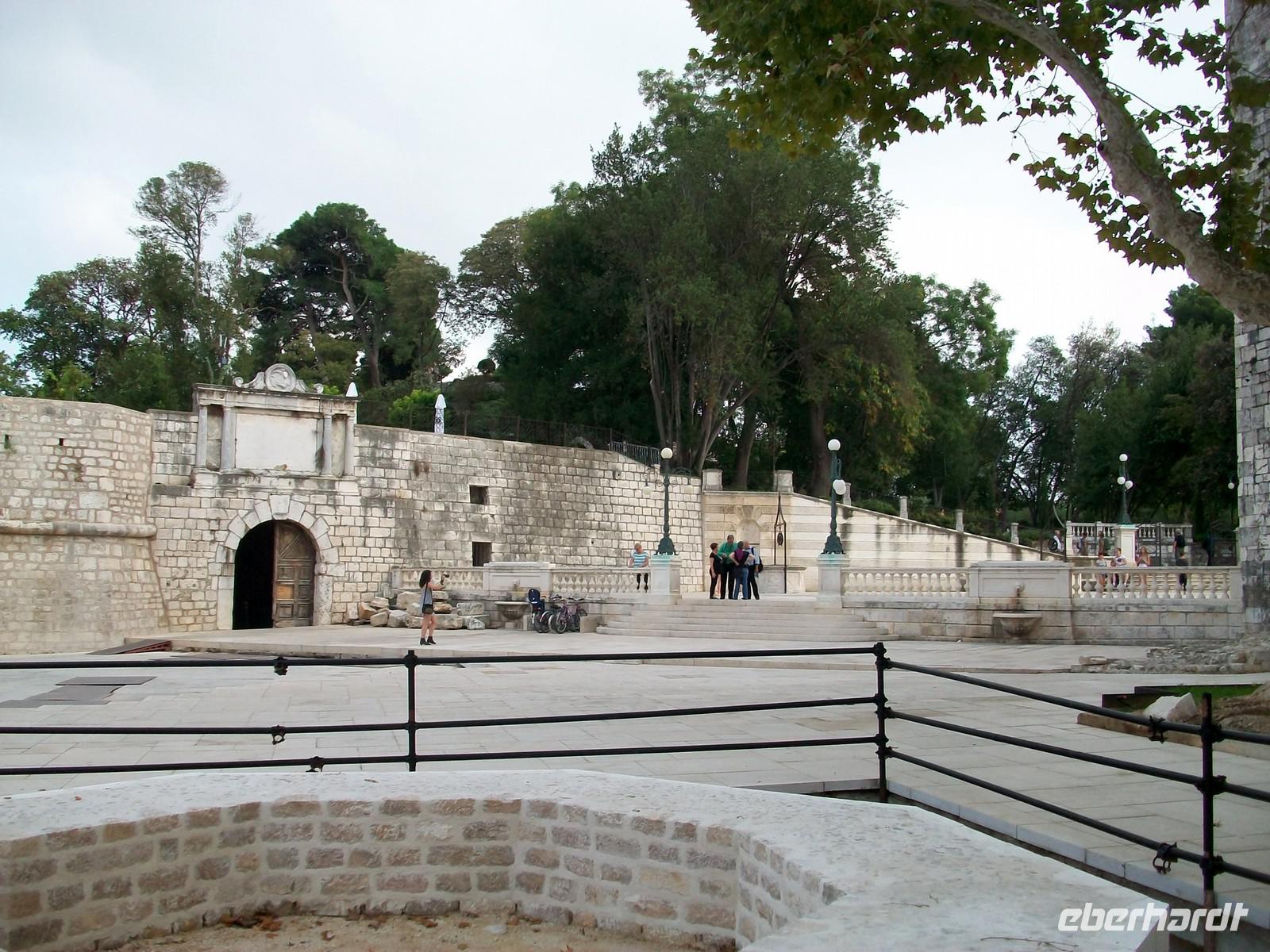 Dann gelangen wir wieder ans Tageslicht, der Rundgang führt uns an der Kathedrale vorbei zu den ehemaligen Gemächern des Kaisers. Hier hat sich eine Klapa aufgestellt, eine Männergesangsgruppe die uns ein traditionelles dalmatinisches Ständchen bringt.
