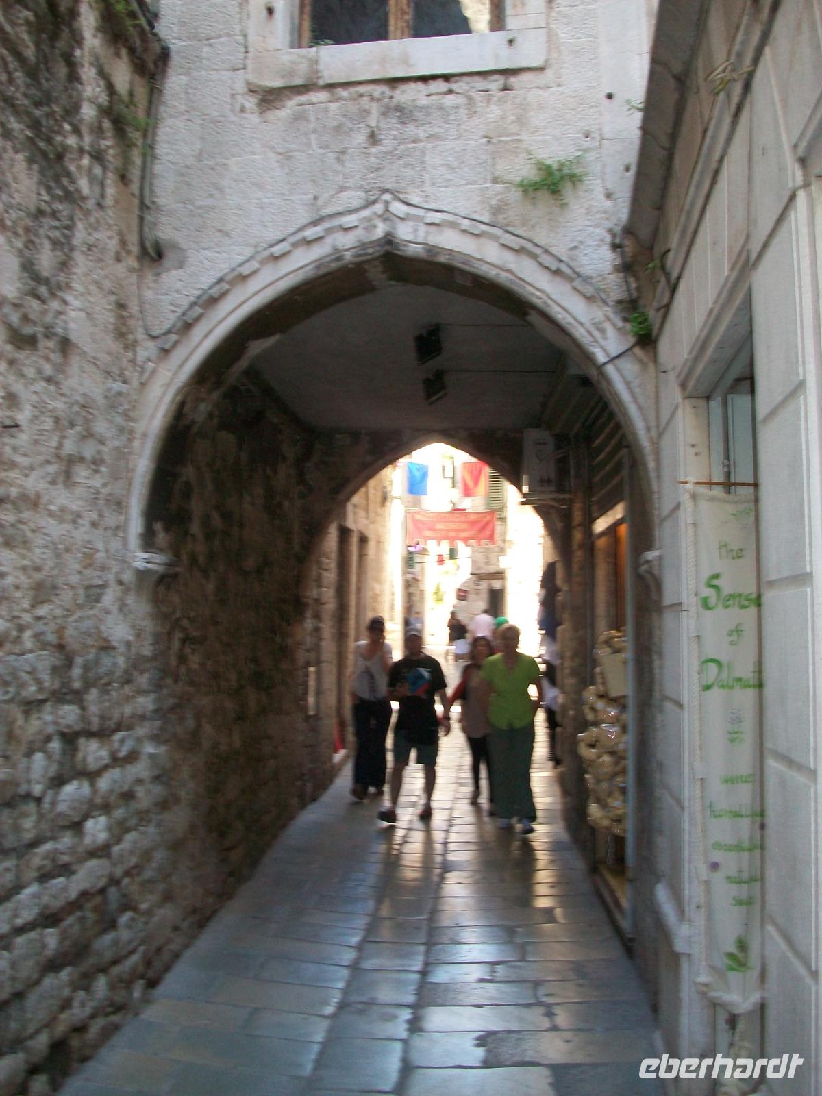 Feuchte Kühle umfängt uns als wir die Fundamente betreten, die Steine einer längst untergegangenen Epoche künden von großer Macht und sind ein Zeugnis des Römischen Imperiums. Vesna erklärt uns die Dinge wie sie waren, später tauchen wir dann wieder am Tageslicht auf und finden uns im Mittelalter wieder. Denn in den Palast hinein wurde in einer viel späteren Epoche eine ganze Stadt gebaut- faszinierend. Wir durchstreifen die schmalen Gassen, bewundern die zahlreichen Adelspaläste und beenden dann die Führung dort wo sie begann: an der sonnendurchfluteten Riva mit den schönen Palmen.