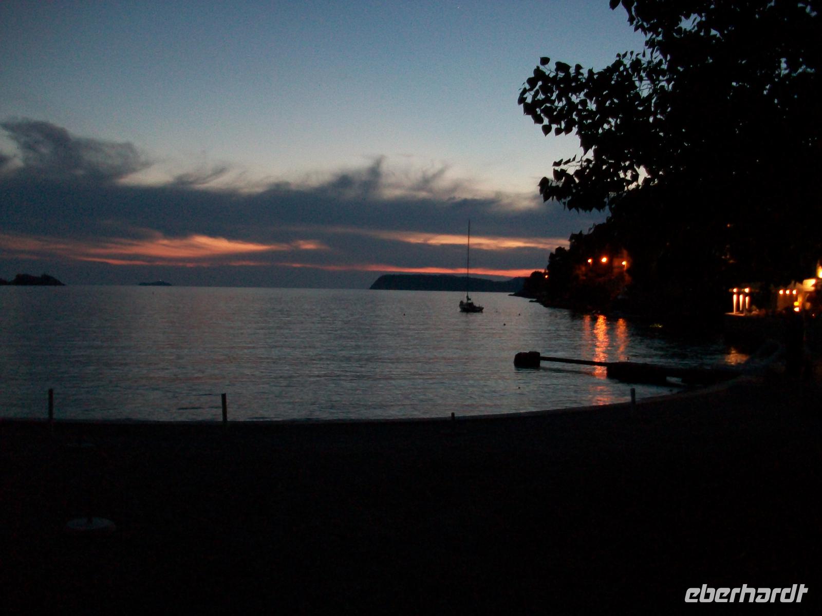 Nach dem Abendessen, das „Pinija" liegt direkt an der Adria, verzaubert uns noch ein romantischer Sonnenuntergang und mancher Reisegast möchte morgen gar nicht weiterfahren...