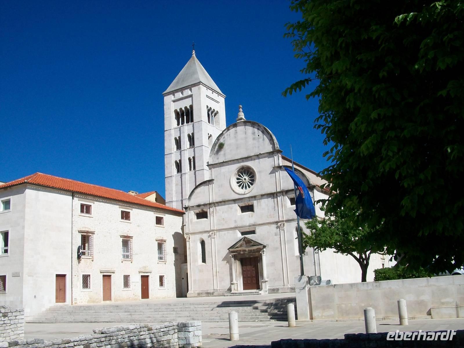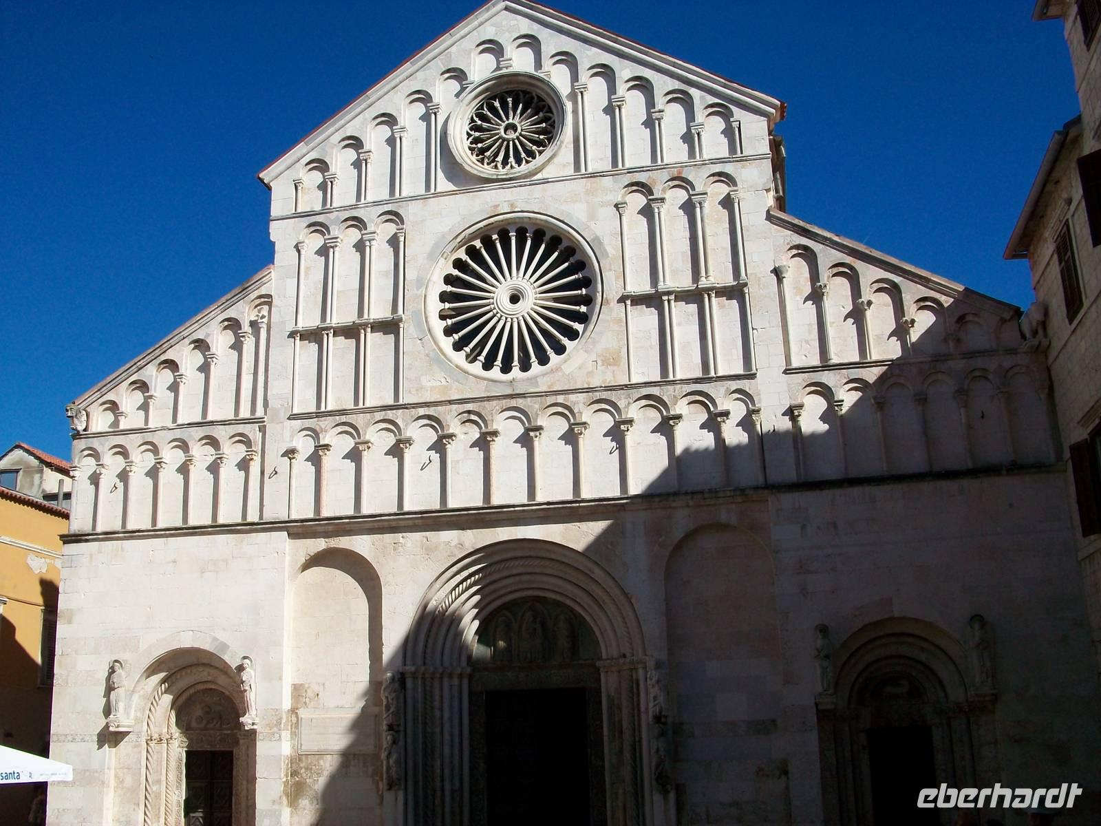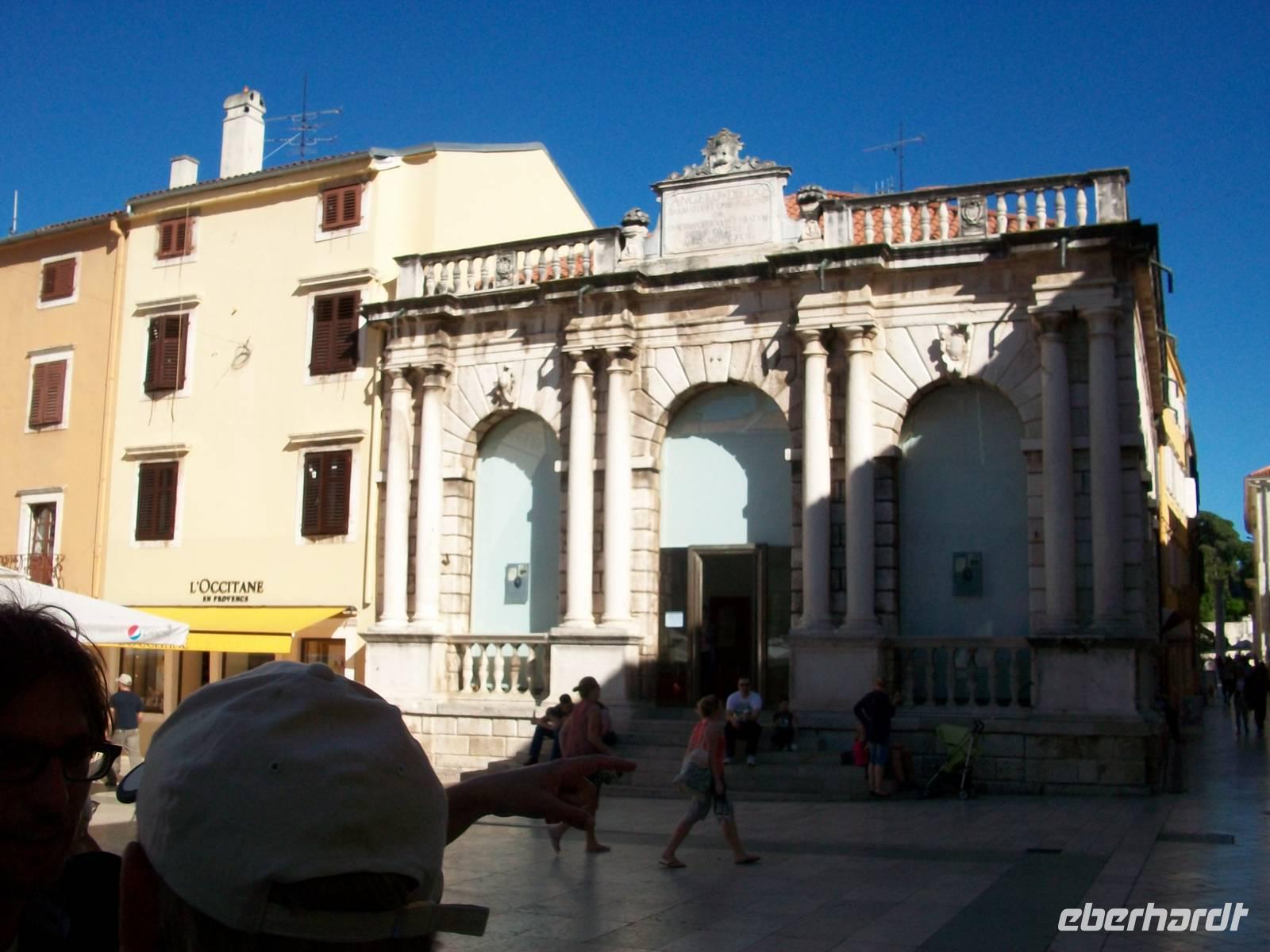 Es ist ein schöner warmer Nachmittag als wir in Zadar ankommen. Hier erwartet uns schon Edi, unser bewährter Stadtführer. Die Geschichte dieses Ortes ist nicht ganz einfach, das Stadtbild nicht mehr durchweg historisch, aber dennoch sehr reizvoll. Das ehemalige Forum Romanum zeigt in Fragmenten immer noch die Macht Roms, die Rotunde der Donatskirche die erste Zeit des Christentums, die Kathedrale Romanik und auch Gotik und am Hauptplatz sind viele Stilrichtungen zu bemerken. Über den Platz der Fünf Brunnen langen wir oberhalb des Landtores an, hier zeugt der Markuslöwe von der einstigen Macht der Venezianer.