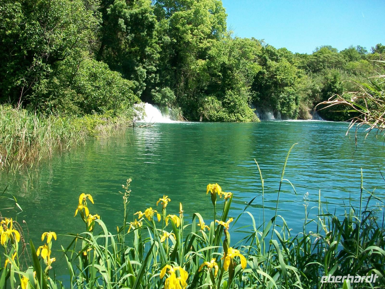 Pünktlich trifft auch unsere Parkführerin Helena ein und mit ihr werden wir ein sehr attraktives Alternativprogramm durchführen. Zunächst geht es zum Eingang 1; von oben werfen wir einen Blick auf den Großen Wasserfall der sein üppiges Nass atemberaubend zu Tal sendet. Das Brausen ist wahrhaft beeindruckend und auf unserem weiteren Weg bleiben wir oben weil die Wege im unteren Bereich alle überschwemmt sind. Die Ausblicke sind dennoch grandios und auch aus dieser Perspektive wunderschön. Das tiefgrüne Wasser fließt zu unseren Füßen und die Barrieren, die alle auch kleine Wasserfälle bilden, üben auf den Betrachter einen besonderen Reiz aus.