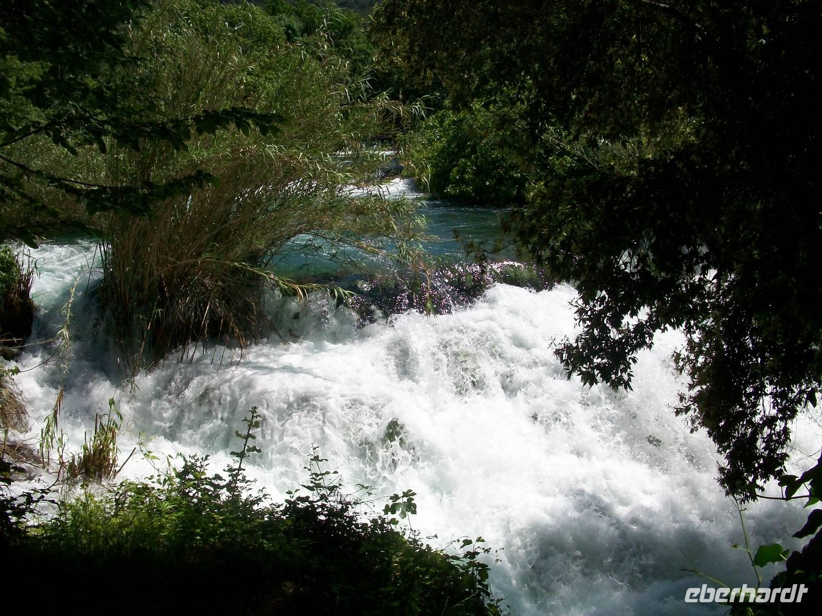 Gegen Mittag erreichen wir den Krka Nationalpark; nach einer kleinen Stärkung geht es hinunter zum Skardinski Buk, dem mächtigen Wasserfall. Hier ist heute auch einiges anders als sonst; das Brausen ist gewaltiger als ich es gewohnt bin, und als wir am Aussichtspunkt stehen, zeigt sich uns dieser Teil der Natur wild und unbändig. Ungeahnte Wassermassen stürzen sich zu Tal, verwirbeln und bilden kleinste Tröpfchen von Wasserstaub welcher uns die Haut netzt. Aber das wichtigste ist: alle Wege sind begehbar! Unsere Gruppe macht sich auf den Weg diesen grandiosen Wasserfall zu umrunden. Unten an der Brücke sehen wir die Wassermassen direkt auf uns zukommen, auf den Wegen und Knüppeldämmen werden wir zwischen den einzelnen Kaskaden hindurchgeführt und wir sind hier Eins mit der gewaltigen Natur.