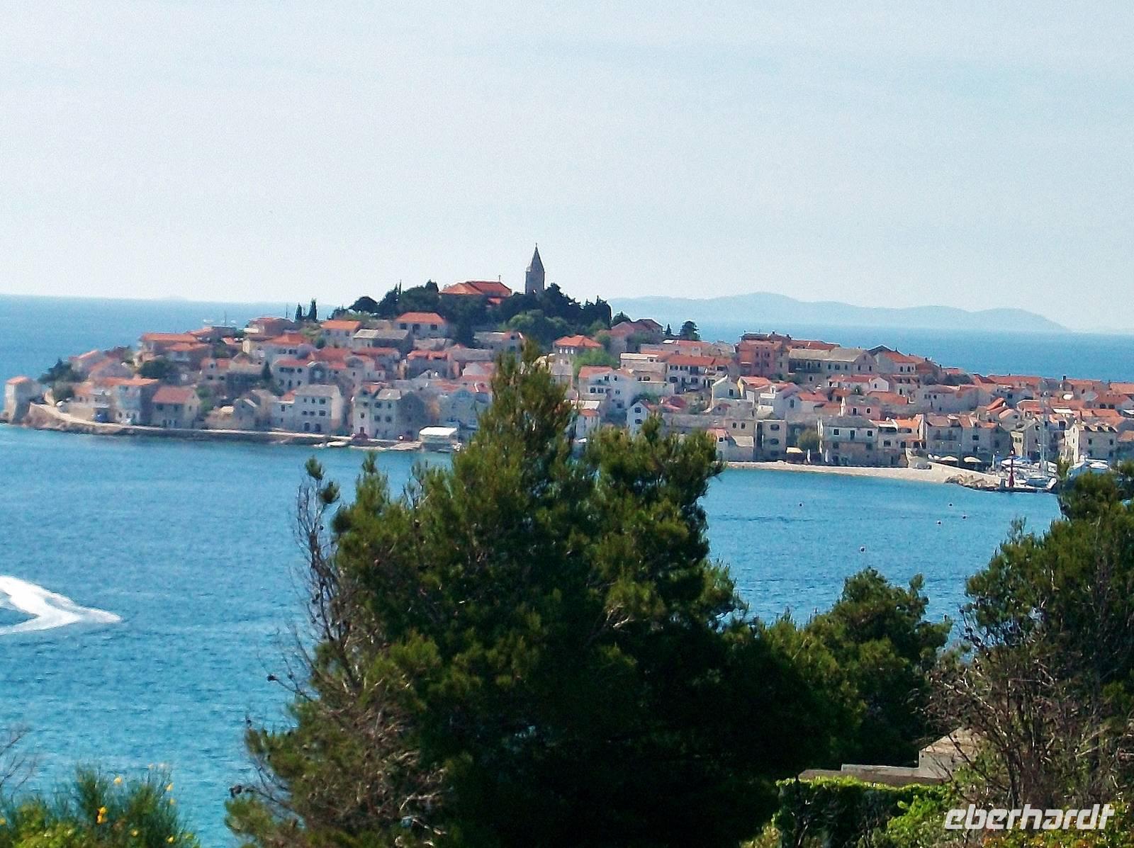 Zunächst müssen wir aber auf die andere Inselseite gelangen; ein Tunnel bringt uns unter dem Inselgebirge hindurch, bald öffnet sich der Blick auf die lange Bucht und über eine schmale Straße gelangen wir nach Starigrad.