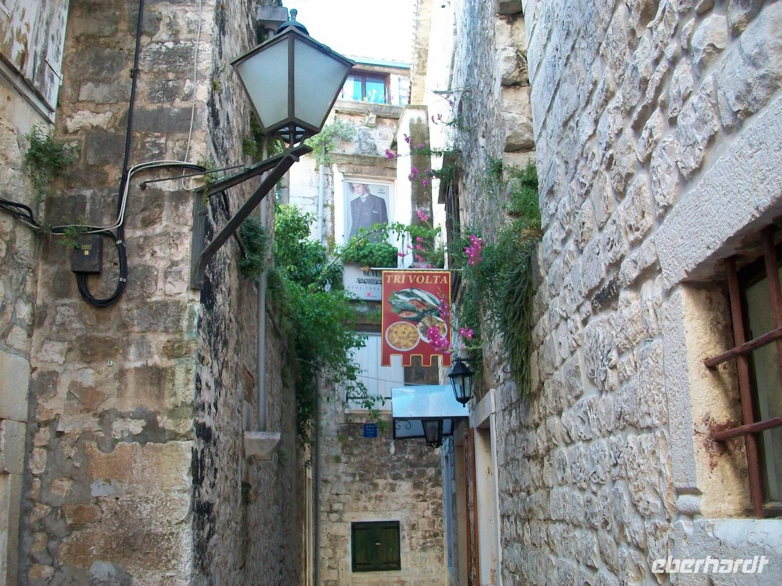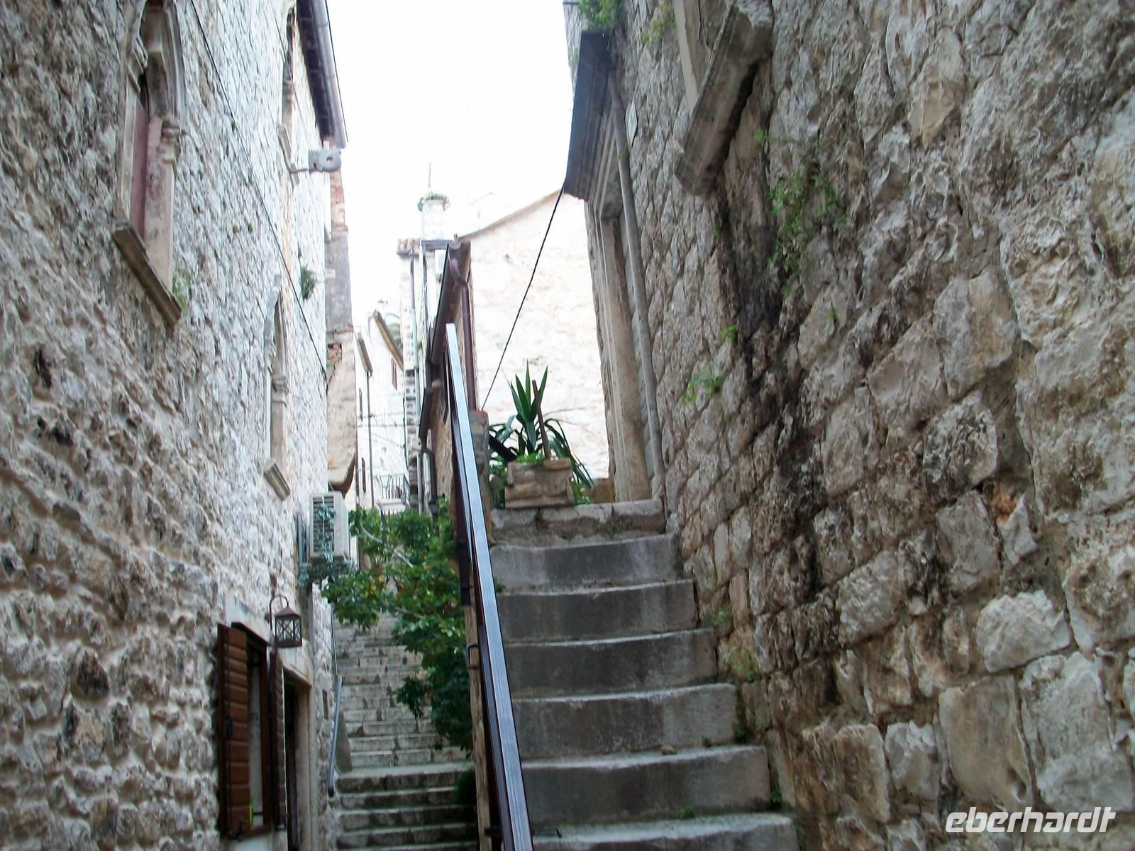Einst durch Seehandel zu Reichtum gekommen, aber durch die Türkenbedrohung doch in Vergessenheit geraten, zeigt sich uns der Ort heute wie er im Mittelalter erbaut wurde. Das macht den Reiz von Trogir aus, und wir tauchen ein in die zahlreichen schmalen Gässchen einer längst untergegangen Epoche und atmen dabei gleichsam den Geist dieser Zeit.