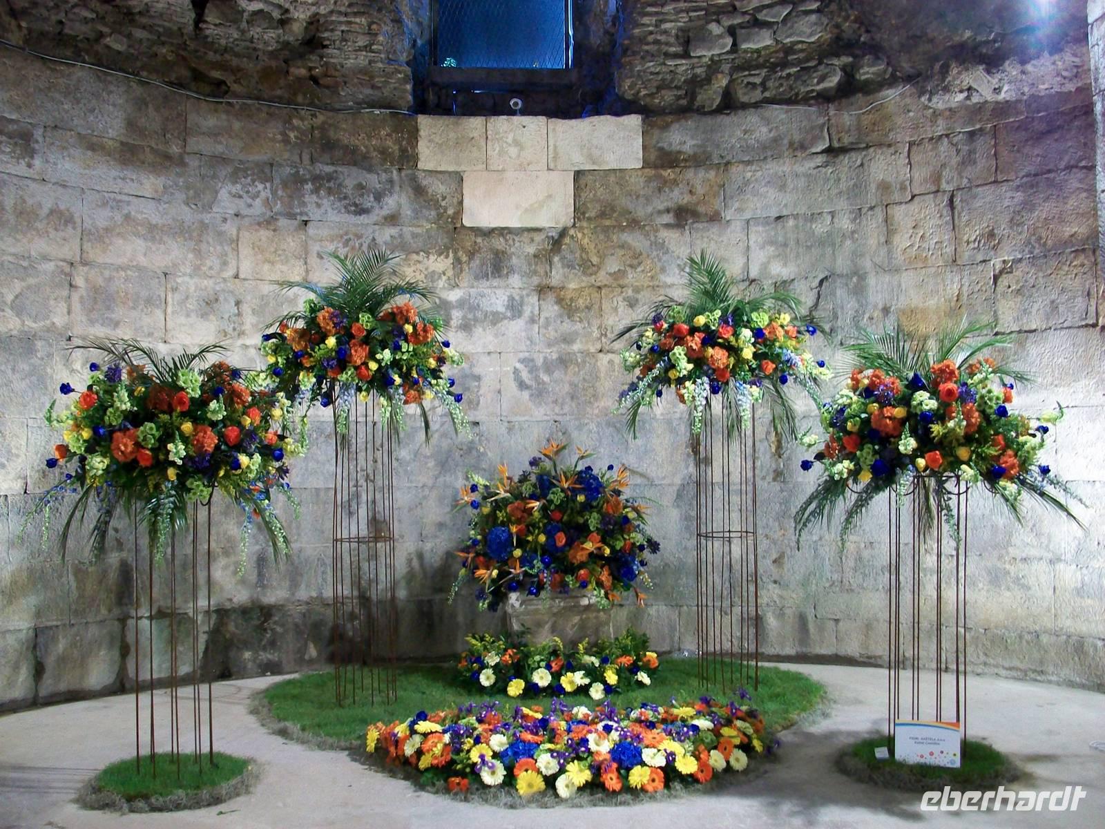 Heute ist in Split der Tag des Heiligen Domnius und damit sind auch größere Feierlichkeiten verbunden. Doch zunächst verschwinden wir erst einmal in den Kellerräumen des Palastes den uns der Römische Kaiser Diokletian hinterließ. Gleichsam drehen wir hier die Zeit um runde 1 700 Jahre zurück. Einen besonderen Augenschmaus bietet uns die Blumenausstellung die geschmackvoll in diese alten Mauern platziert wurde; bunte Farben und der Duft von frischen Blumen begleiten unseren Rundgang. Dabei erfahren wir vieles aus den römischen Zeiten und als wir wieder am Tageslicht sind, haben wir gleich mehrere Zeitepochen überschritten. Im Mittelalter, und besonders unter den Venezianern, entstand die Altstadt wie sie sich uns heute zeigt.
