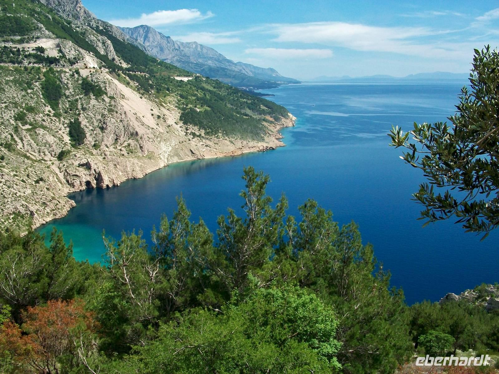 Kein Wölkchen trübt den Himmel als wir uns auf den Weg machen. Wir durchfahren das dünnbesiedelte Gebiet der Lika; eine unberührte und schöne Karstlandschaft breitet sich vor unseren Augen aus. Später geht es durch einen Talkessel in dem die Stadt Knin liegt und hinter dem Ort Drniš gelangen wir über einen Hügel und nun auch in den Bereich des mediterranen Klimas.