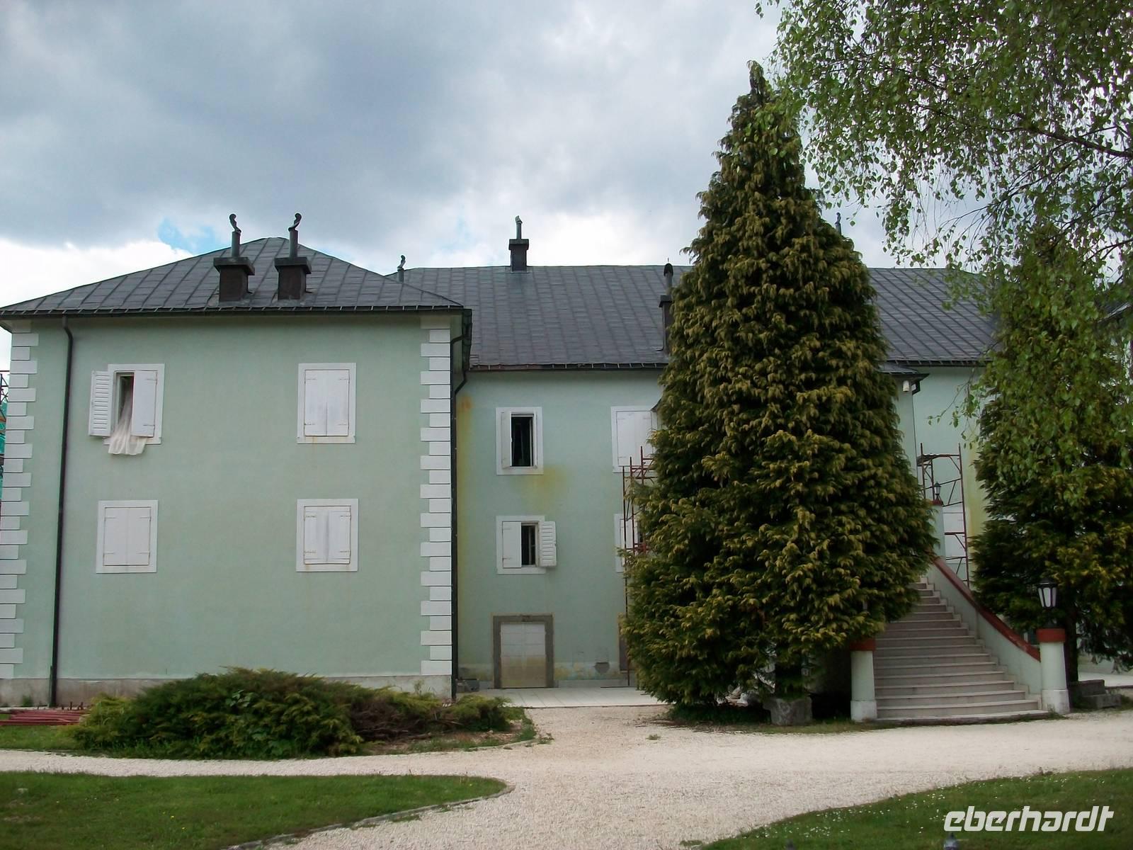 Nun müssen wir in großem Bogen die Küste umgehen, ein Umweg führt uns noch einmal hinauf nach Zagreb, später noch an der Slowenischen Hauptstadt Ljubljana vorbei um dann schließlich auf die Landstraße in Richtung Tolmin einzuschwenken. Hier hat sich nun wieder die Sonne eingestellt und die weitere Fahrt gestaltet sich sehr reizvoll. Entlang eines romantischen Tales durch welches der Fluss Idrijca fließt, gelangen wir durch zahlreiche Kurven nach Tolmin. Hier sehen wir nun die fast unwirklich grünen Fluten der Soca, ihrem Lauf folgen wir nun aufwärts. Strahlender Sonnenschein und ein schöner Nachmittag begleitet uns weiterhin; nach einem kleinen Aufenthalt im geschichtsträchtigen Kobarid gelangen wir etwas später als geplant, aber noch rechtzeitig für ein pünktliches Abendessen, an unserem Hotel in Bovec an.