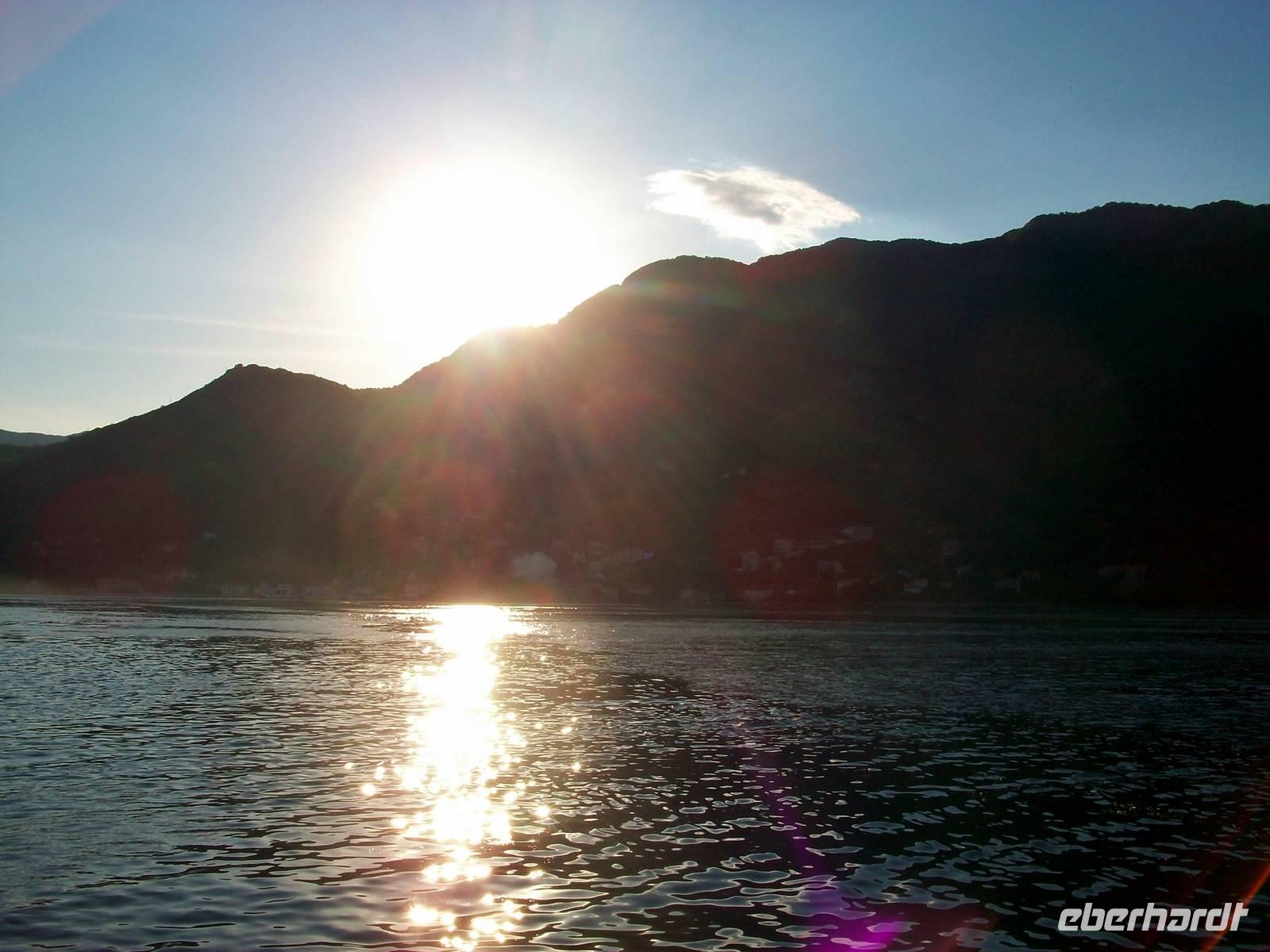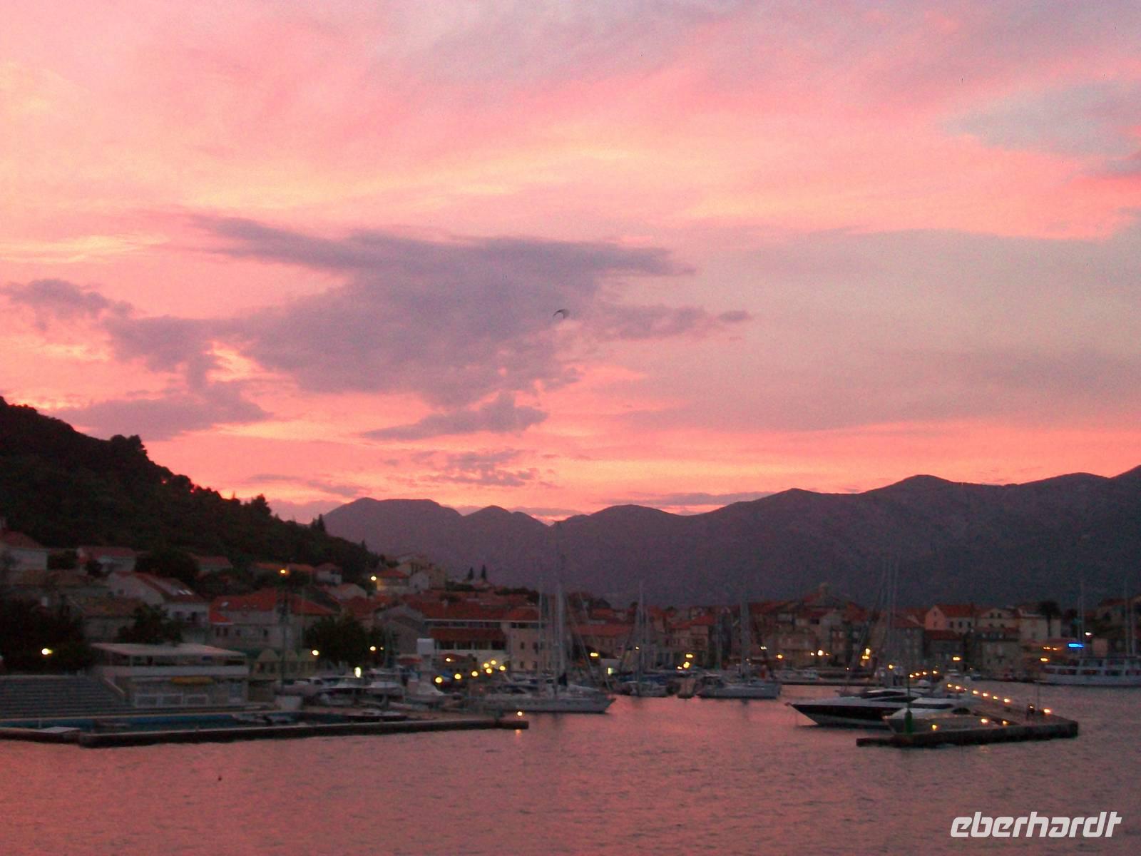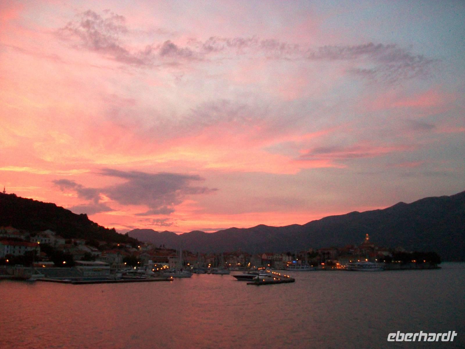 Über die Schmalstelle der Bucht gelangen wir nach Kamenari, später zur Grenze und als wir in Dubrovnik anlangen, ist die Sonne schon untergegangen.