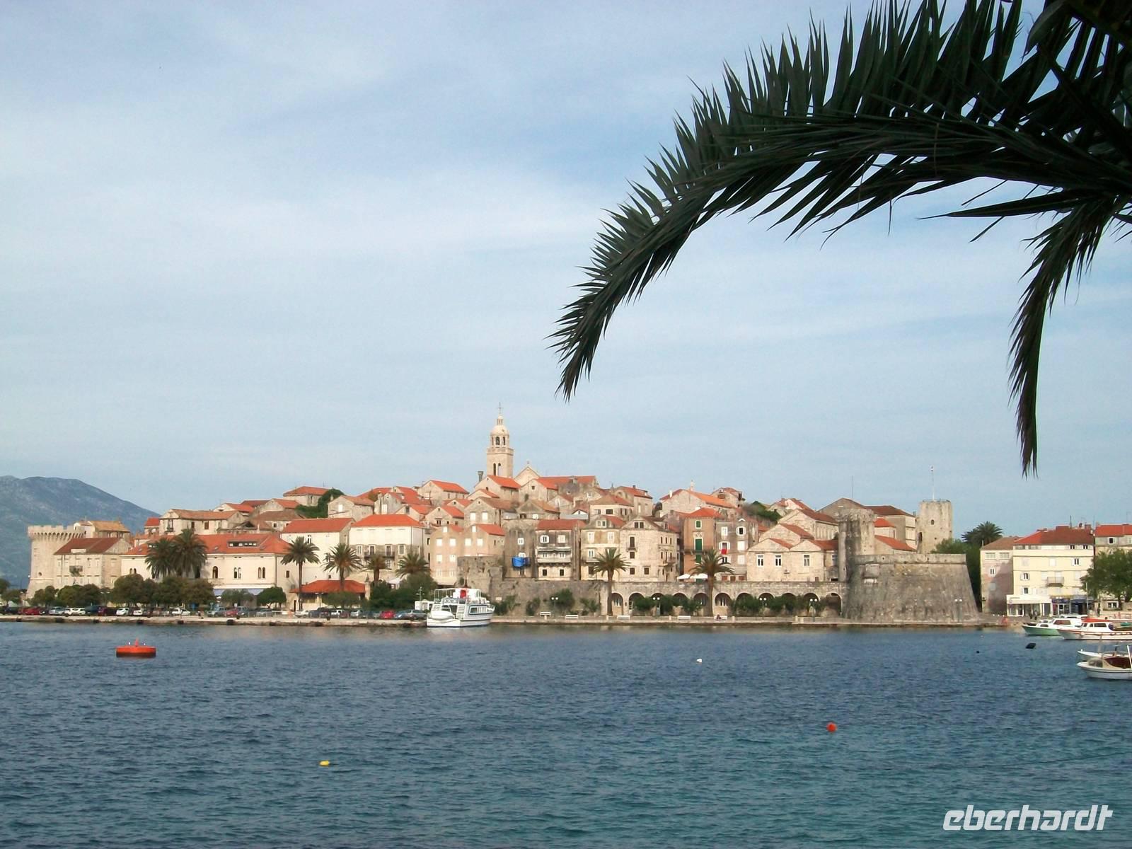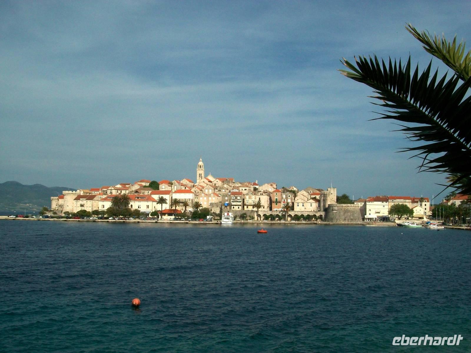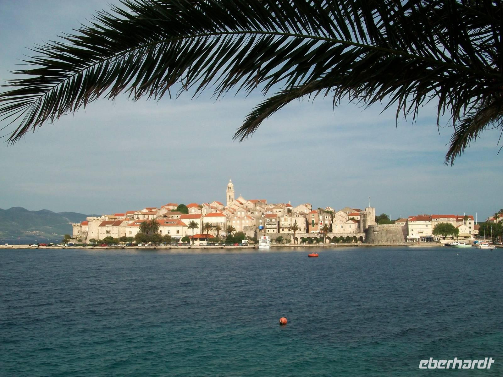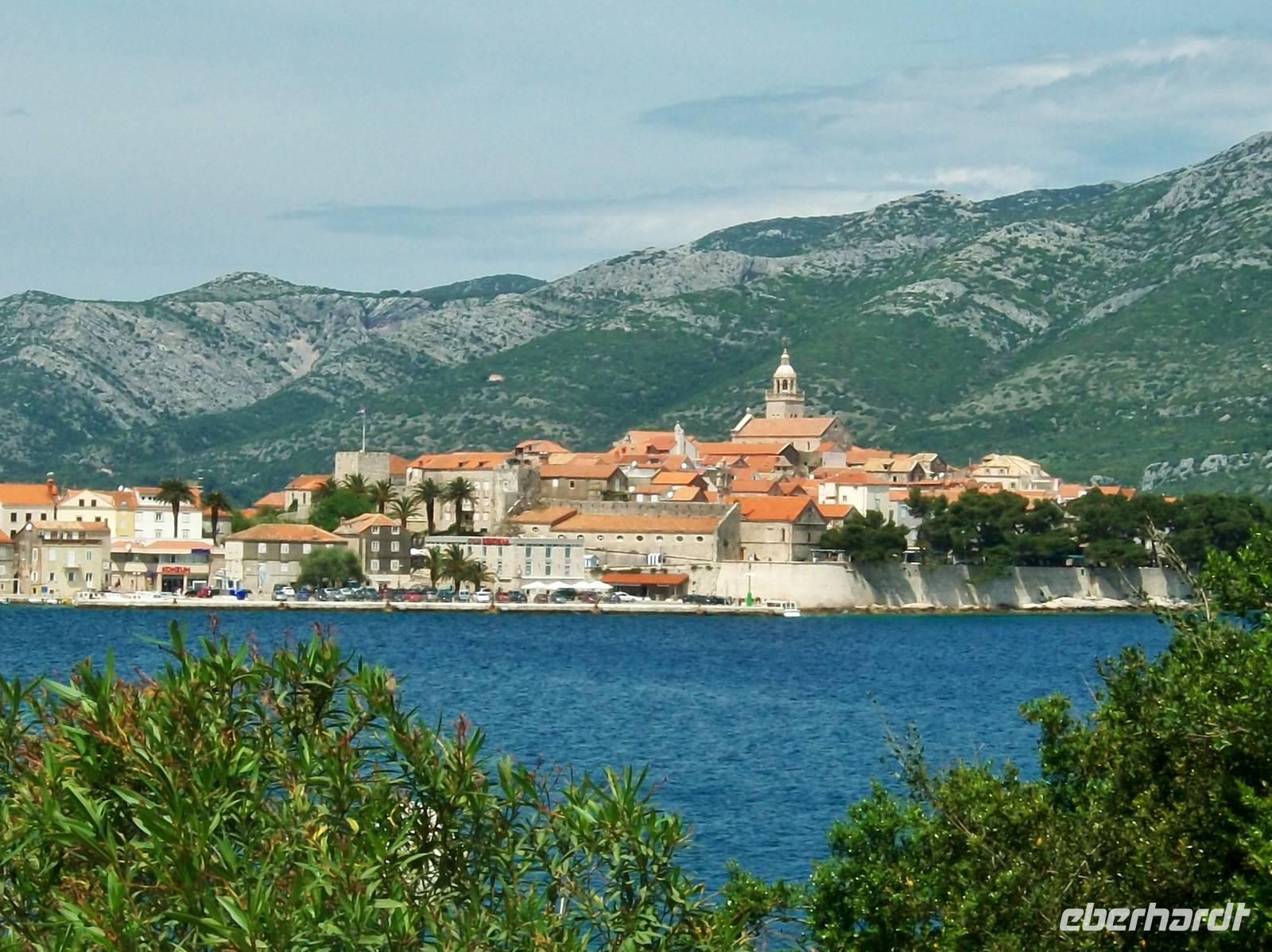 Gegen elf langen wir in Orebic an; steil steigt der Berg des Heiligen Elias in fast 1 000 Meter Höhe an und vor unseren Augen ausgebreitet liegt die Insel Korcula.
