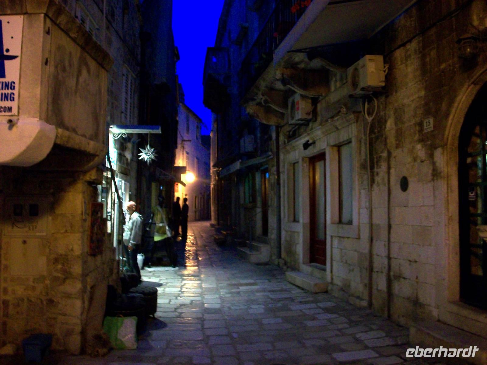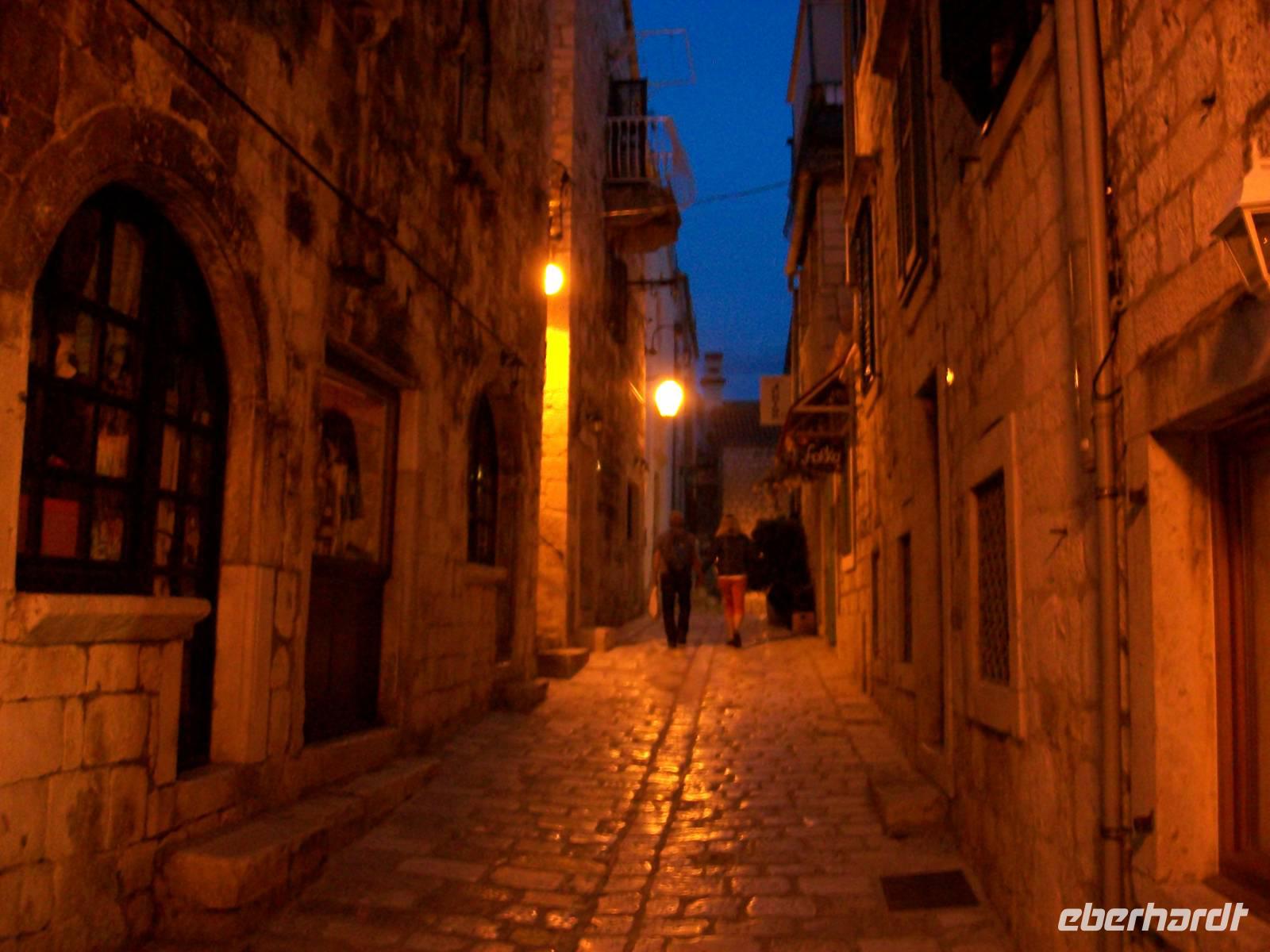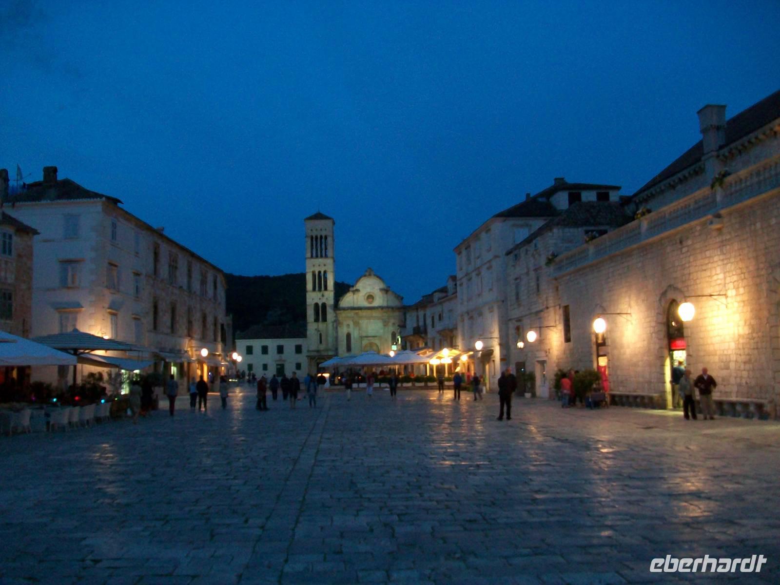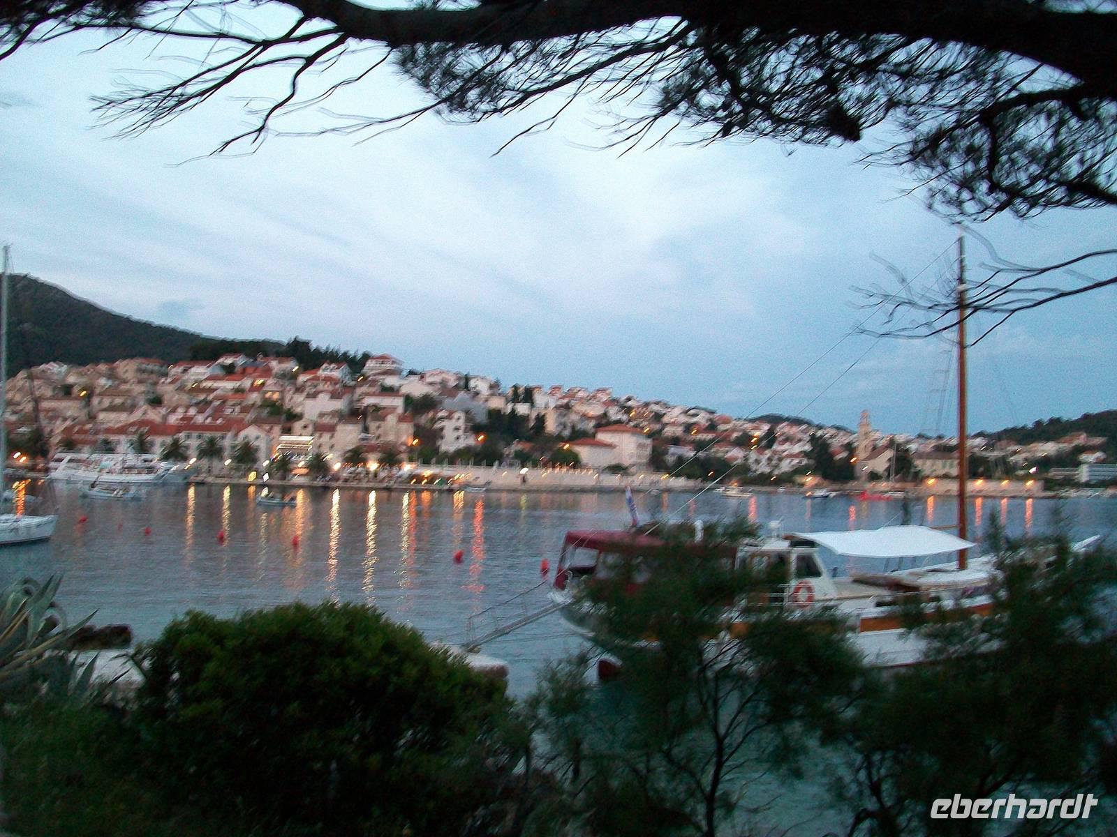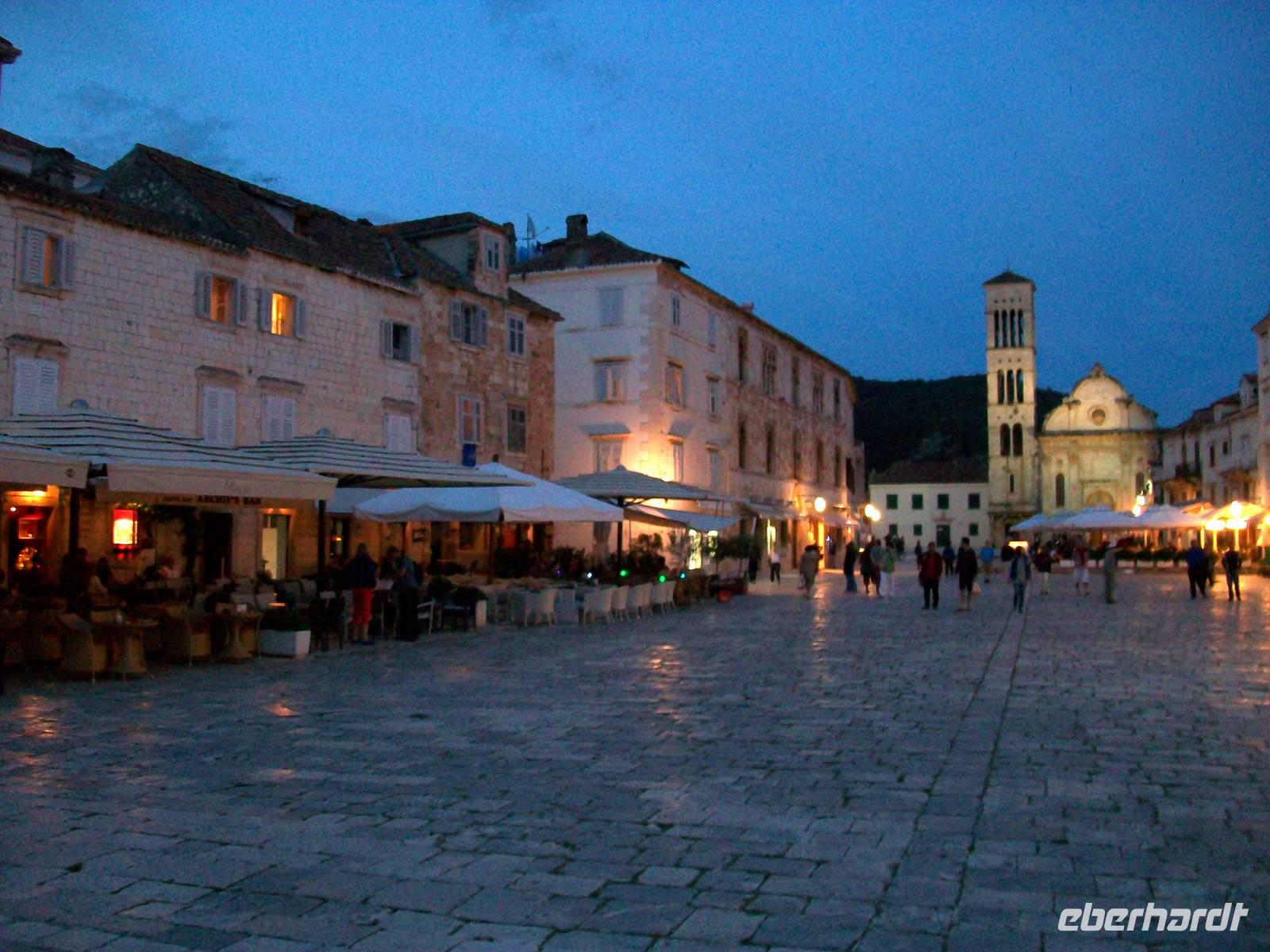 Nach der Führung gelangen wir zum Hotel und nach dem Abendessen ist es nur ein Katzensprung in die Altstadt. Entlang der schönen Uferpromenade kommen bald die Lichter von Hvar in Sicht; die Sonne ist untergegangen und die alten venezianischen Gebäude erstrahlen in einer magischen Beleuchtung. Über allem steht der Mond der diese überaus romantische Impression komplett macht.