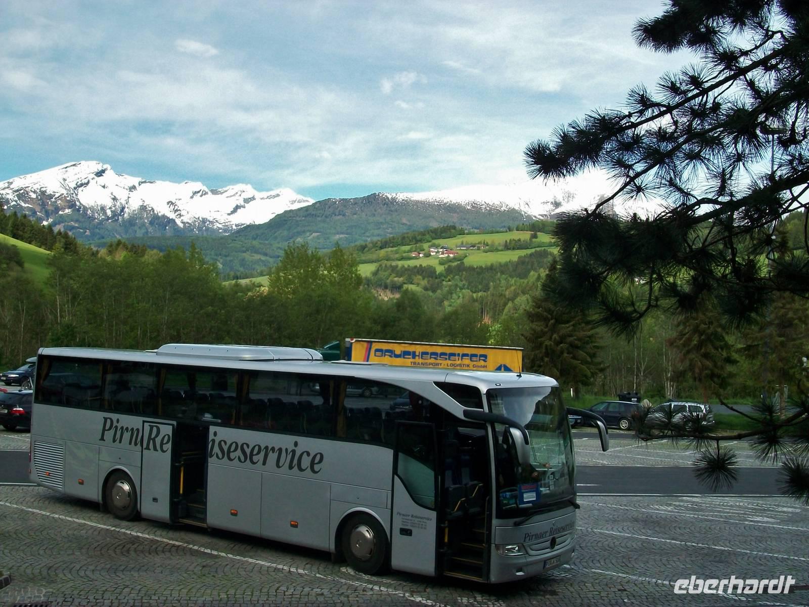 Dennoch hat sich eine erwartungsfrohe Reisegesellschaft im Bus versammelt und mit dem nötigen Optimismus haben wir die Fahrt begonnen. Nach dem Vogtland schwenken wir dann auf die Regensburger Autobahn ein, überqueren die Donau und sehen auf der linken Seite die Spitzen des Doms. Weiter führt uns die Fahrt an grünen Feldern vorbei und wir erblicken auch die bewaldeten Hügel des Bayerischen Waldes. Dann sind wir am Inn angelangt und dahinter schon in Österreich unterwegs. Nach Passieren des Knoten Wels sollten schon die ersten Berge zu sehen sein, allein Petrus hat auch dorthin dicke Wolken geschickt; der Blick bleibt uns verwehrt.