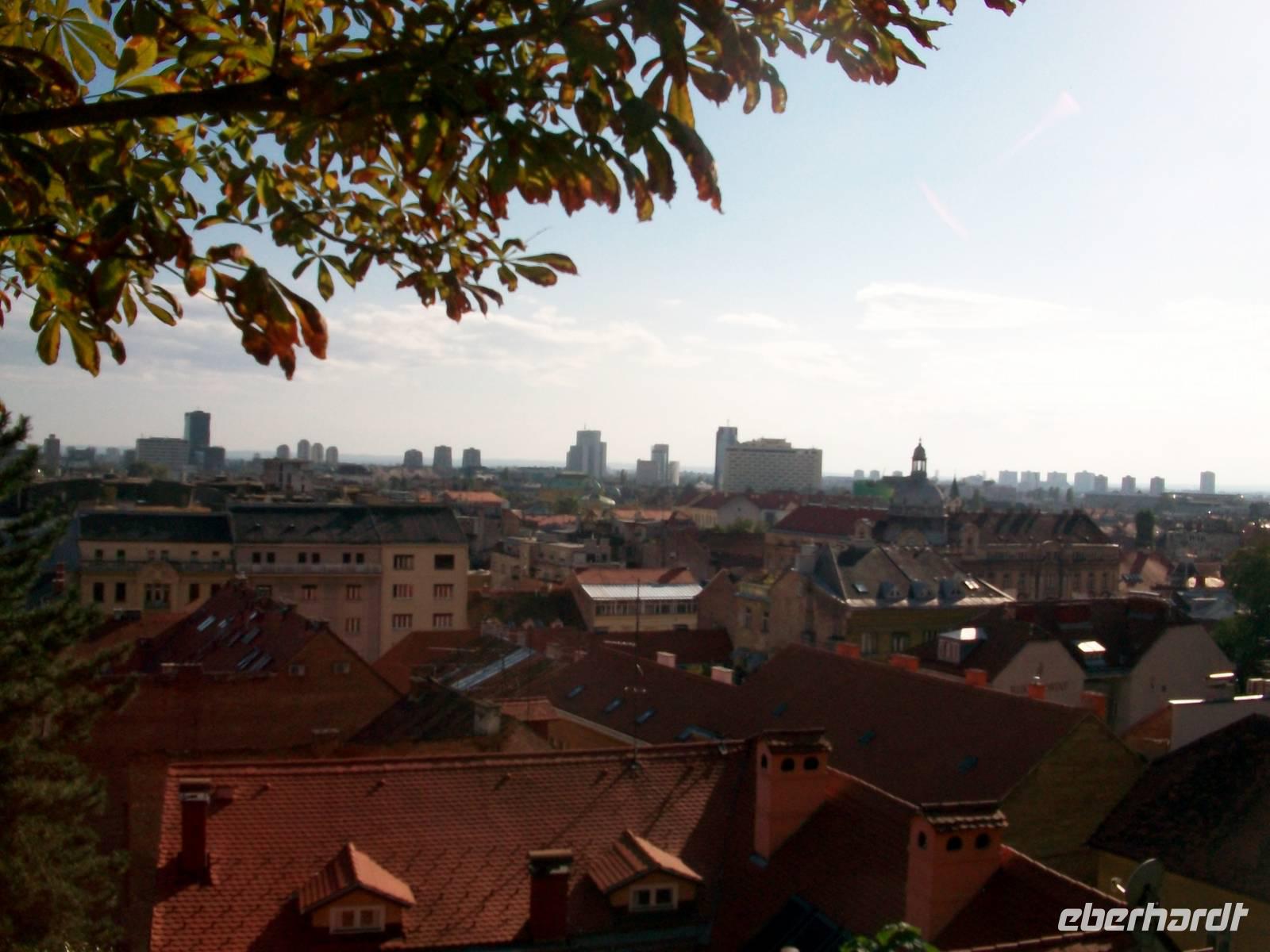 Als wir dann in die Stadt hineinfahren haben sich dicke Wolken vor den Zagreber Berg gelegt und die Straßen sind nass. Als wir dann 14.00 Uhr zur Stadtführung starten hat sich aber die Sonne wieder durchgesetzt und bescheint unsere Entdeckungen die wir nun in der Kroatischen Hauptstadt haben. Unser Stadtführer Milovan führt unsere Gruppe wie immer äußerst sachkundig durch diese interessante Stadt. Zunächst führt uns der Weg hinauf auf den Hügel des Mirogoj- Friedhofes, sehr monumental ist das Bauwerk welches hier angelegt wurde. Dann geht es hinunter zur Kathedrale, wir werfen einen Blick hinein und danach geht es hinauf zur Oberstadt. Durch das historische Steintor, das letzte seiner Art in Zagreb, geht es weiter bergauf und oben am Markusplatz weiß Milovan einiges über die Sehenswürdigkeiten dieses Platzes zu sagen. Hier sehen wir das Parlamentsgebäude, den Regierungssitz und die Markuskirche mit den schönen bunten Dachziegeln. Nur wenige Meter weiter, und wir haben einen grandiosen Blick auf die Dächer dieser Stadt die im Sonnenschein eines schönen Nachmittags liegt.