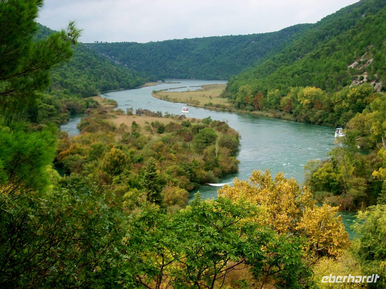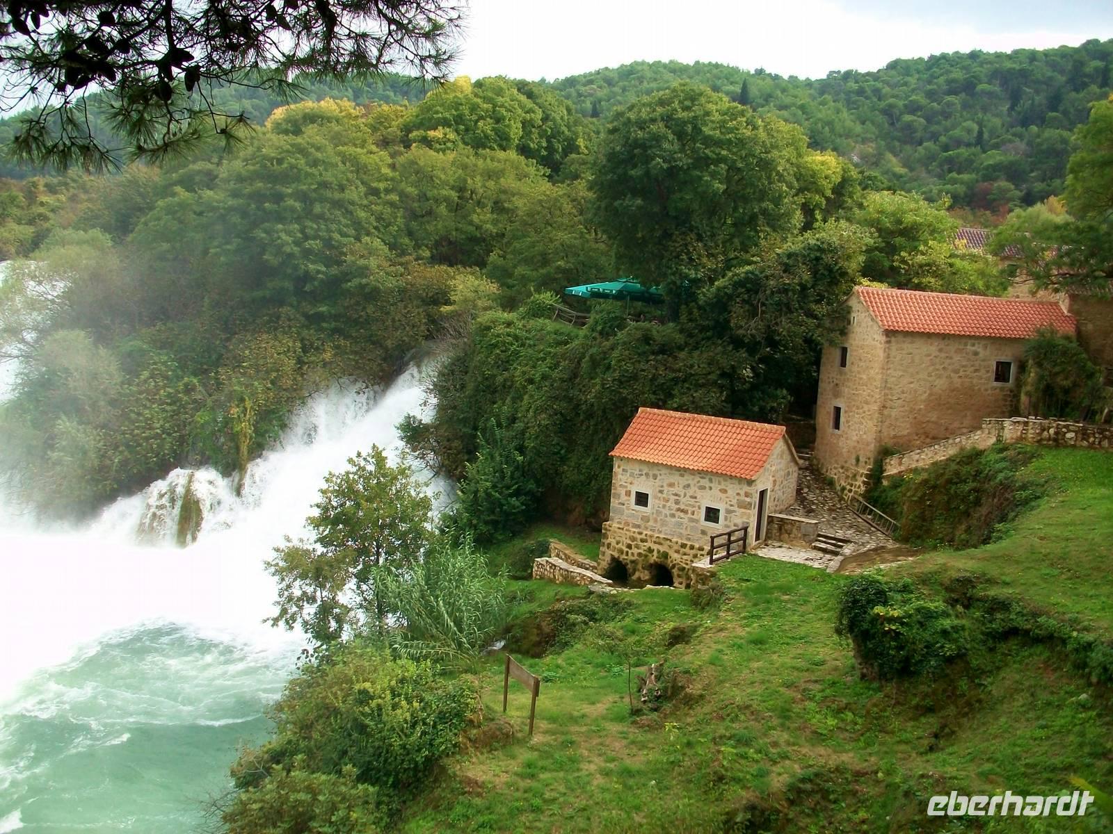 Gegen Mittag langen wir an unserem ersten Ziel an; es ist der Krka- Nationalpark und dessen spektakulärsten Wasserfall, den Skradinski- Buk, wollen wir uns nun anschauen. Nach einem kleinen Imbiss geht es hinunter, dann verlassen wir den Bus und werden fortan zu Fuß in dieses Wundern der Natur unterwegs sein.