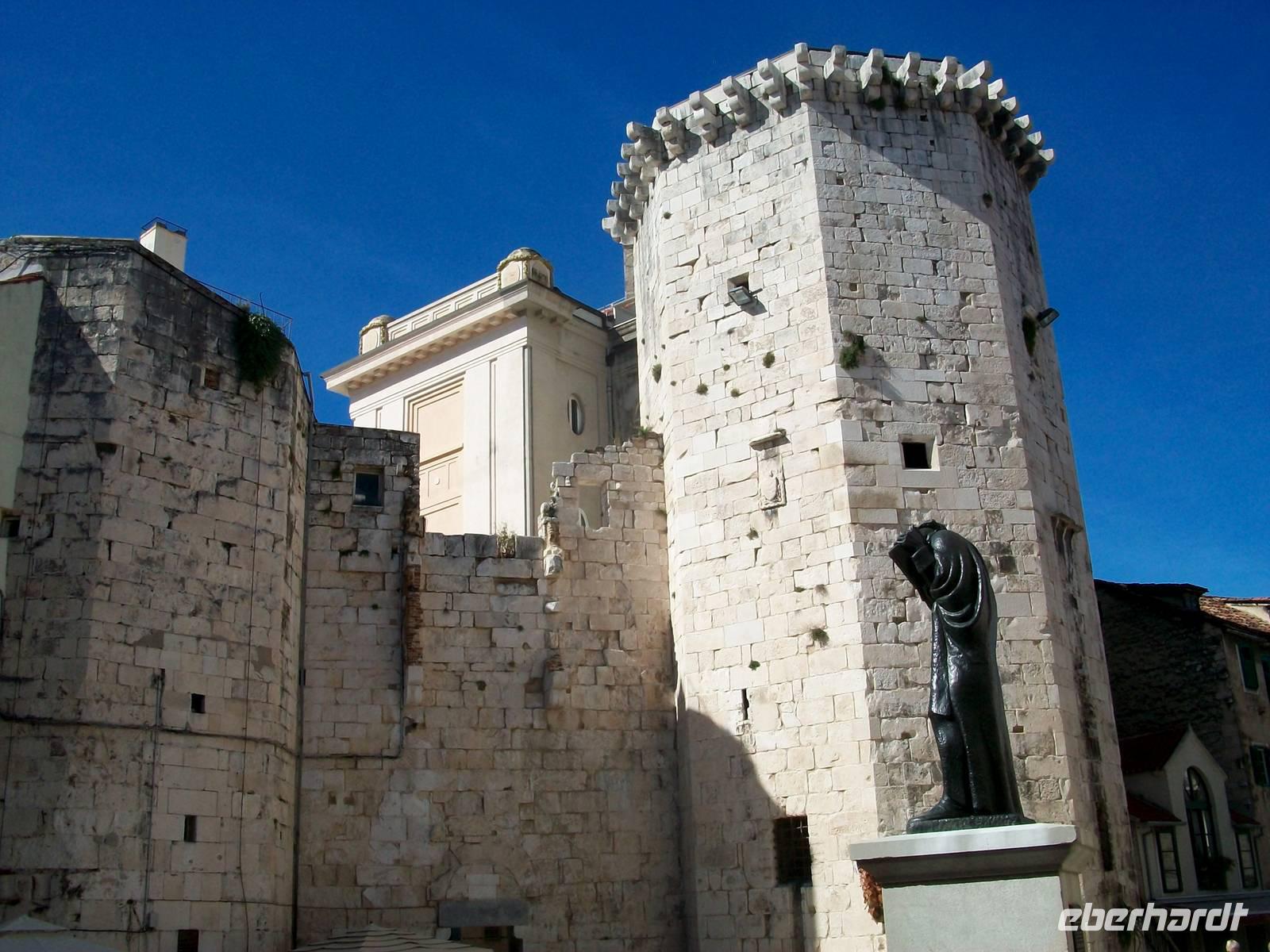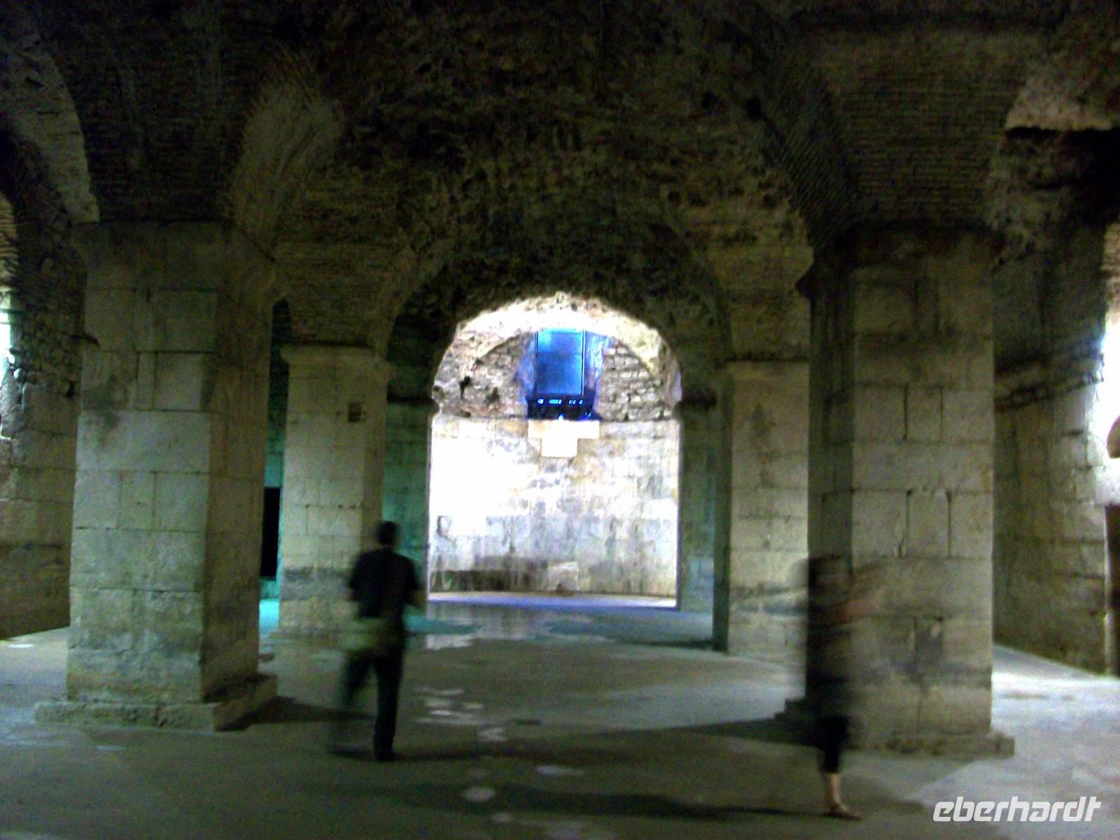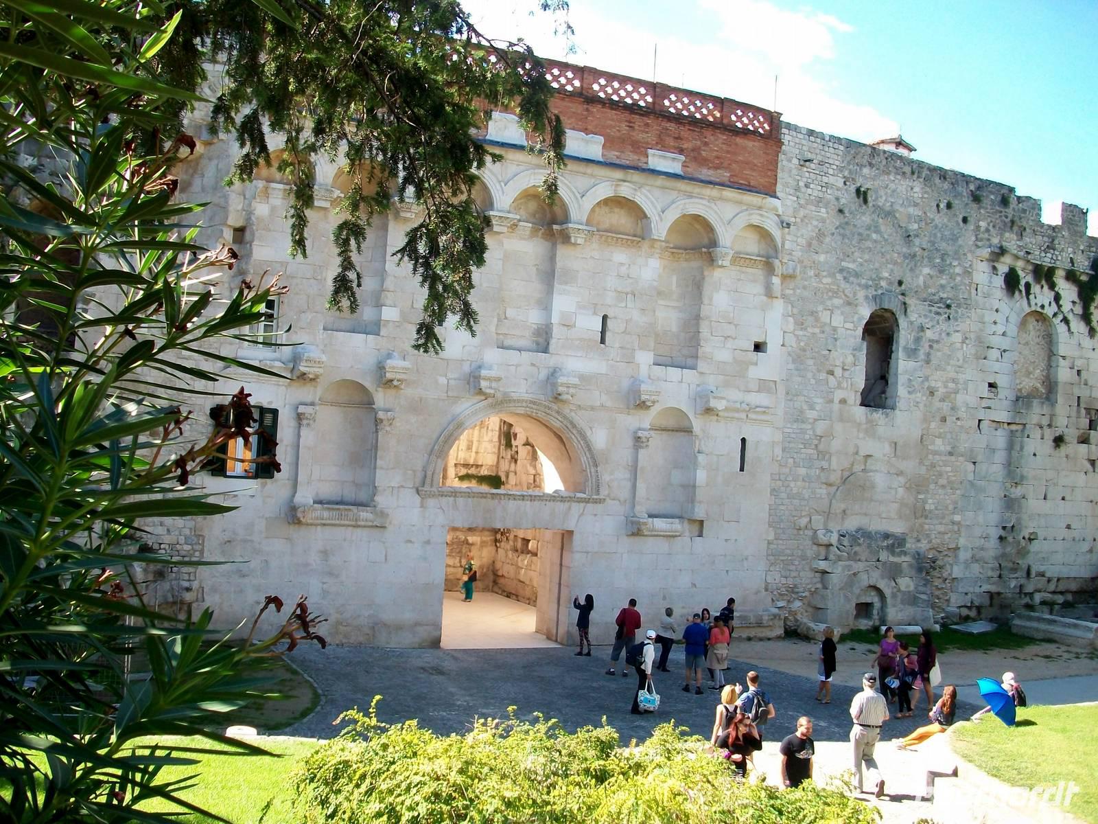 23.9.2014. In der Nacht hat uns Petrus wieder sein nun schon obligatorisches Gewitter gesandt, als wir aber gegen neun starten lacht aber schon wieder die Sonne wenngleich es sich etwas abgekühlt hat. Als wir von den Bergen herunterkommen breitet sich vor unseren Augen das Häusermeer von Split aus, es wird von der Morgensonne angestrahlt. Bald sind wir unten angelangt und wir müssen uns etwas durch den Verkehr kämpfen, dennoch kommen wir rechtzeitig am vereinbarten Treffpunkt an. Hier werden wir schon von Josip, unserem Stadtführer erwartet, er wird uns nun in die Geheimnisse von Split einweihen. Zunächst gelangen wir in die Kellerräume des Palastes den uns der Römische Kaiser Diokletian überlassen hat. Fast 2 000 Jahre alte Geschichte; wenn die Mauern reden könnten, so mach interessante Story würden wir erfahren. Kreuz und quer geht es durch diese alten Fundamente und als wir wieder am Licht auftauchen sind wir in einer anderen Zeitepoche unterwegs. Im Mittelalter und auch danach entstand die Altstadt; durch enge Gassen gelangen wir zu weiteren Höhepunkten, durchschreiten das Goldene Tor, schlendern über belebte Plätze und beenden die Führung wieder in der Nähe der Riva, es ist die Promenade von Split. Sie liegt im strahlenden Sonnenschein, das richtige Wetter für individuelle Exkursionen in dieser faszinierenden Stadt.