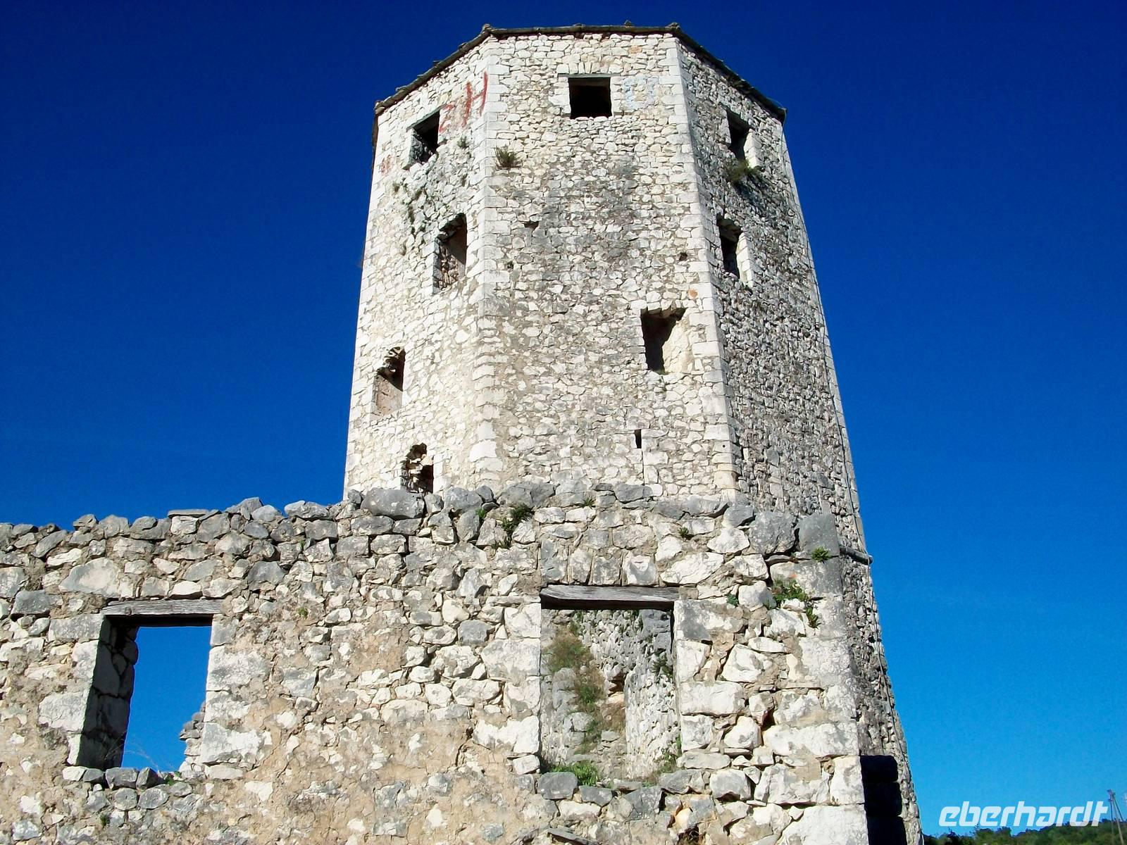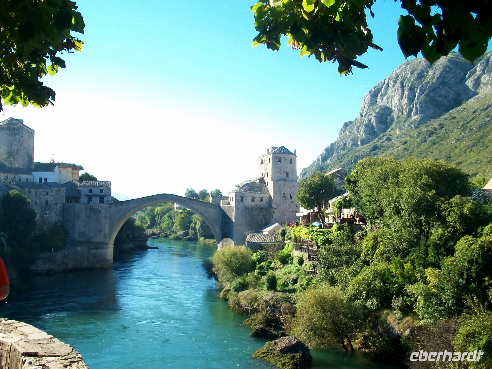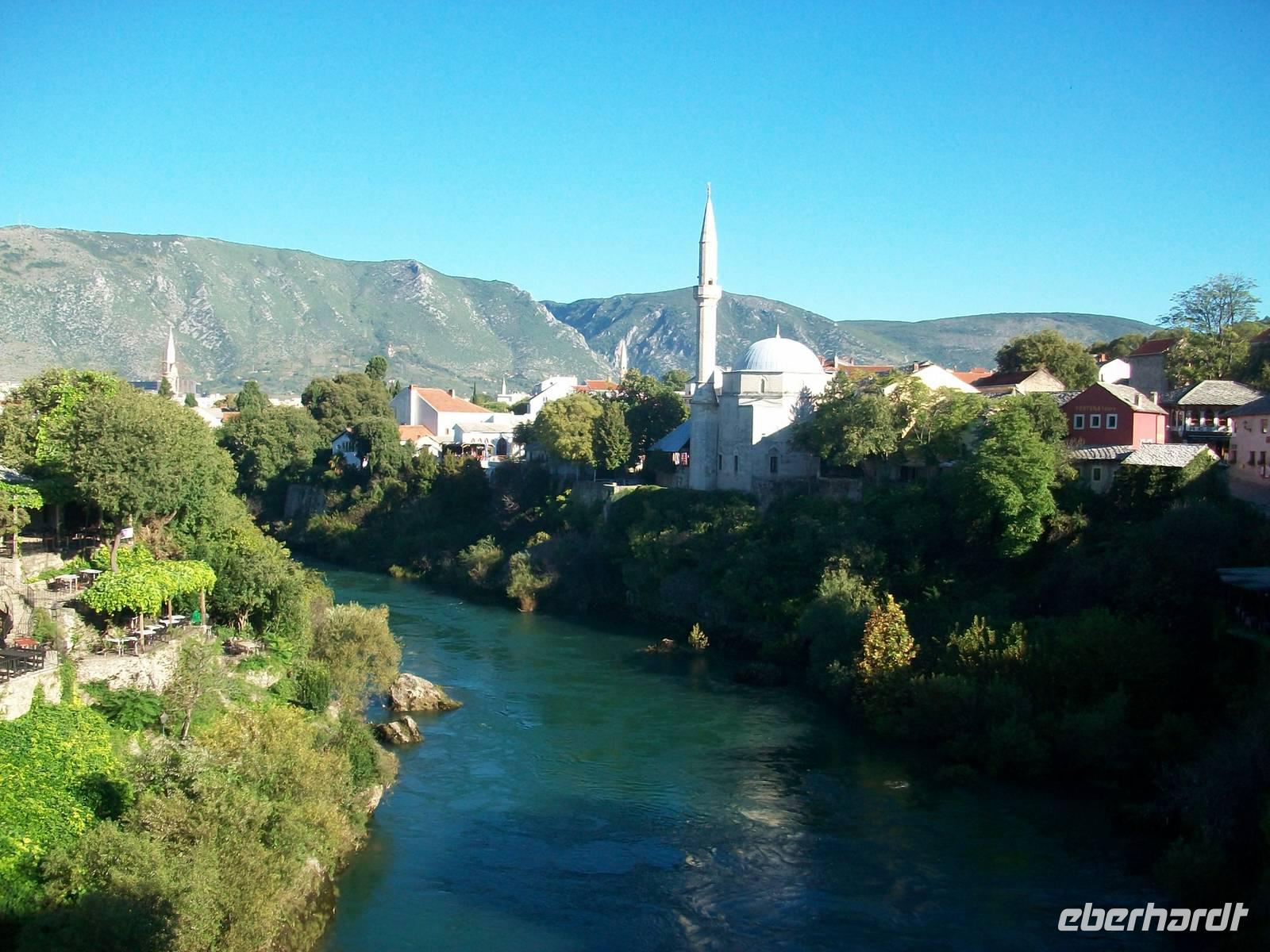 Dann sind wir an der Grenze zu Bosnien angelangt, die Formalitäten gehen schnell vonstatten und als wir in unserem neuen Gastland angelangt sind, tauchen wir gleichsam ein in einen neuen Kulturkreis. Hier herrschten über Jahrhunderte die Osmanen und hinterließen uns ihre Architektur. Besonders eindrucksvoll kann man das im Ort Pocitelj sehen, ihm statten wir noch eine Besuch ab. Ganz malerisch liegt er am Hang; beim Aufstieg zum alten Festungsturm breitet sich ein schönes Panorama vor unseren Augen aus: zu unseren Füßen der alte Ort und im Hintergrund schlängelt sich die Neretva durch die Berge.