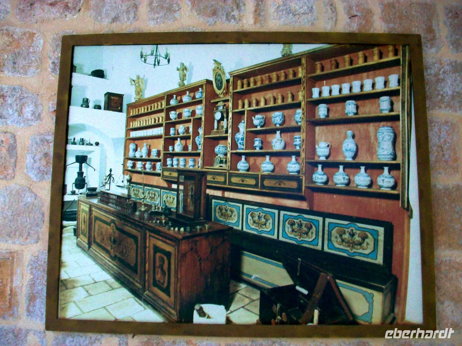 Dann gelangen wir zur Stradun, es ist die Hauptader der Stadt und hier sind auch schon zahlreiche Touristen aus der ganzen Welt unterwegs. Gleich um die Ecke befindet sich das Franziskanerkloster mit der Alten Apotheke, beiden gilt nun unser Besuch. Besonders schön ist der romanische Kreuzgang angelegt, im Innenhof grünt es und einige Zitrusfrüchte hängen noch an den Bäumen.
