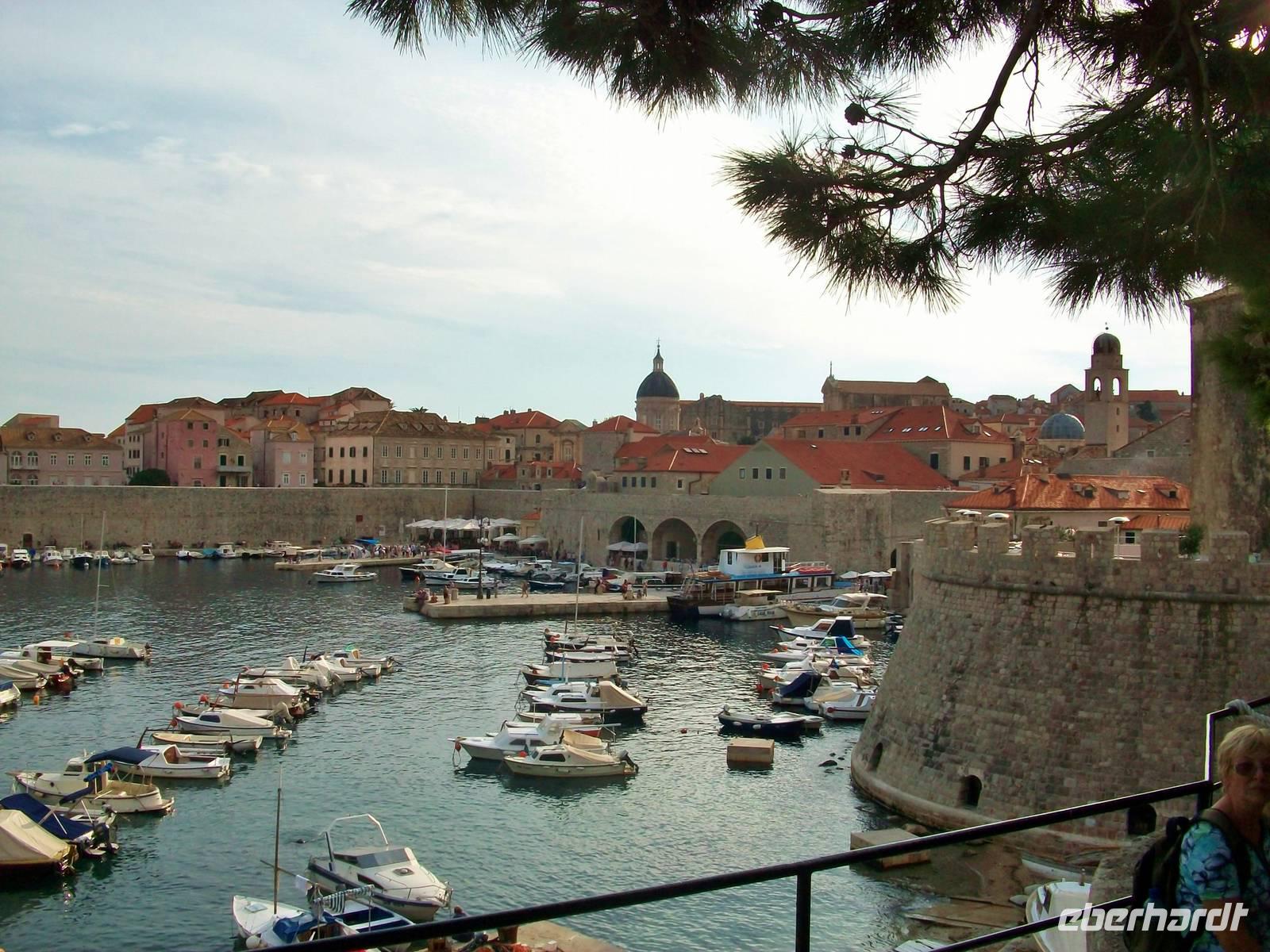Petrus meint es heute wirklich gut mit uns; als wir dann wieder mit unserem Bus unterwegs sind um nach Dubrovnik zu gelangen, bescheint die Sonne die unermessliche Wasserfläche der Adria und die vorgelagerten Inseln. Sehr romantisch verläuft daher unser Weg nach Süden, allerdings hat es vor Tagen in Dubrovnik ein Unwetter gegeben so dass unser geplantes Hotel einige Probleme hat. Am heutigen Tag werden wir daher erst einmal für eine Nacht das Hotel „Park" beziehen und dann am nächsten Tag ins „Ivka" umziehen. Leider sind wir gegen solche Mächte machtlos, dennoch, vom „Park" ist es nicht weit zur Fußgängerzone und ein Bummel nach dem Abendessen auf dieser sehr gepflegten Straße lässt diesen Tag geruhsam ausklingen.