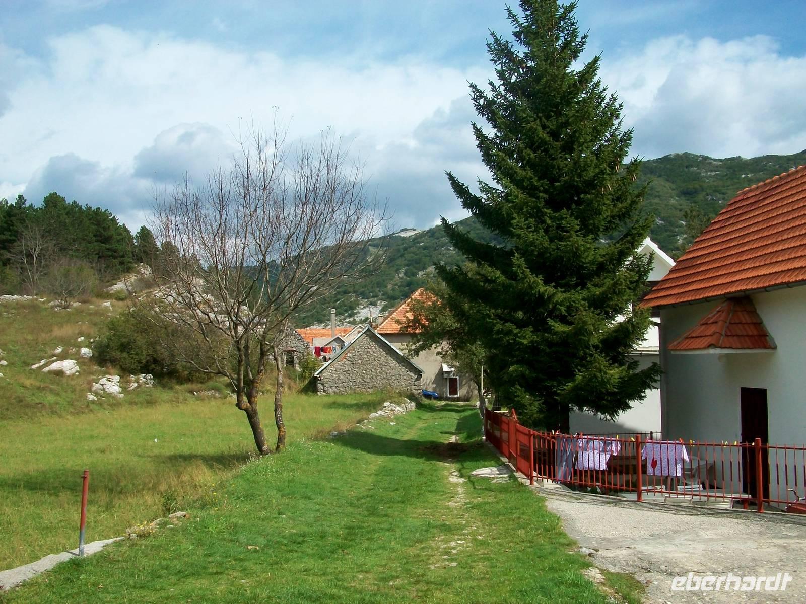 Im etwas verschlafenen Gebirgsdorf Njeguši können wir einen kleinen landestypischen Imbiss genießen, Schinken und Käse der Region auf lockerem Weißbrot.