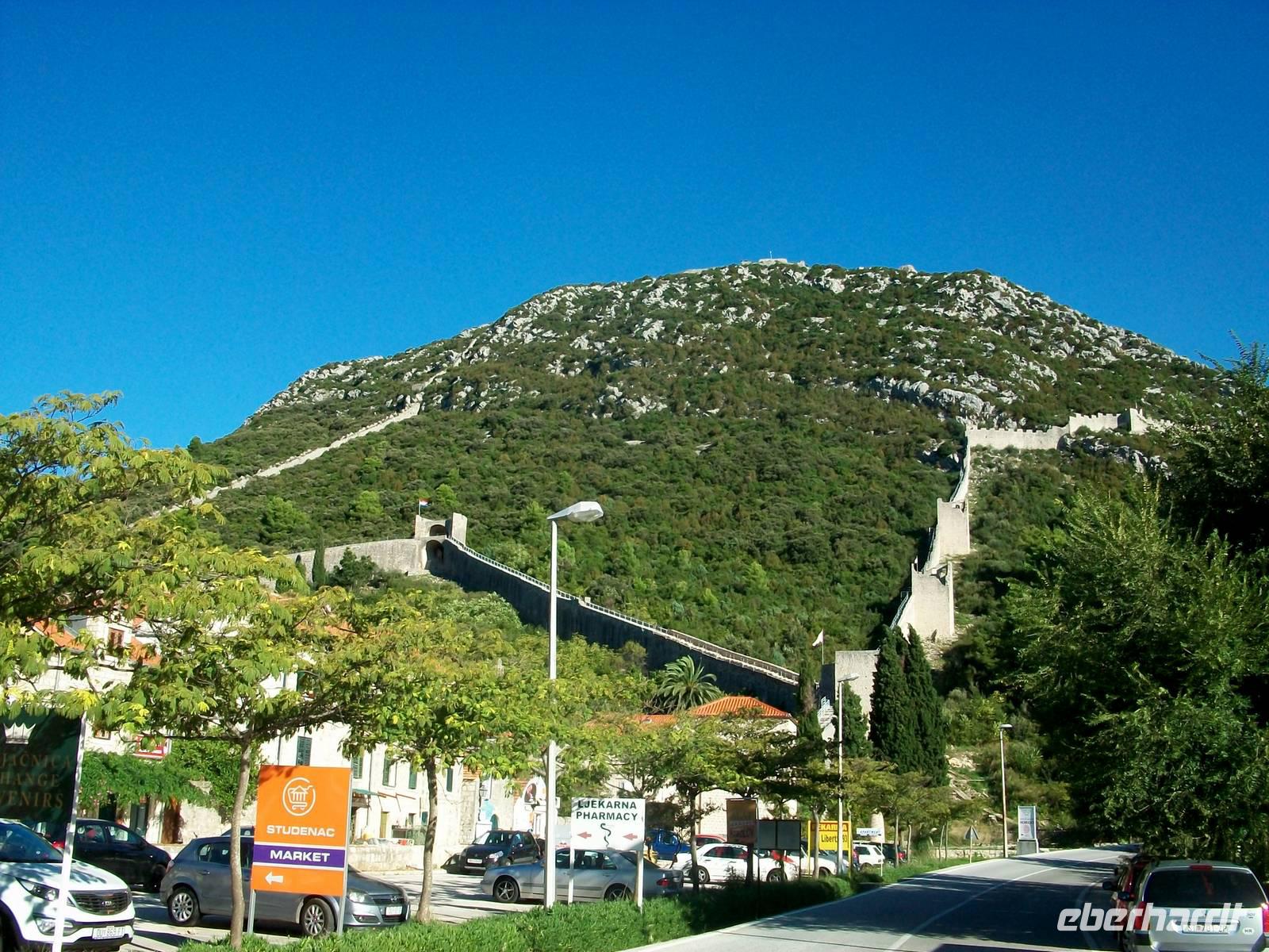 Bald schwenken wir von der Uferstraße ab und wir gelangen zur Halbinsel Pelješac. Im Ort Ston gewannen einst die Ragusaner ihr Salz; mächtige Mauern beschützten die Arbeit, sie blieben uns bis heute in Teilen erhalten. Hier legen wir auch deshalb einen Stopp ein und bevor wir weiterfahren, können wir schöne Fotos von diesem geschichtsträchtigen Ort schießen.
