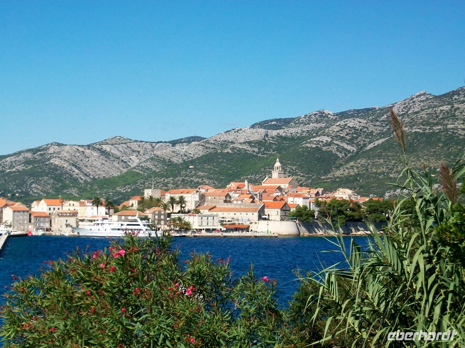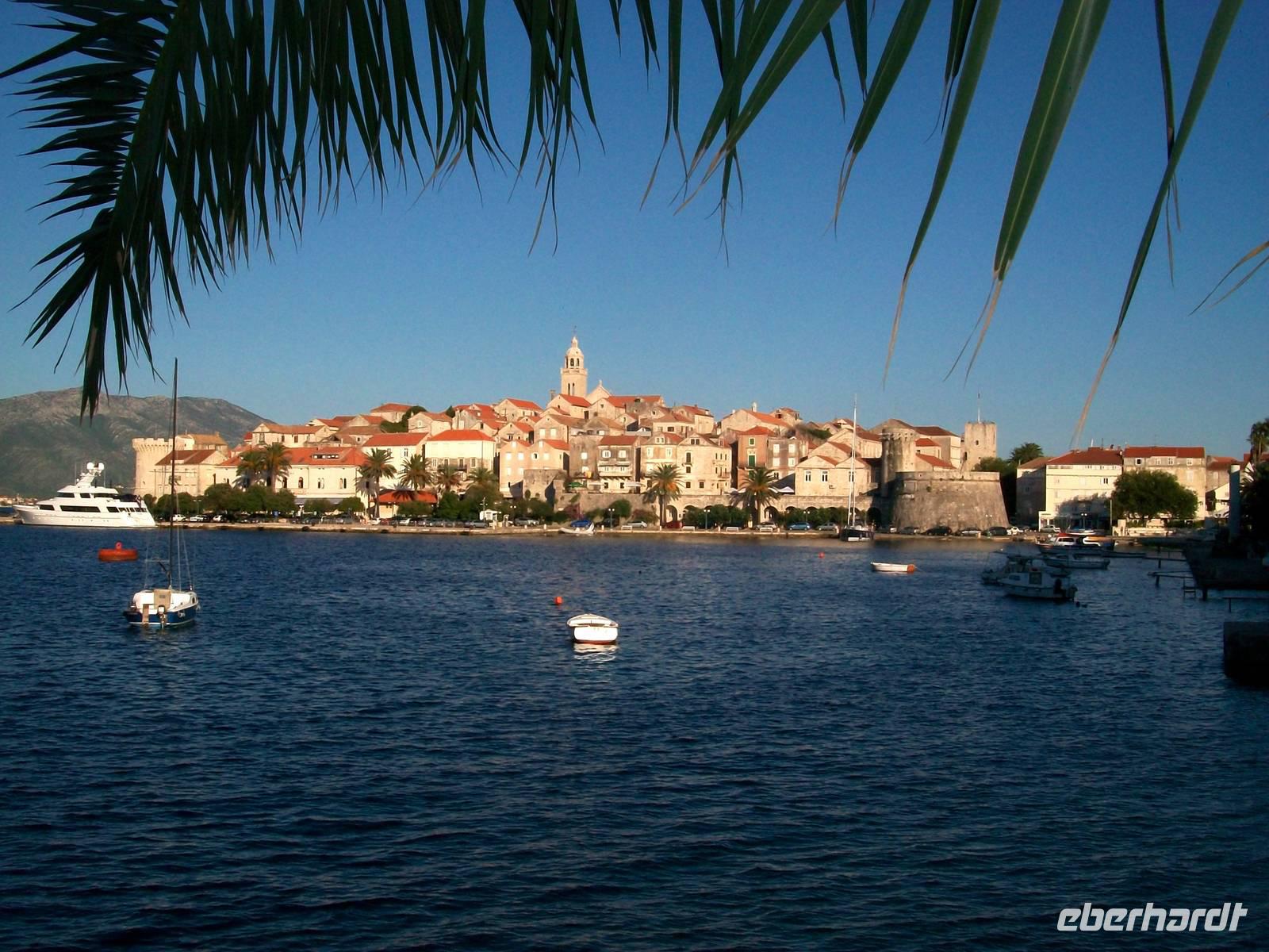 Dann gelangen wir in den alten Kapitänsort Orebic; nach einem kleinen Mittagsimbiss setzen wir dann mit der Autofähre zur Insel über und bei strahlendem Sonnenschein erreichen wir den Ort Korcula, unser heutiges Ziel. Hier werden wir schon von Lujo unserem lustigen einheimischen Führer erwartet, er wird uns in den nächsten Stunden Stadt und Insel näherbringen.