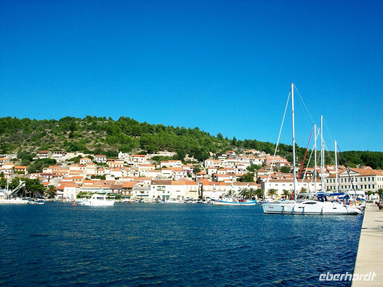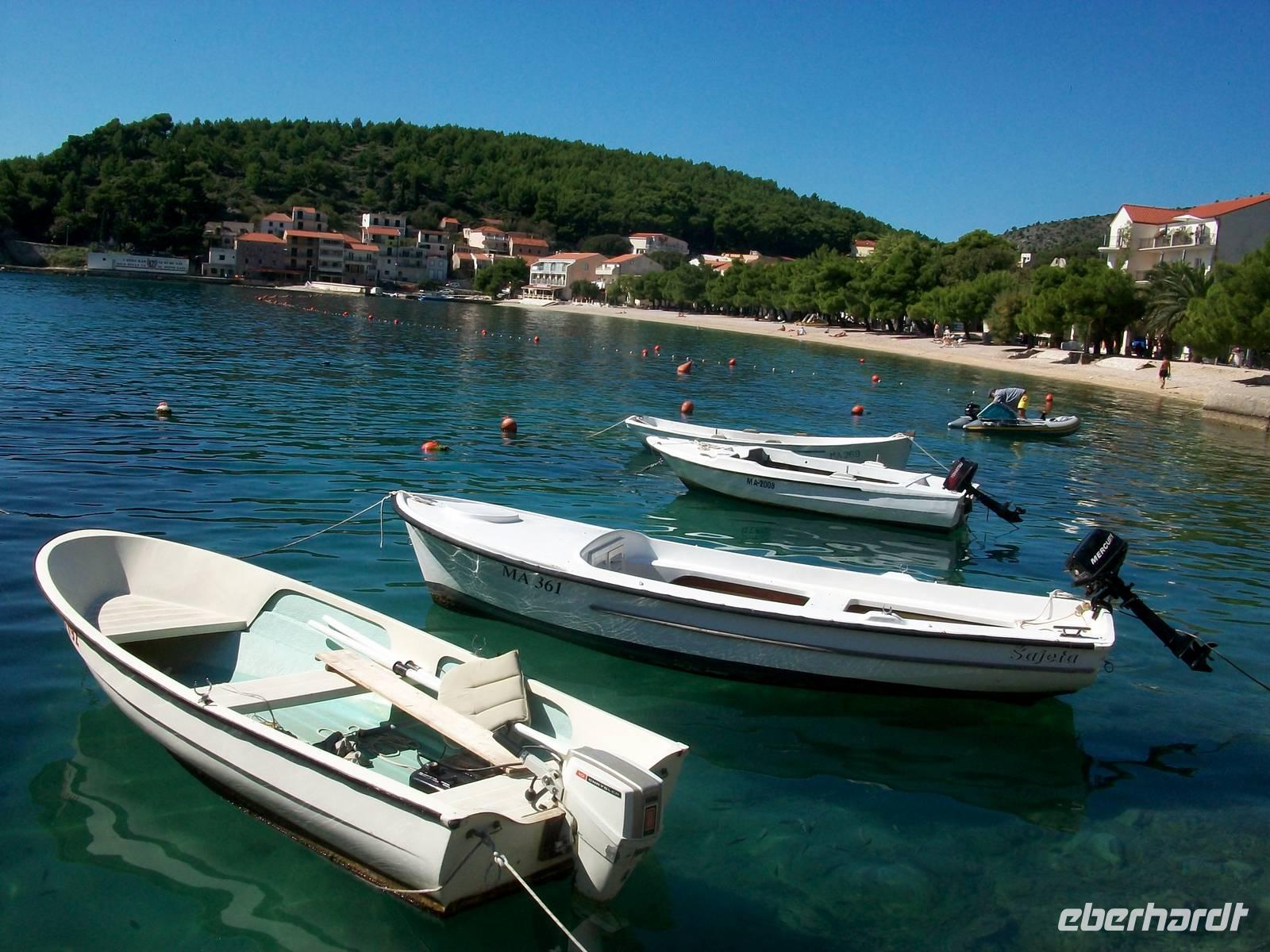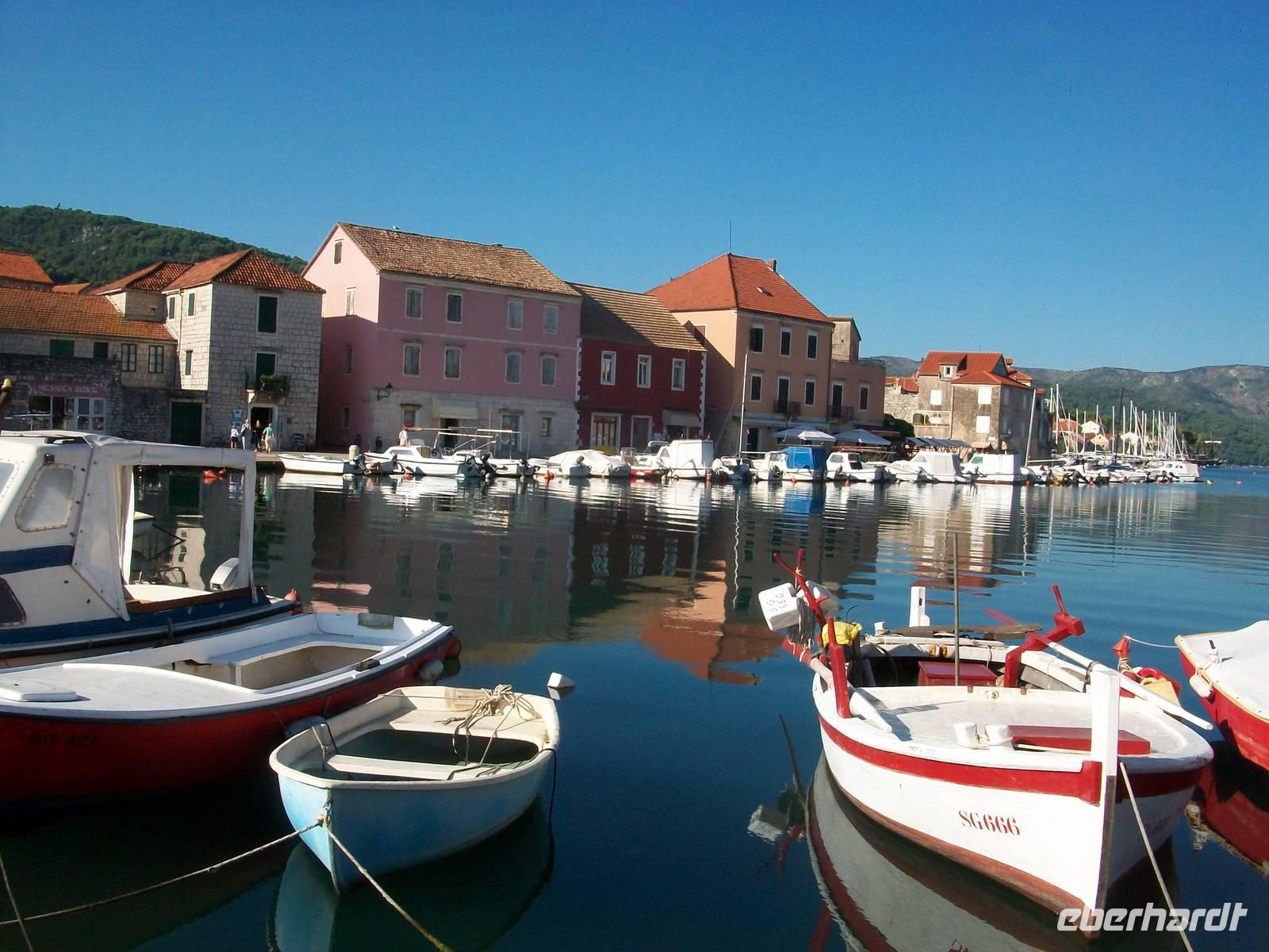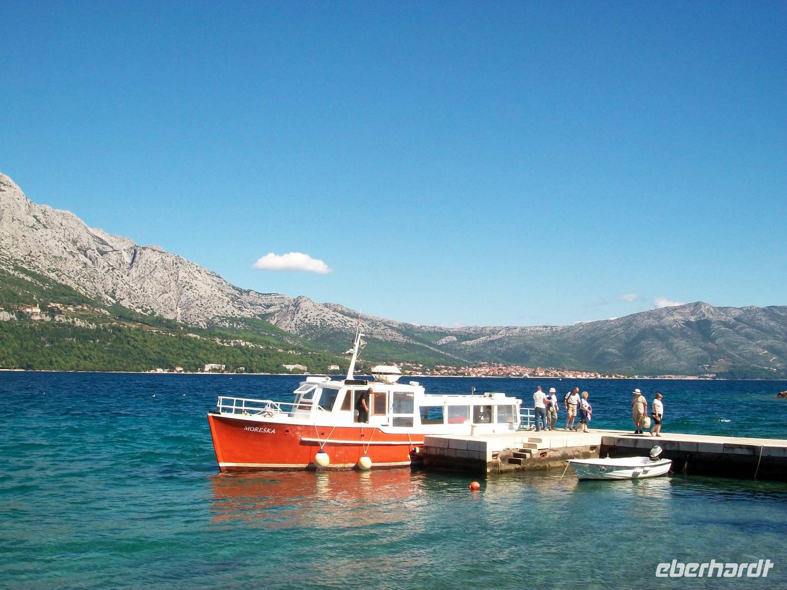 Gegen Mittag langen wir im Ort Drevenik an, von hier wird uns dann die Autofähre zur Insel Hvar bringen. Doch noch ist etwas Zeit zu einem Bummel durch den beschaulichen Ort, auch ein Fußbad am Strand ist möglich, dazu beschert uns die Sonne einen heißen Sommertag.