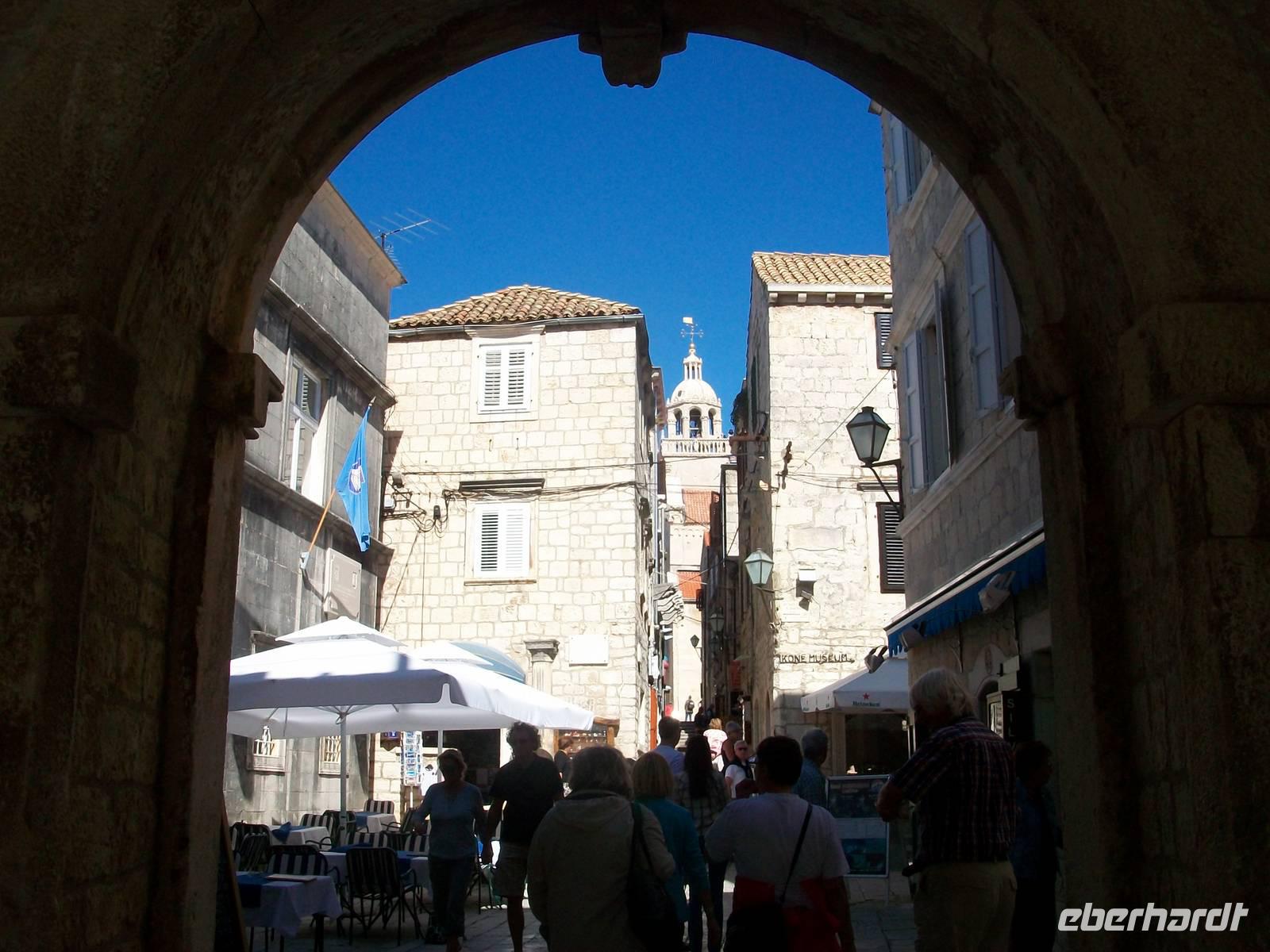 Wir sehen alte Adelspaläste, die Kathedrale mit den filigranen Skulpturen von Meister Radovan und enden auf der sonnendurchfluteten Promenade von Trogir.