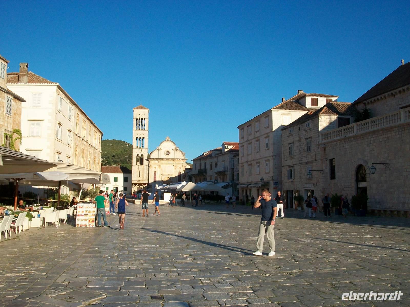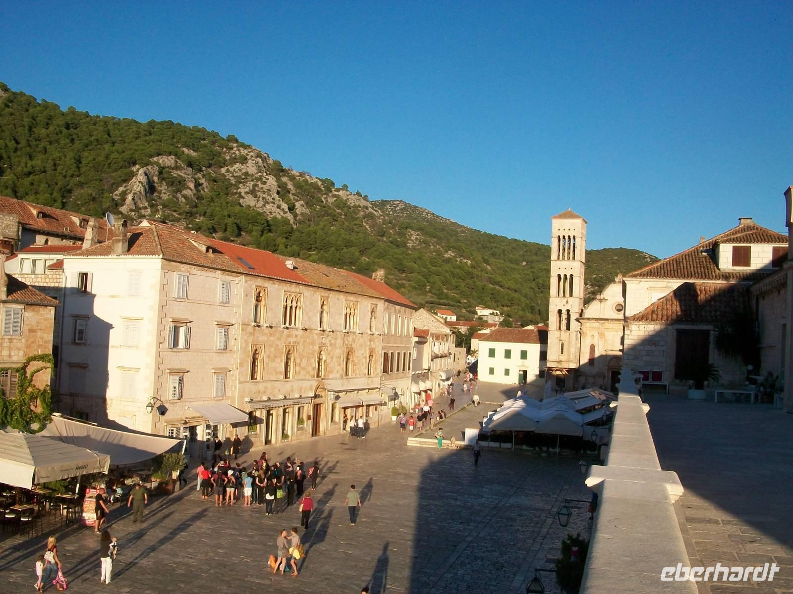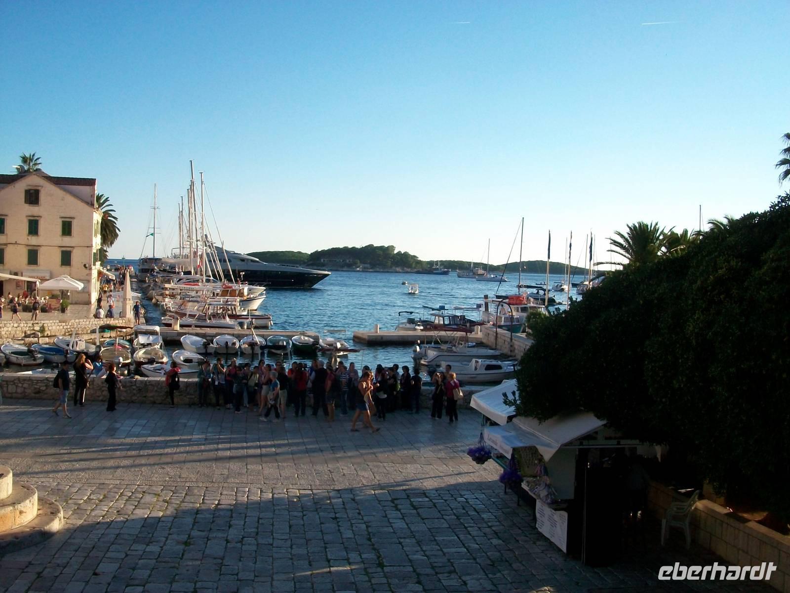 Gegen vier kommen wir im Ort Hvar an, hier werden wir schon von Jasna unserer kompetenten Führerin erwartet. Mit ihr werden wir nun an diesem sonnigen Nachmittag den von den Venezianern geprägten Ort erschließen. Hier atmet jeder Stein die Geschichte der vergangenen Jahrhunderte; belebt ist die sonnendurchflutete Promenade an deren Kai zahlreiche Jachten festgemacht sind die leise auf den Wellen schaukeln. Etwas einsamer ist es in den schmalen Gassen und Jasna weiß viel zu erzählen aus Vergangenheit und Gegenwart dieses reizvollen Ortes den auch die „Reichen und Schönen" dieser Welt längst für sich entdeckt haben.