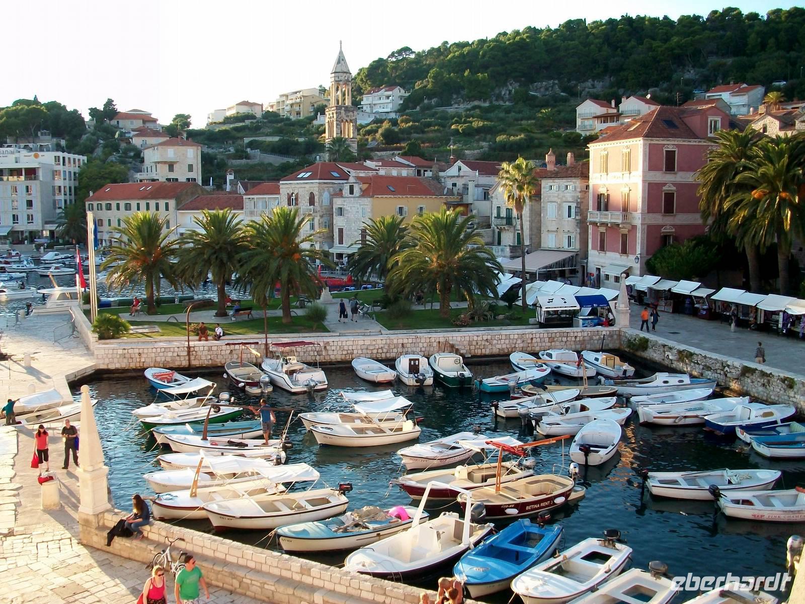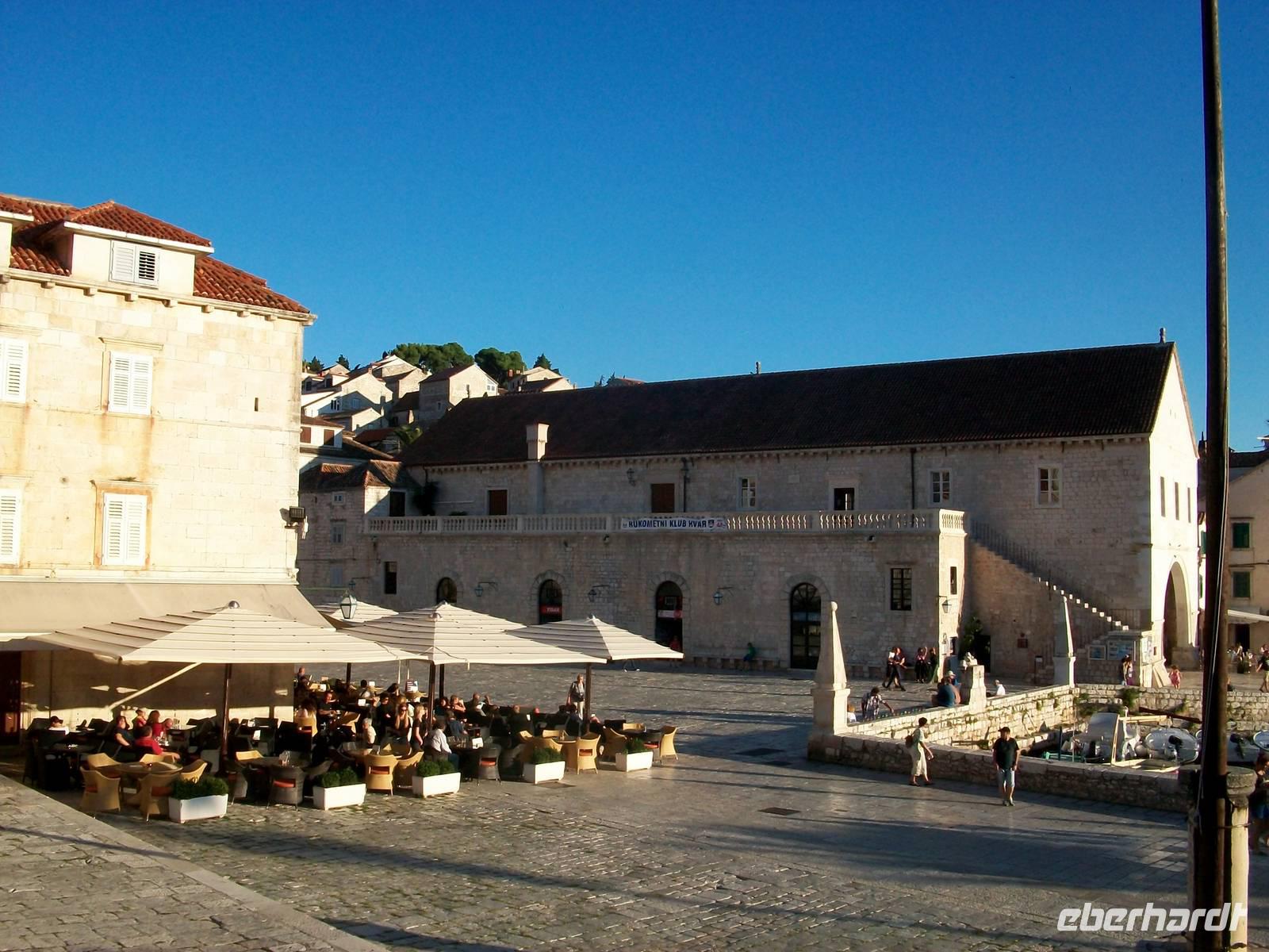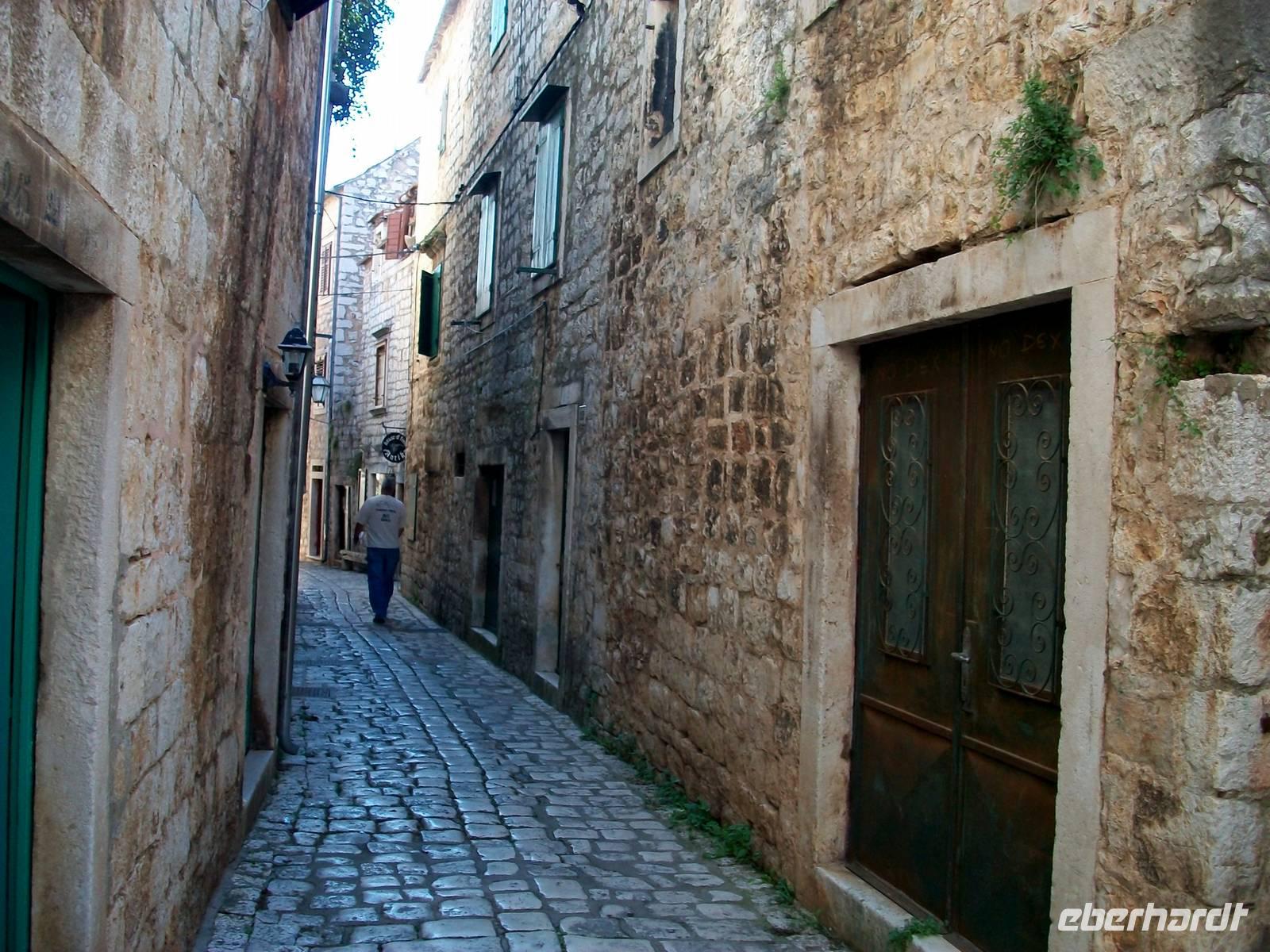 Gegen vier kommen wir im Ort Hvar an, hier werden wir schon von Jasna unserer kompetenten Führerin erwartet. Mit ihr werden wir nun an diesem sonnigen Nachmittag den von den Venezianern geprägten Ort erschließen. Hier atmet jeder Stein die Geschichte der vergangenen Jahrhunderte; belebt ist die sonnendurchflutete Promenade an deren Kai zahlreiche Jachten festgemacht sind die leise auf den Wellen schaukeln. Etwas einsamer ist es in den schmalen Gassen und Jasna weiß viel zu erzählen aus Vergangenheit und Gegenwart dieses reizvollen Ortes den auch die „Reichen und Schönen" dieser Welt längst für sich entdeckt haben.