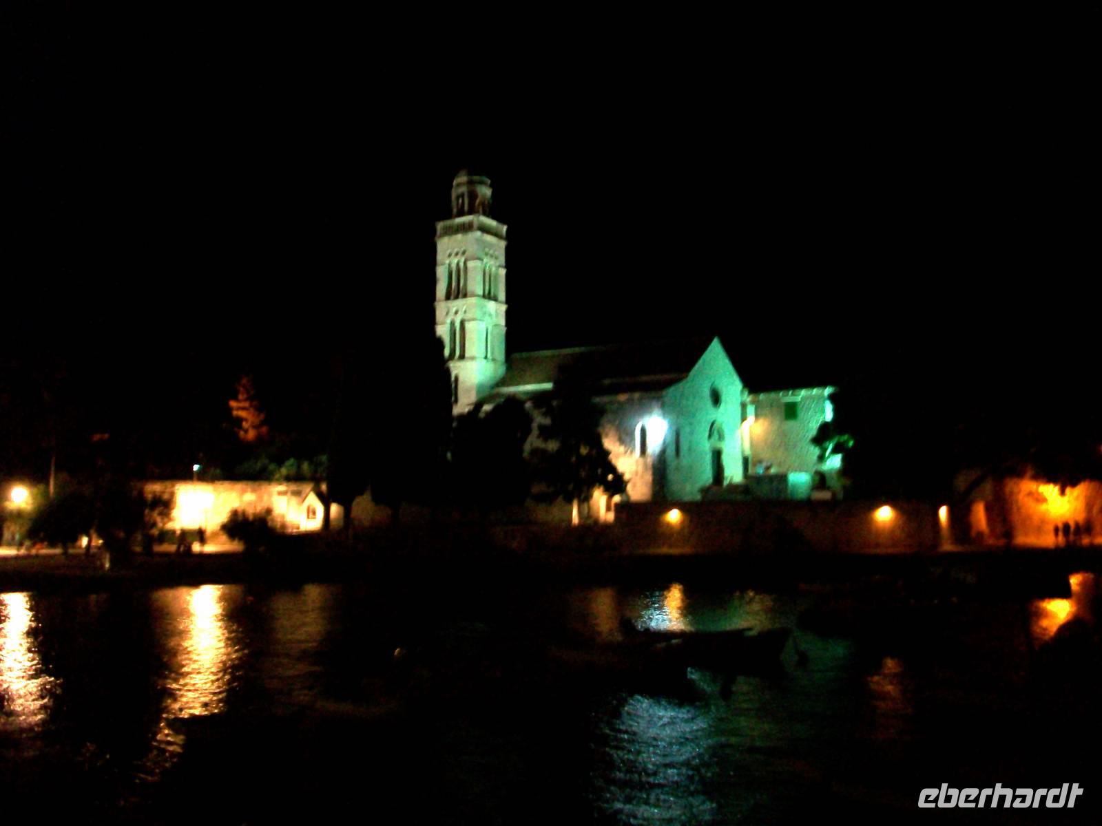 Auch das war wieder ein ereignisreicher Tag; bis zum Abendessen verbleibt noch Zeit für ein Bad in der Adria, einem Bummel durch die Altstadt und als wir uns im Restaurant zum Abendessen wiedertreffen, haben wir von hier einen schönen Blick auf die romantisch angestrahlte Altstadt von Korcula.