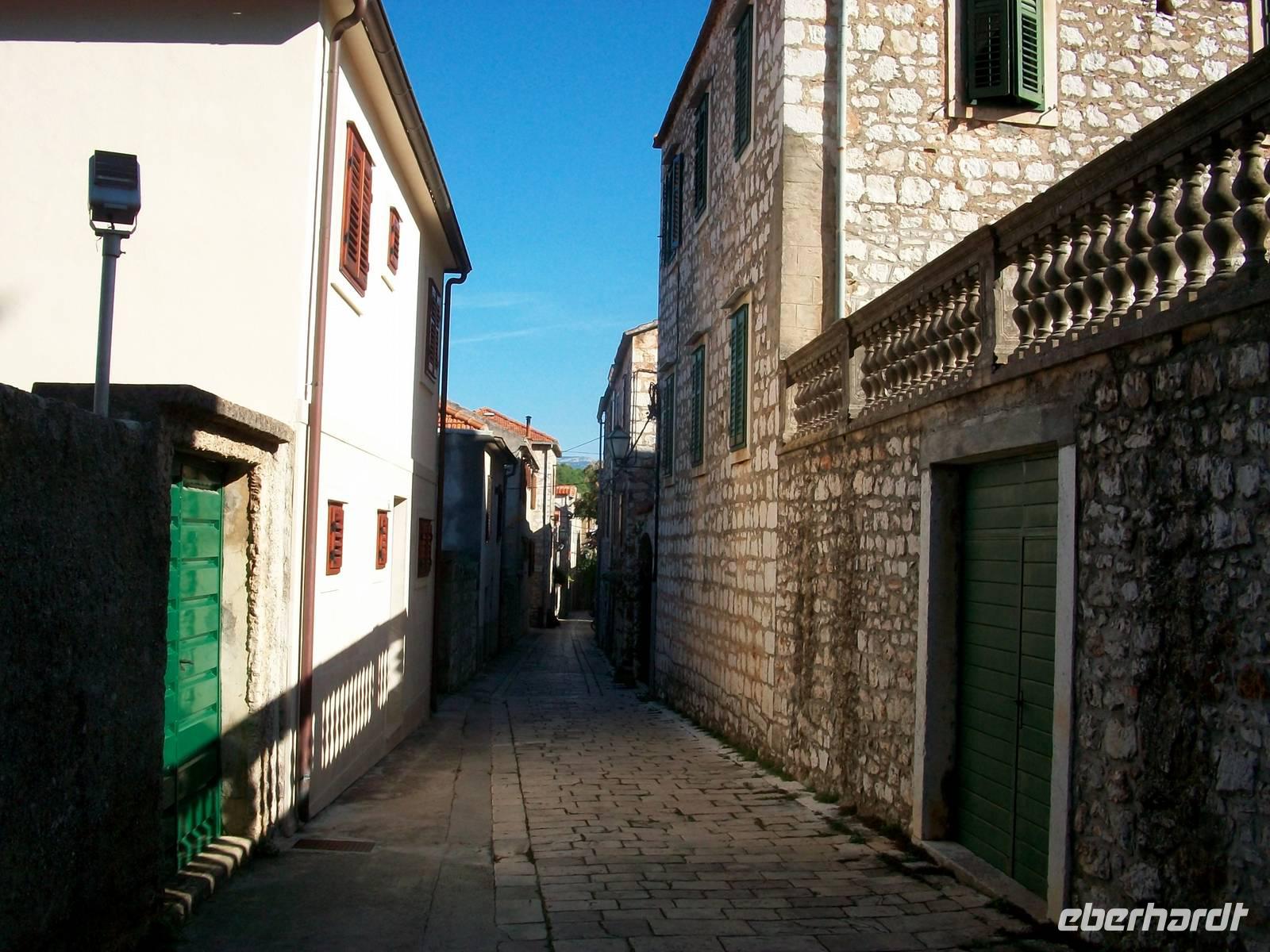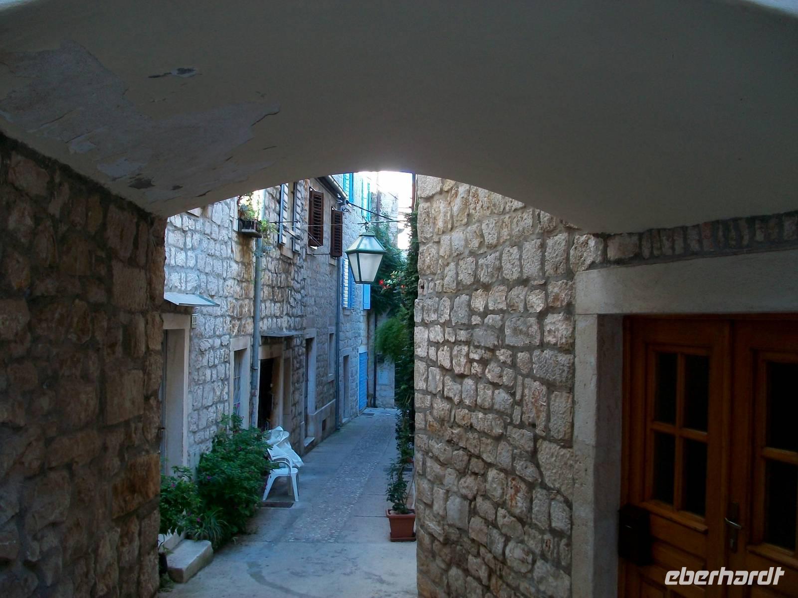 30.9.2014. Die älteste Ansiedlung der Insel Hvar nannten die Griechen Pharos, die später eingewanderten Slawen einfach nur die Alte Stadt in ihrer Sprache heißt das: Stari Grad. Bevor uns die Fähre zum Festland bringen wird besuchen wir auch diesen reizvollen Ort der am Vormittag frei von Touristen ist, dabei können wir in aller Ruhe und mir vollem Genuss durch die schmalen Gassen schlendern und am kleinen Hafen auf das Wasser der Bucht schauen.