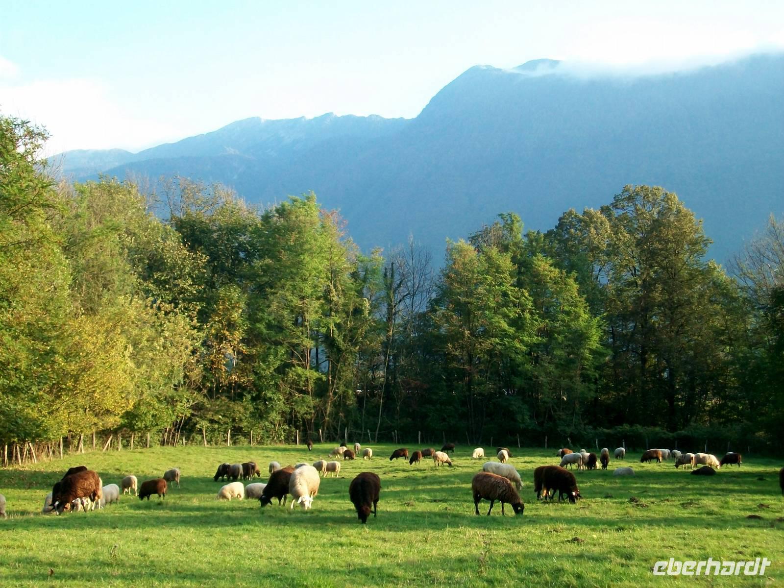 Bald sind wir in Slowenien angelangt; am Nanosgebirge entlang und durch das Wippachtal gelangen wir an den Fluss Soca. Auch hier gibt es für uns noch schöne Impressionen; die grünlichen Fluten dieses Gebirgsflusses schlängeln sich durch das romantische Tal welchem wir aufwärts folgen; in der Nachmittagssonne bietet uns diese reizvolle Ecke weitere schöne Einblicke.