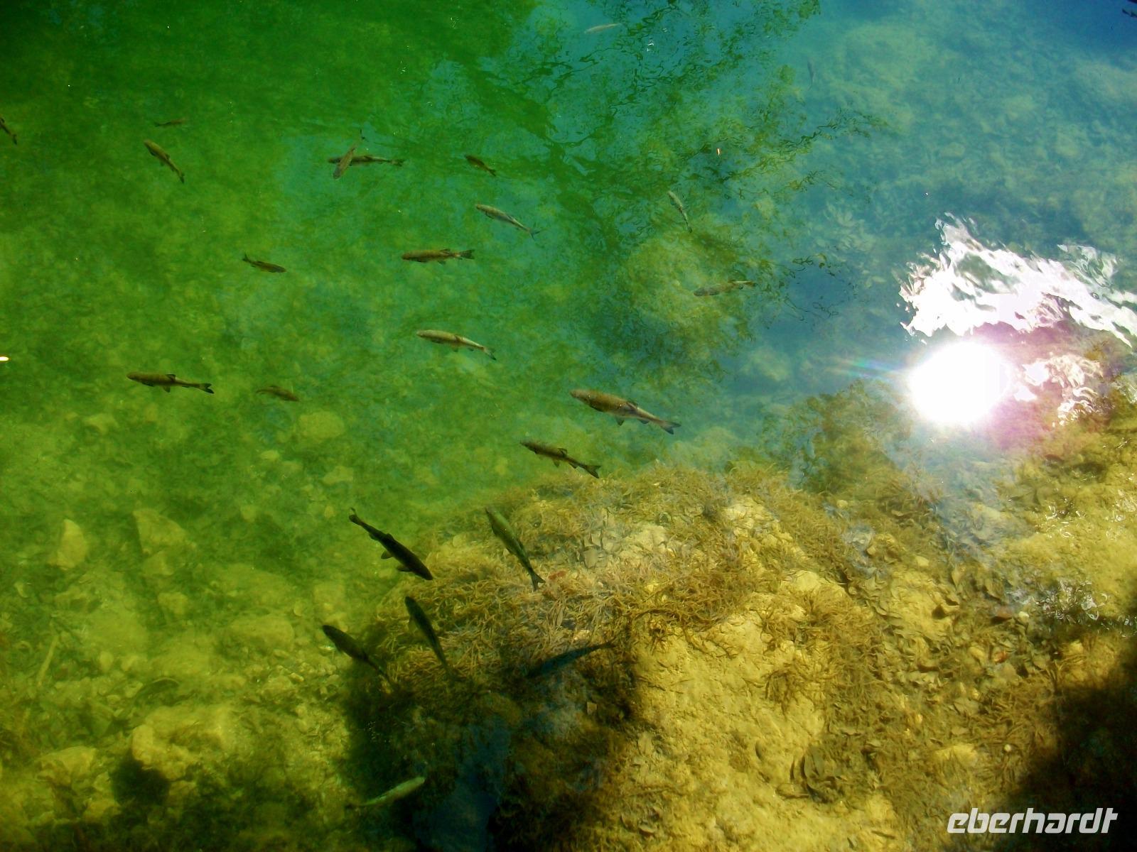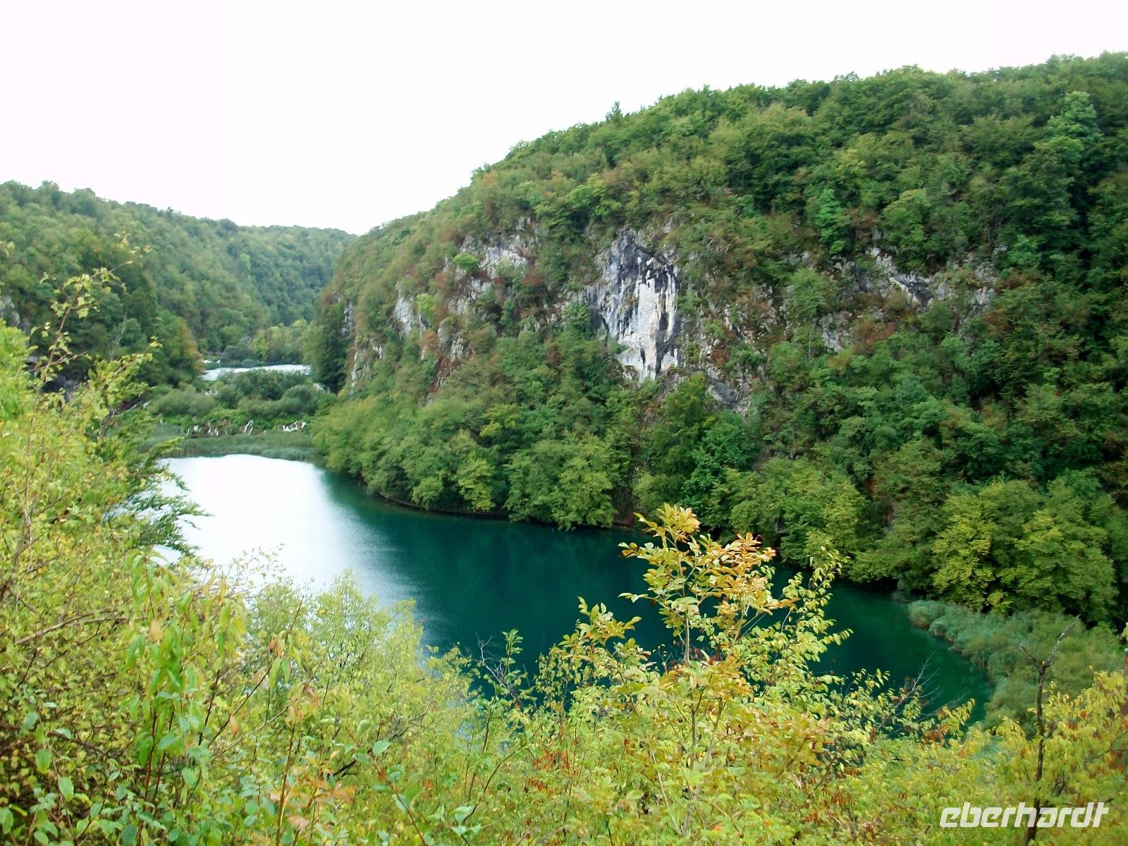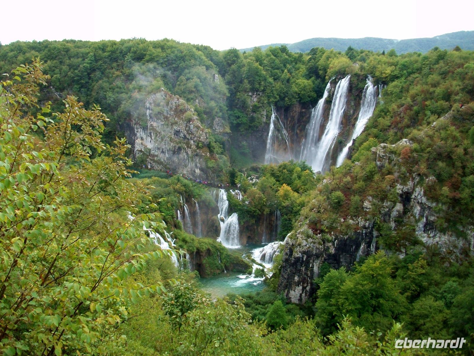 Pünktlich trifft Nikolina ein, sie wird uns in den nächsten Stunden die Wunder dieser unberührten Natur zeigen. Zunächst geht es vom Eingang zum Aussichtspunkt mit einem wahrhaft grandiosen Blick auf den Großen Wasserfall der fast 80 Meter sein Nass donnernd herabsendet. Zu Fuß gelangen wir hinunter und unten angekommen, netzt feiner Wasserstaub unsere Haut. Es ist schon ein beeindruckendes Gefühl diesem Wasserfall ganz nahe zu sein. Dann führt uns der Weg aufwärts; vorbei an den grünlichen Fluten der Seen und entlang der zahlreichen Kaskaden, gelangen wir zum Koziak - See. Hier beginnt eine gemütliche Bootsfahrt, sehr erholsam verläuft die Tour und am anderen Ende geht es noch etwas weiter bergauf, hier sind weitere Wasserfälle zu bewundern, da stört es auch nicht, dass Petrus einige Tropfen herabsendet.
