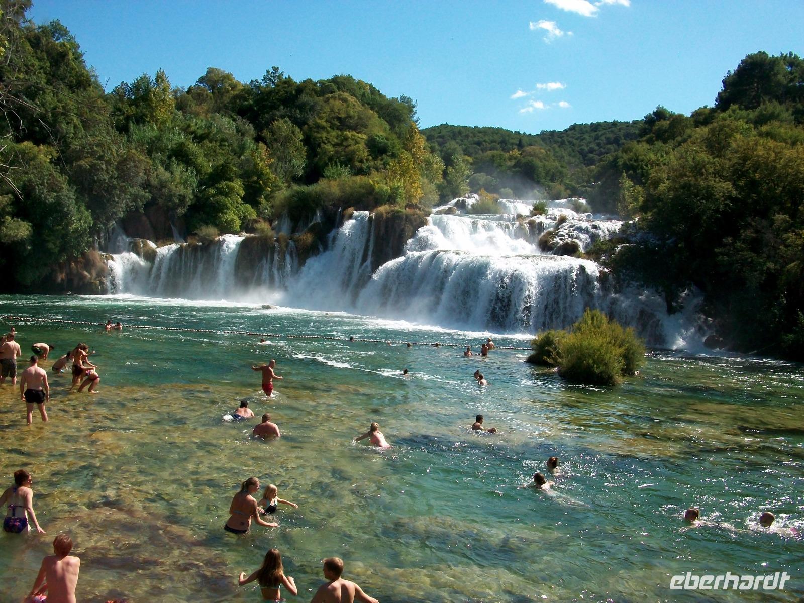 Gegen Mittag gelangen wir an den Fluss Krka, er bildet an einigen Stellen grandiose Wasserfälle und den eindrucksvollsten werden wir nun besuchen.