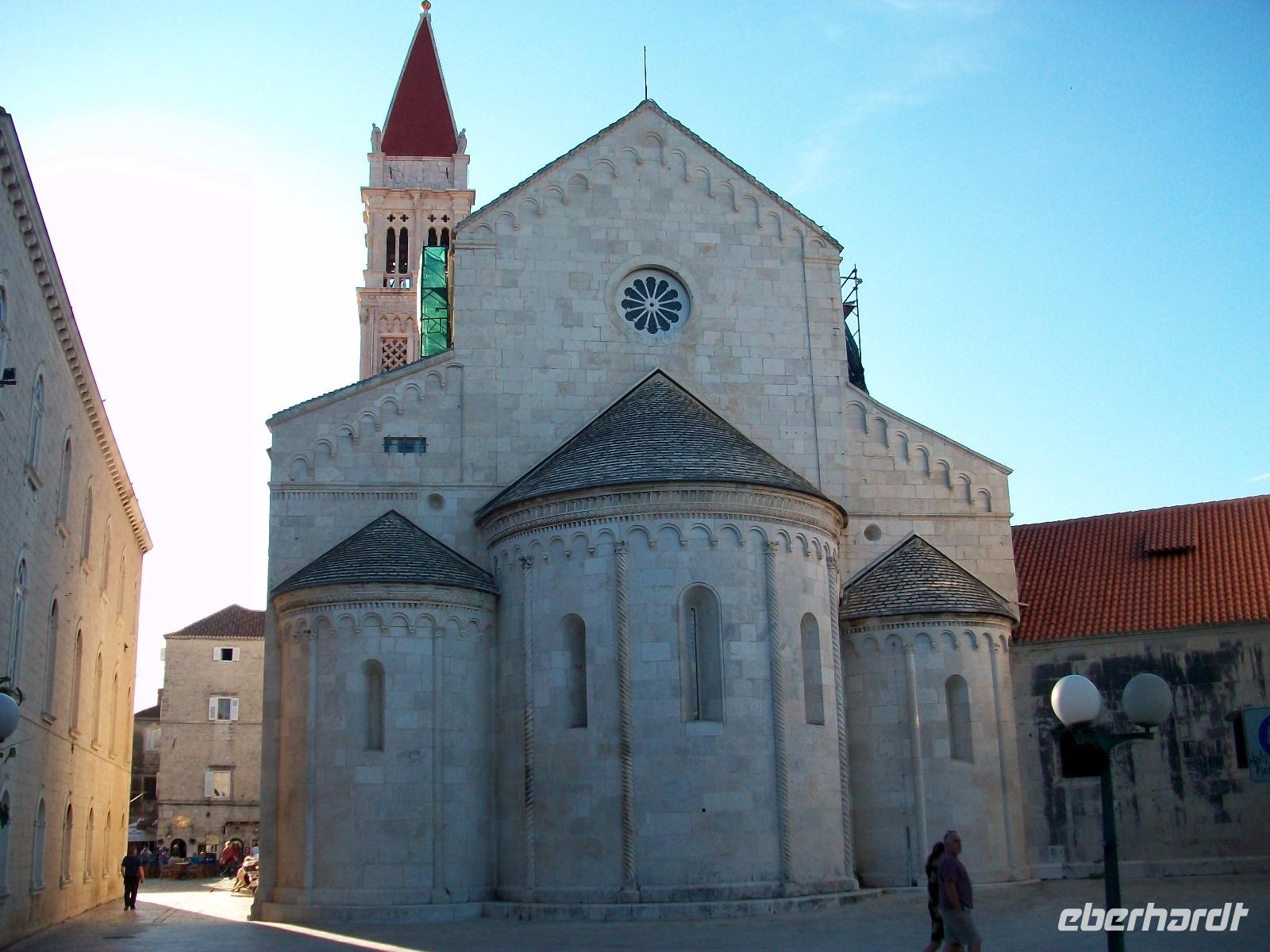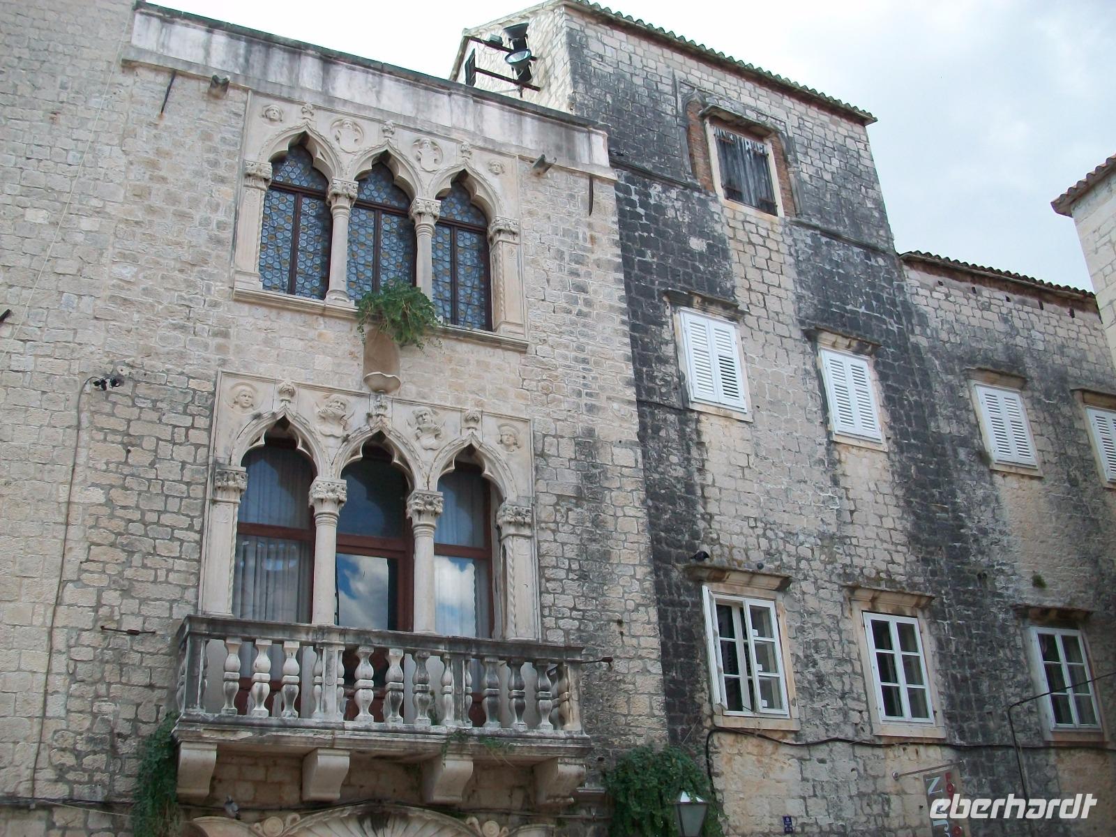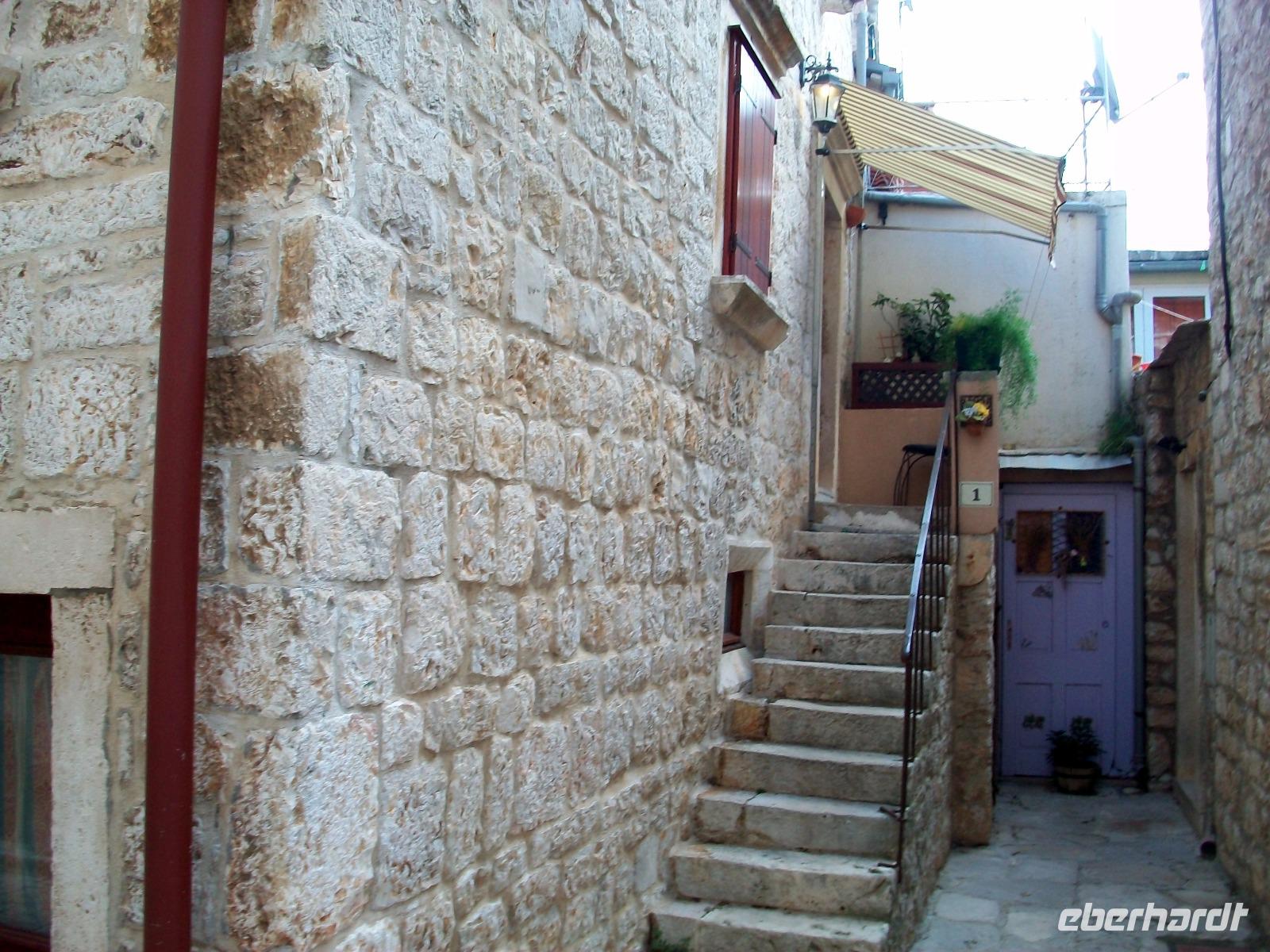 Dann führt uns der Weg hinunter an die Küste und entlang malerischer Buchten und verträumter Inseln erreichen wir Trogir. Mit Dijana gehen wir jetzt auf eine Zeitreise und drehen das Rad der Zeit gleich um einige Jahrhunderte zurück. Trogir blieb uns beinahe im Originalzustand erhalten und so streifen wir durch einsame Gässchen, über belebte Plätze und genehmigen uns nach der Führung einen Kaffee auf der schönen und sonnendurchfluteten Promenade.