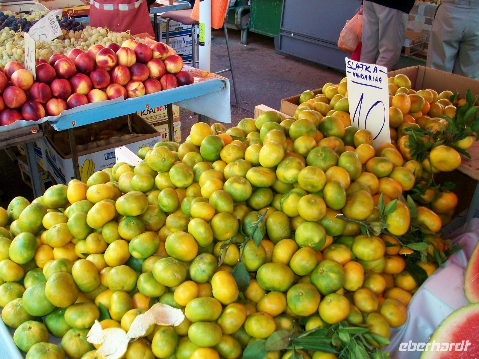 Nach der Führung bleibt noch Zeit für einen Bummel über den Markt; hier gibt es schon die neuen Mandarinen, saftig und süß sind sie frisch vom Baum ein besonderer Genuss.