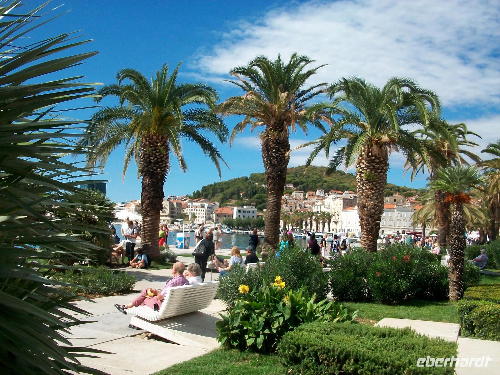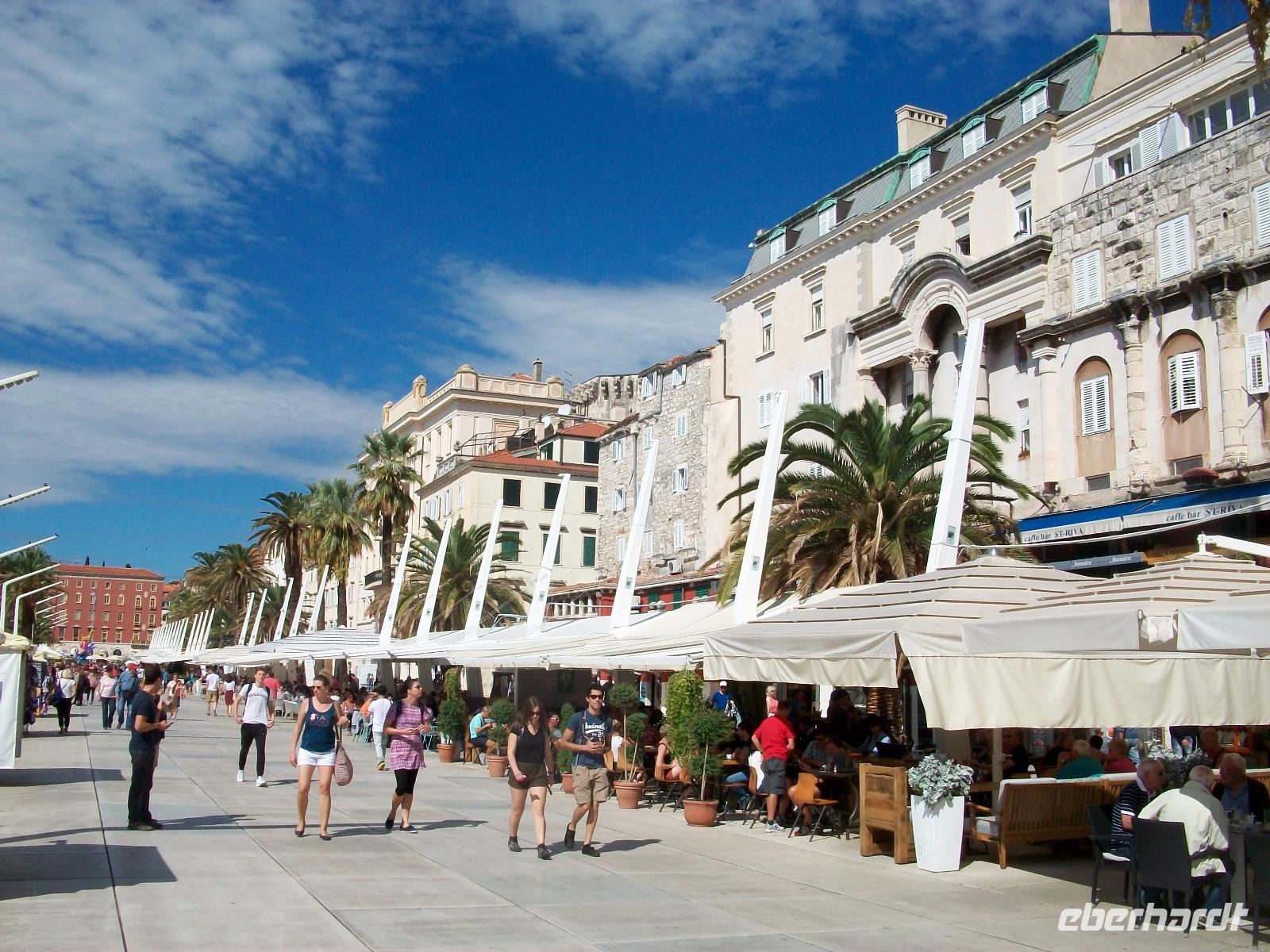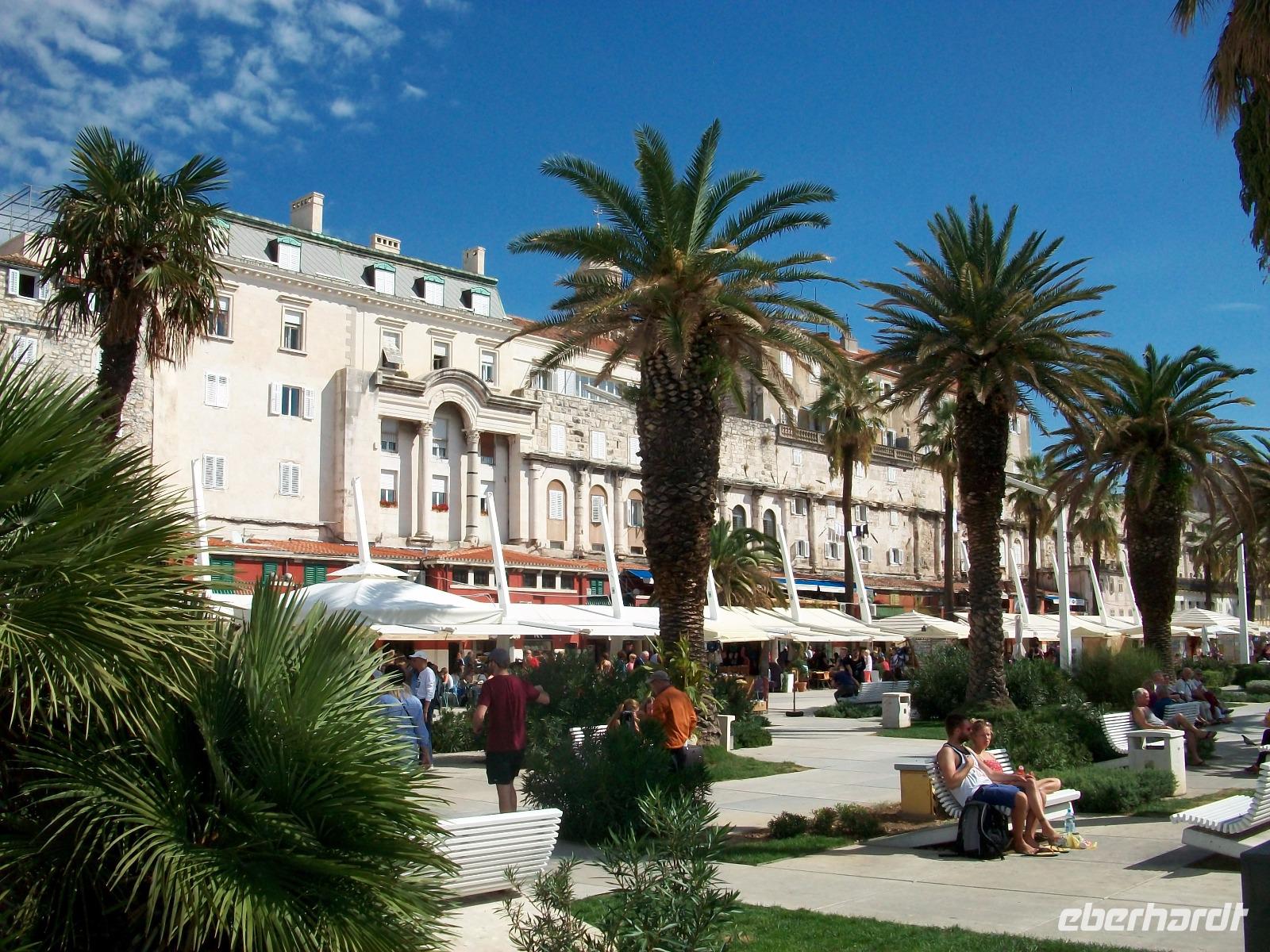 22.9.2017. Die Morgensonne bescheint die Riva von Split die gesäumt ist von zahlreichen Palmen die am tiefblauen Wasser der Adria stehen. Vor dieser Traumkulisse beginnen wir die Führung mit Dijana die uns hierbei knappe 2 000 Jahre zurück in die Vergangenheit schickt. Es geht abwärts in die Kellergewölbe des Palastes den sich der Römische Kaiser Diokletian erbauen ließ und hier unten erahnen wir welch monumentales Gebäude es einstmals war. Oben, wieder am Tageslicht angelangt, befinden wir uns aber in einer anderen Zeitepoche; nachfolgende Generationen schufen sich hier eine Stadt, geprägt vom venezianischen Stil; wir sehen die schönen Paläste, die Gotteshäuser, durchstreifen schmale Gassen und sehen überall auch hier das quirliges Leben einer belebten Stadt.