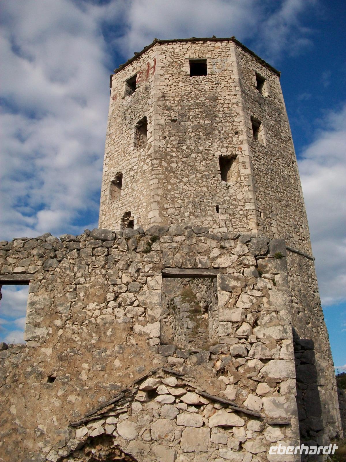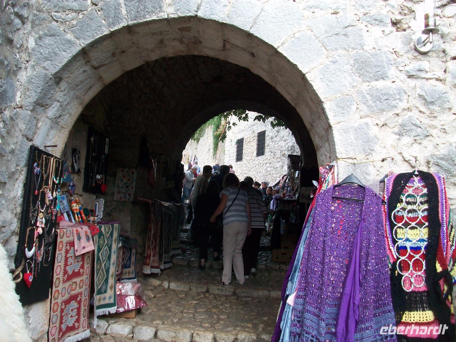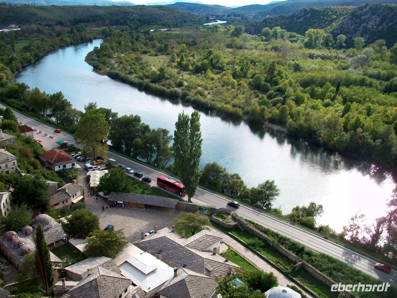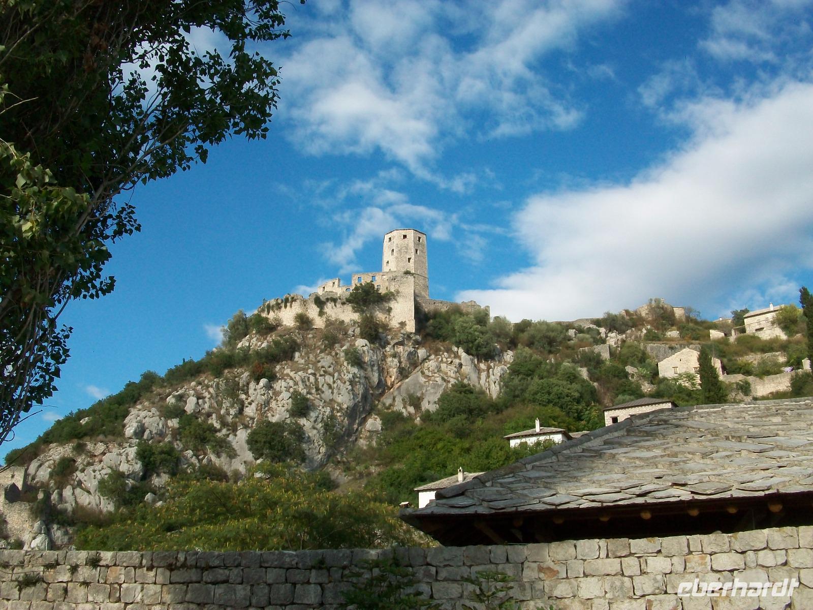 Am Nachmittag setzen wir die Fahrt fort; entlang der Küste und des Biokovo - Gebirges geht es in die Herzegowina, zuvor überschreiten wir problemlos die Grenze zu Bosnien und sind bald im fruchtbaren Tal der Neretva angelangt. Besonders malerisch schlängelt sich der Fluss beim Ort Pocitelj durch die Berge, diesem Türkischen Dorf wie es oft genannt wird, statten wir selbstverständlich einen Besuch ab. Steil steigen die Häuser am Hang hinauf, hier gibt es eine Moschee, ein ehemaliges Badehaus, es ist heute ein Café, und sehr viel morgenländisches Flair. Gerade als wir aus dem Bus steigen ruft der Muezzin die Gläubigen zum Gebet. Wir steigen bergan und werfen oben von der Festung einen Blick hinunter auf die Häuser und den Fluss, ein schönes Erlebnis fast am Ende des Tages. Eine gute halbe Stunde sind wir dann noch unterwegs ehe wir unser sehr schönes Hotel in Mostar erreichen.
