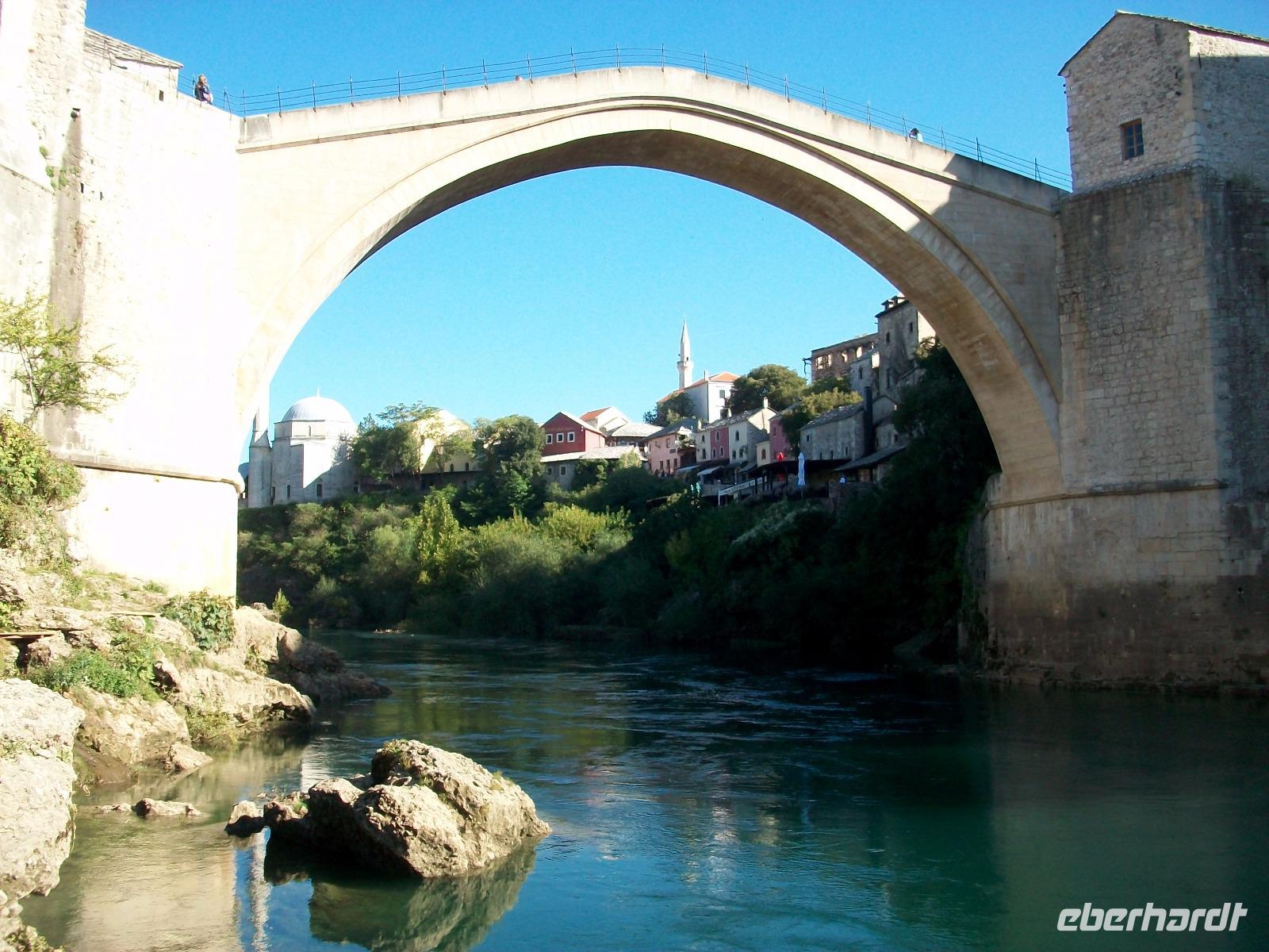 Bald langen wir auf dem türkischen Pflaster an welches uns die Fußsohlen massiert und genehmigen uns wenig später einen Blick auf eine erste Moschee. Viel gibt es zu erzählen über den Islam und die Osmanenherrschaft in Bosnien. Lang und kompliziert ist die Geschichte der Völker hier und atemberaubend der Blick auf die Alte Brücke unten von der Neretva aus.