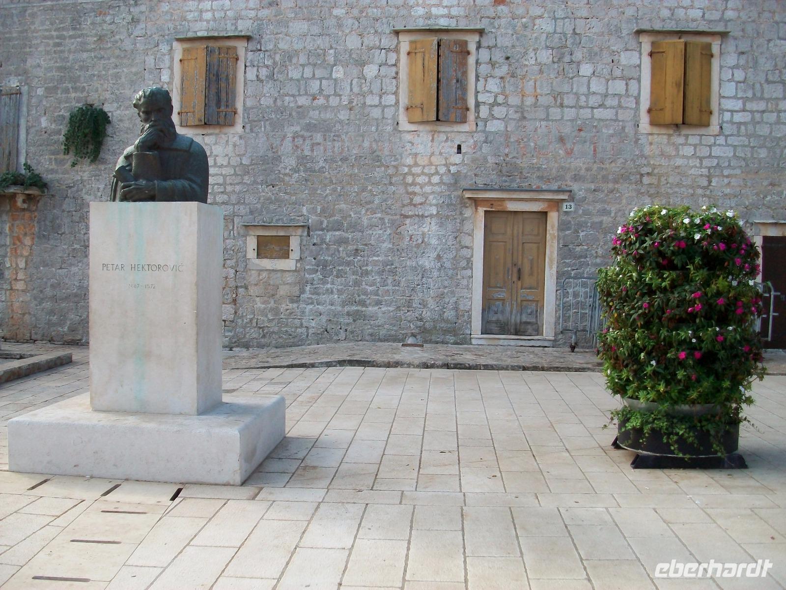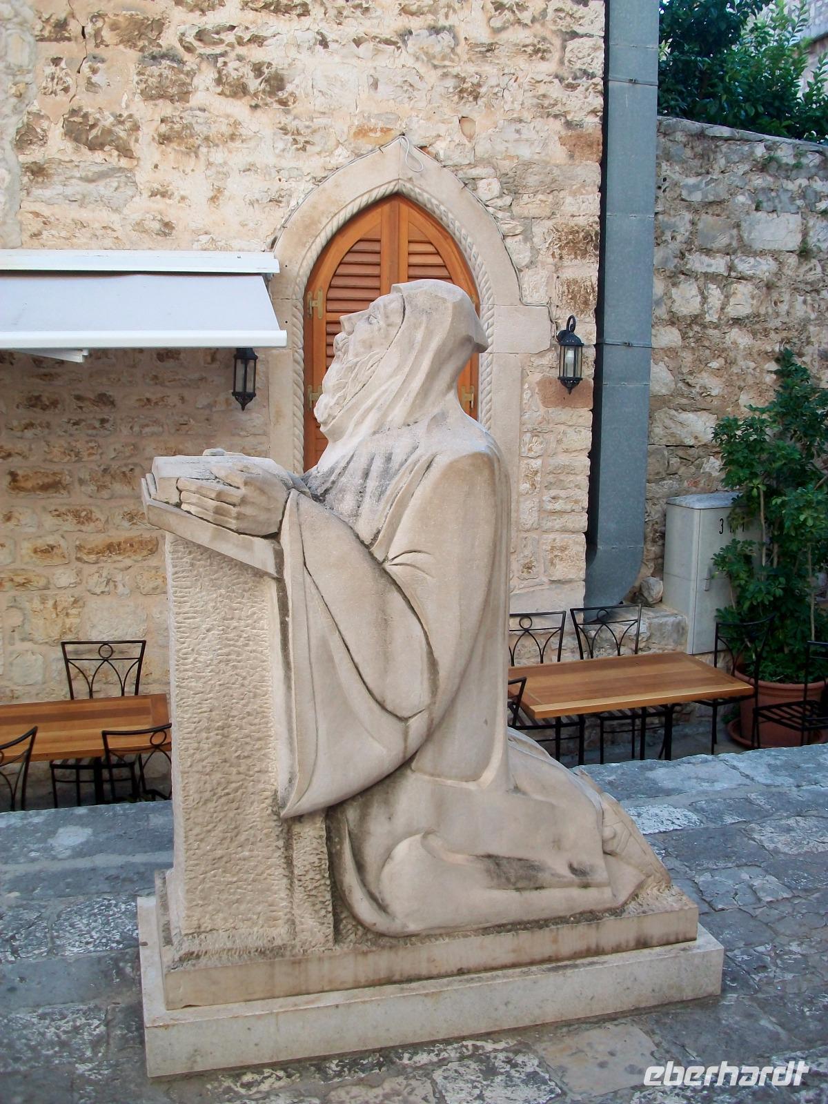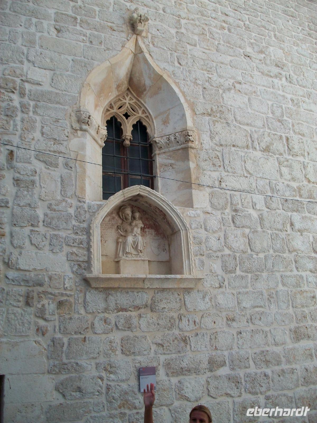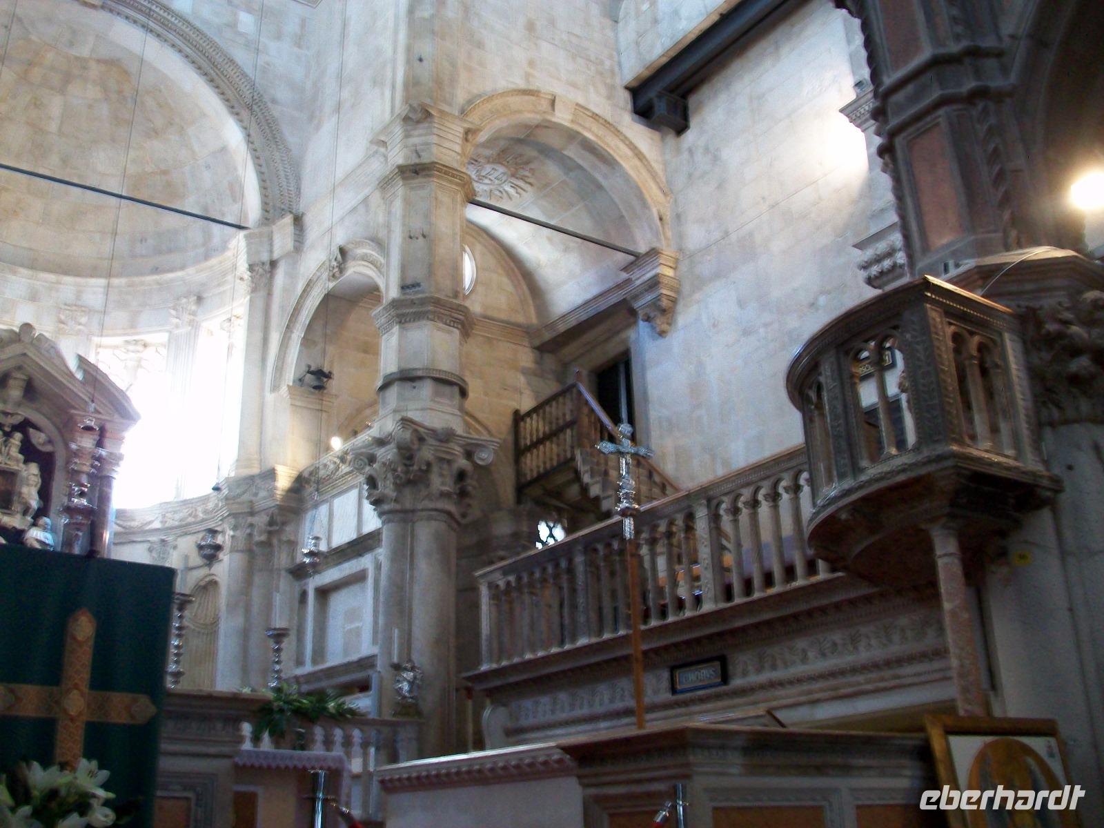 Ein Kreuzfahrer hat angelegt und somit gibt es einigen Trubel in der Stadt, aber Ivana unsere Führerin, meistert die Situation professionell. Über die Zugbrücke gelangen wir durch die Stadtmauer zu Stradun, Hauptfußgängerzone zu allen Zeiten. Am großen Onofriobrunnen erfahren wir etwas zur Geschichte um wenig später hinter die altehrwürdigen Mauern des Franziskanerklosters mir der uralten Apotheke zu verschwinden. Dann geht es weiter über die Gassen und Plätze der Stadt; wir lernen den Uhrturm kennen, das ehemalige Zollhaus schwenken in den Alten Hafen ein und beenden die Führung am einstigen Machtzentrum der Stadt, dem Rektorenpalast. Gegenüber liegt die Kathedrale und nachdem Ivana ihre wissenswerte Führung beendet hat, besteht die Chance im Inneren dieses Gotteshaus den Tizian und andere Kunstschätze zu bewundern.