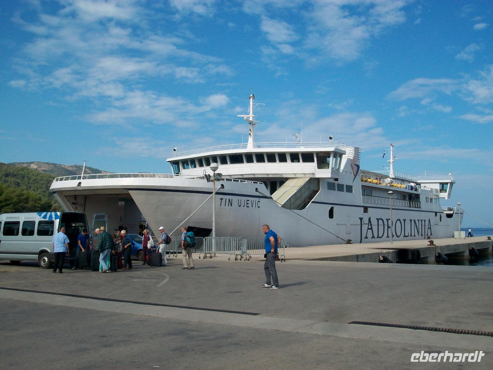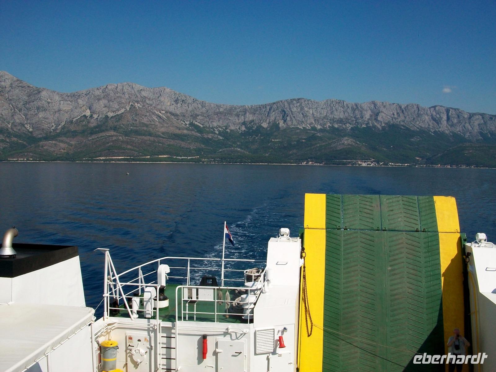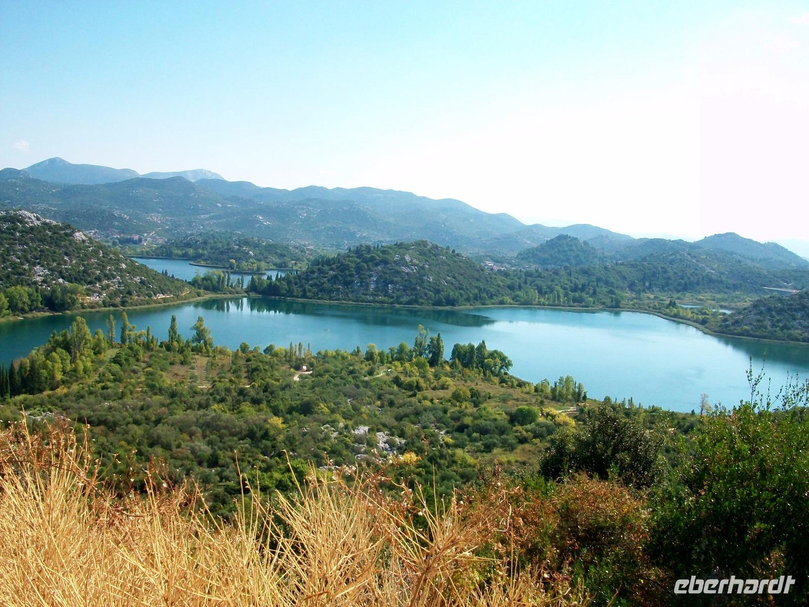 26.9.2017. Heute nun heißt es Abschied nehmen von Dubrovnik; als wir über die Brücke fahren, genießen wir noch einen Blick hinüber nach Babin Kuk, auch unser Hotel in dem wir gewohnt, wird von der Morgensonne angestrahlt. Dann geht es entlang der Küste; malerisch liegt der Archipel der Elaphiten zu unserer Linken, umspült vom tiefblauen Wasser der Adria. Dann gelangen wir wieder ins Tal der Neretva mit den vielen Mandarinenbäumen und den reifen Früchten die der Ernte entgegen sehen. An einem der zahlreichen Stände halten wir an und jeder kann sich hier mit den Produkten dieser überreich fruchtbaren Region versorgen. Doch dann müssen wir weiter; im Ort Drvenik erwartet uns eine Fährüberfahrt, wir gönnen uns aber noch einen Blick auf die Süßwasserseen von Bacin um schließlich zur Fähre zu gelangen. Wir sind pünktlich genug um sogar noch eine Überfahrt früher zu bekommen; schnell sind die Tickets geholt und dann legt das Schiff ab, unser Ziel ist die Insel Hvar.