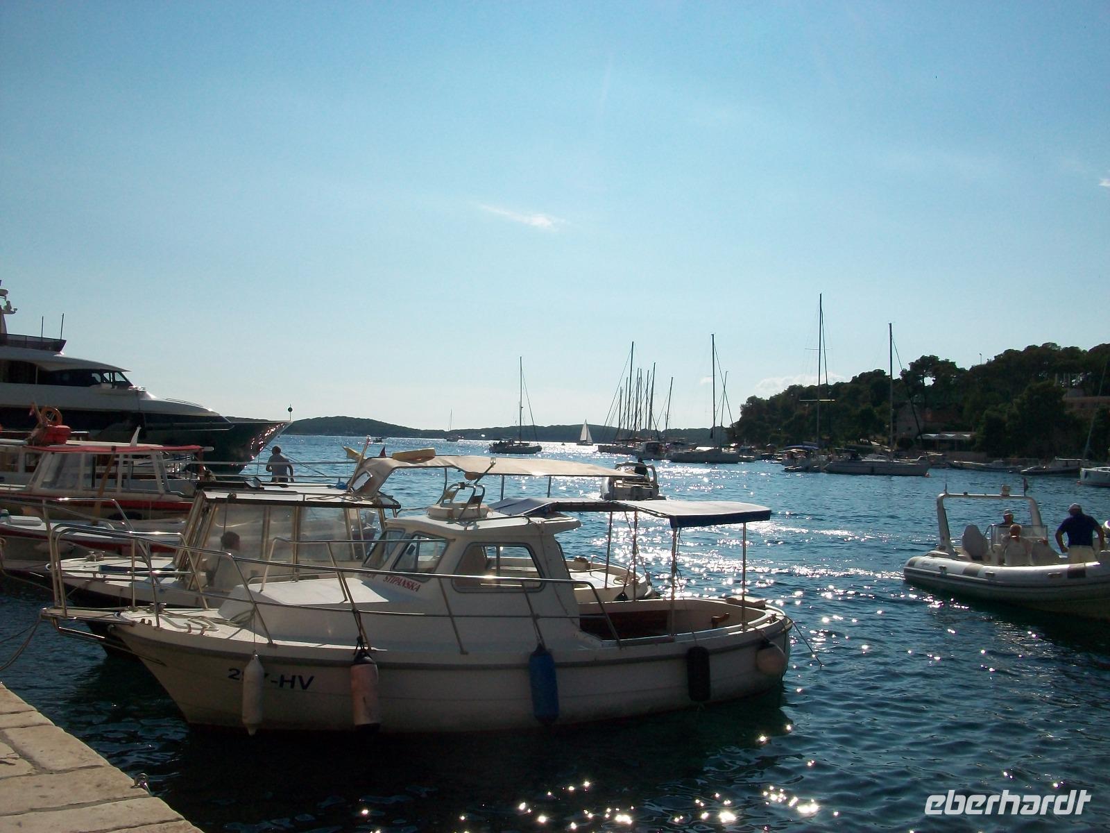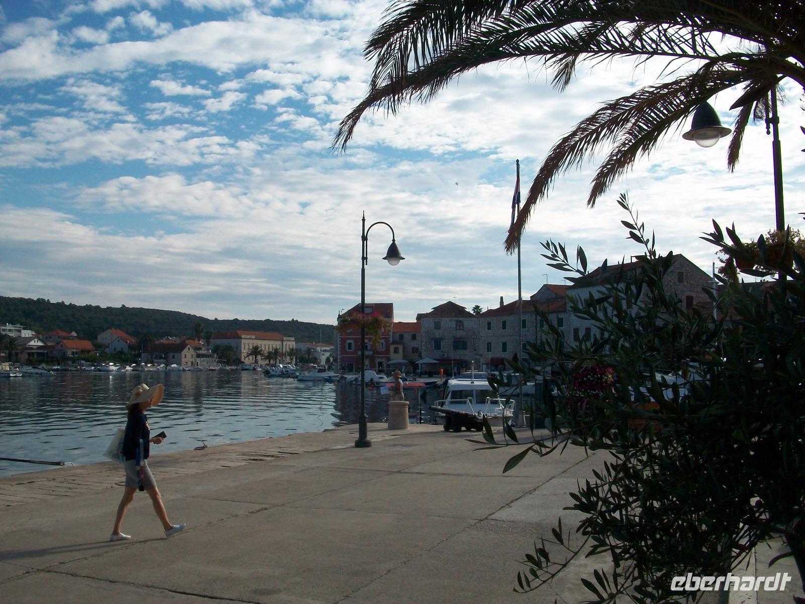 27.9.2017. Auch heute bleibt uns Petrus hold; durch den Inseltunnel gelangen wir wieder hinüber auf die andere Seite und bald in den ältesten Ort der Insel, Starigrad. Hier siedelten die alten Griechen zuerst und nannten ihn Pharos. Doch erst die Venezianer bauten ihn aus und dieser Stil bestimmt bis heute das Bild. Hier gönnen wir uns ein Stündchen um danach ganz gemütlich entlang der Uferpromenade zur Fähre zu gelangen. Bald können wir auch an Bord und, oben auf dem Sonnendeck, genießen wir die schöne Überfahrt. Zwischen den Inseln Brac und Šolta sehen wir sogar für kurze Zeit Delphine springen, ein seltener Anblick!